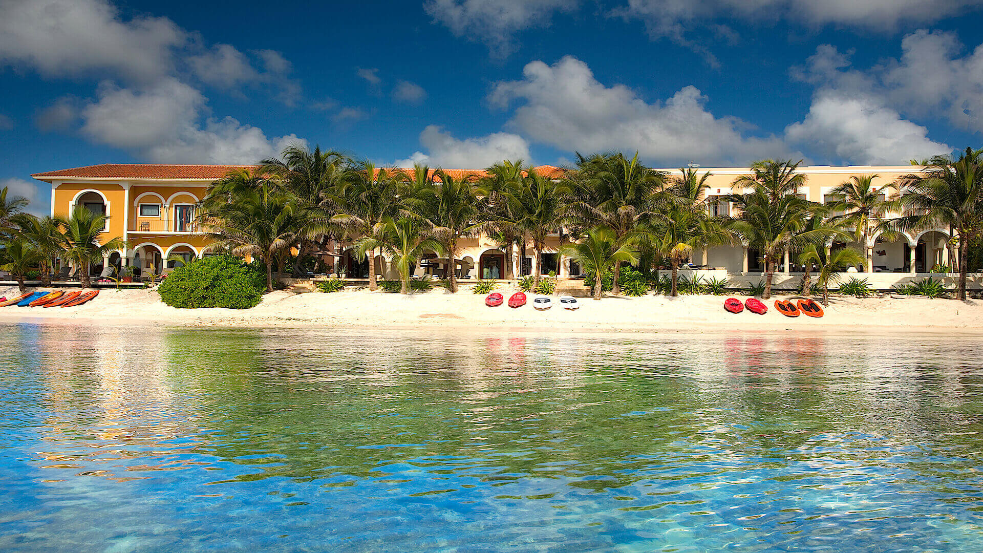 The best time to visit Puerto Aventuras is from December through April, when temperatures average 80–87°F (27–31°C) with low humidity and clear skies. This is peak season along the Riviera Maya, so villas book early. May and November offer warm weather with fewer crowds and lower rates. The rainy season runs from June through October with brief afternoon showers. Puerto Aventuras’ sheltered marina and calm swim-up beaches make it comfortable year-round, even during periods when sargassum (seaweed) affects more exposed beaches along the coast.
