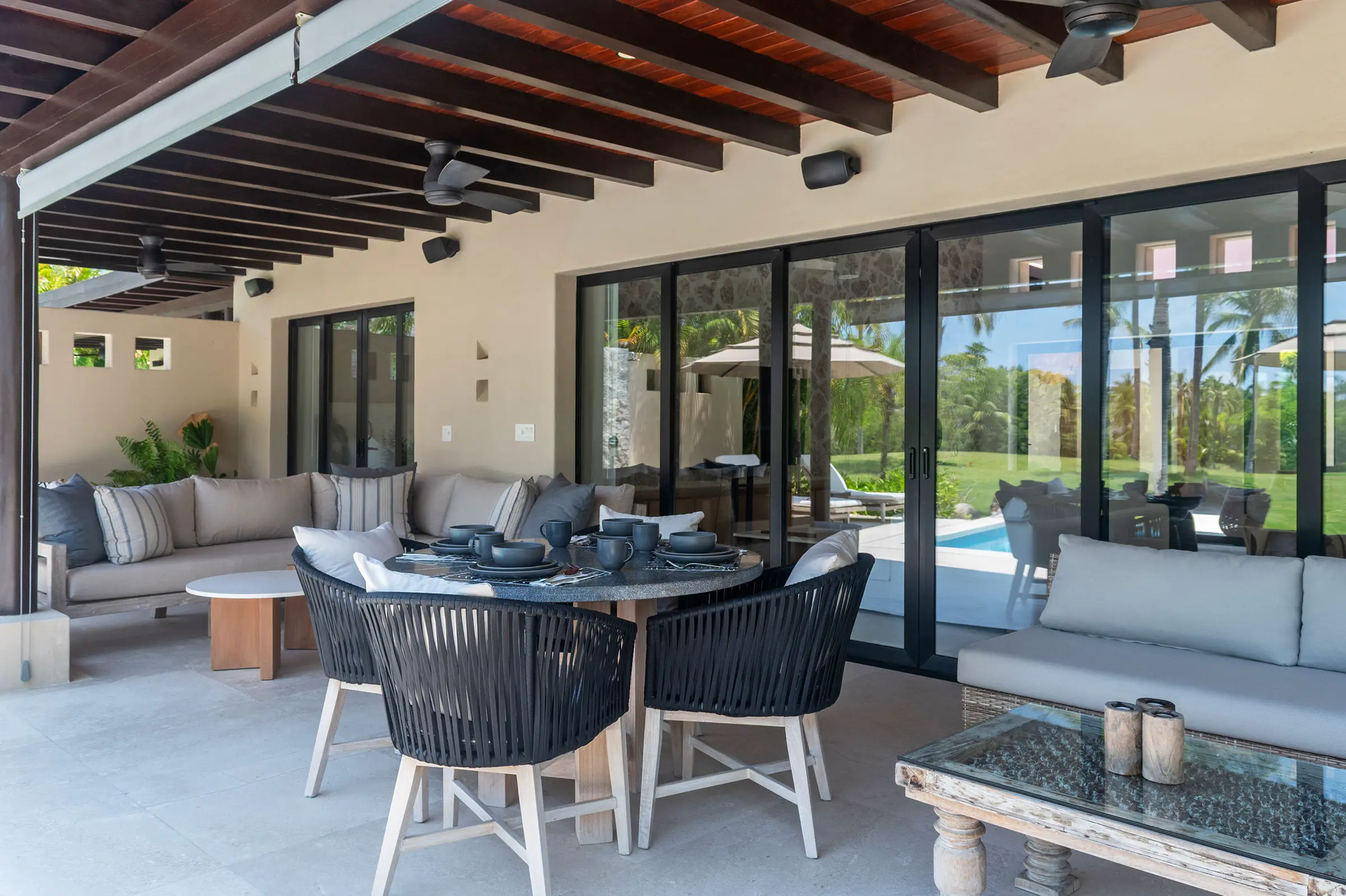 Al entrar, el ambiente acogedor de la sala de estar / comedor le da la bienvenida, conectando a la perfección a un estado de la técnica de cocina gourmet. La comodidad es máxima con un lavadero adyacente. El punto central de la villa, una espaciosa terraza parcialmente cubierta, invita a relajarse. Aquí podrá darse un refrescante chapuzón en su piscina privada o deleitarse con los exuberantes paisajes.