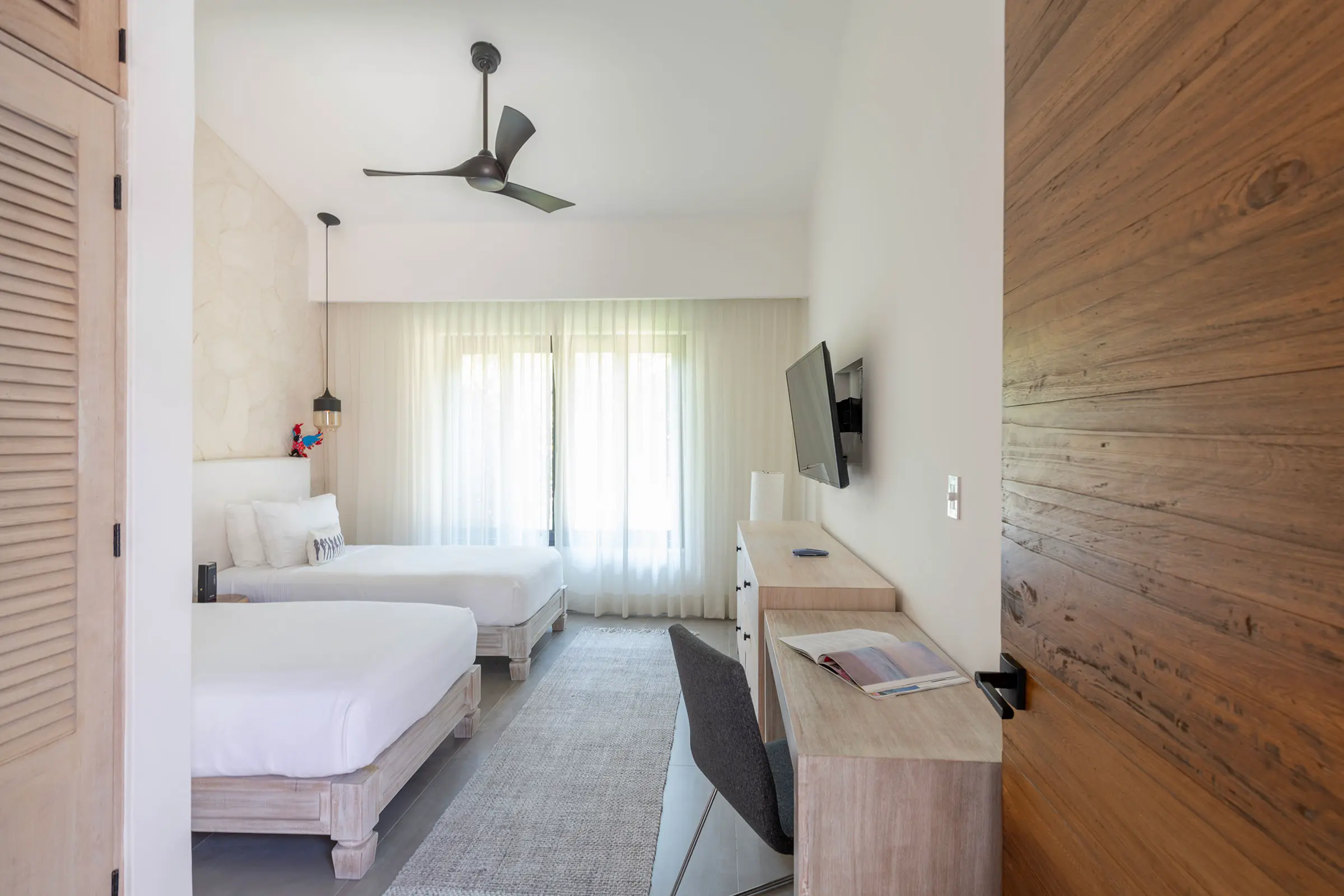 Flexible y perfecta para necesidades variadas, esta habitación alberga dos camas individuales, un acogedor sofá cama y un cuarto de baño privado. El aire acondicionado garantiza un sueño tranquilo y apacible.