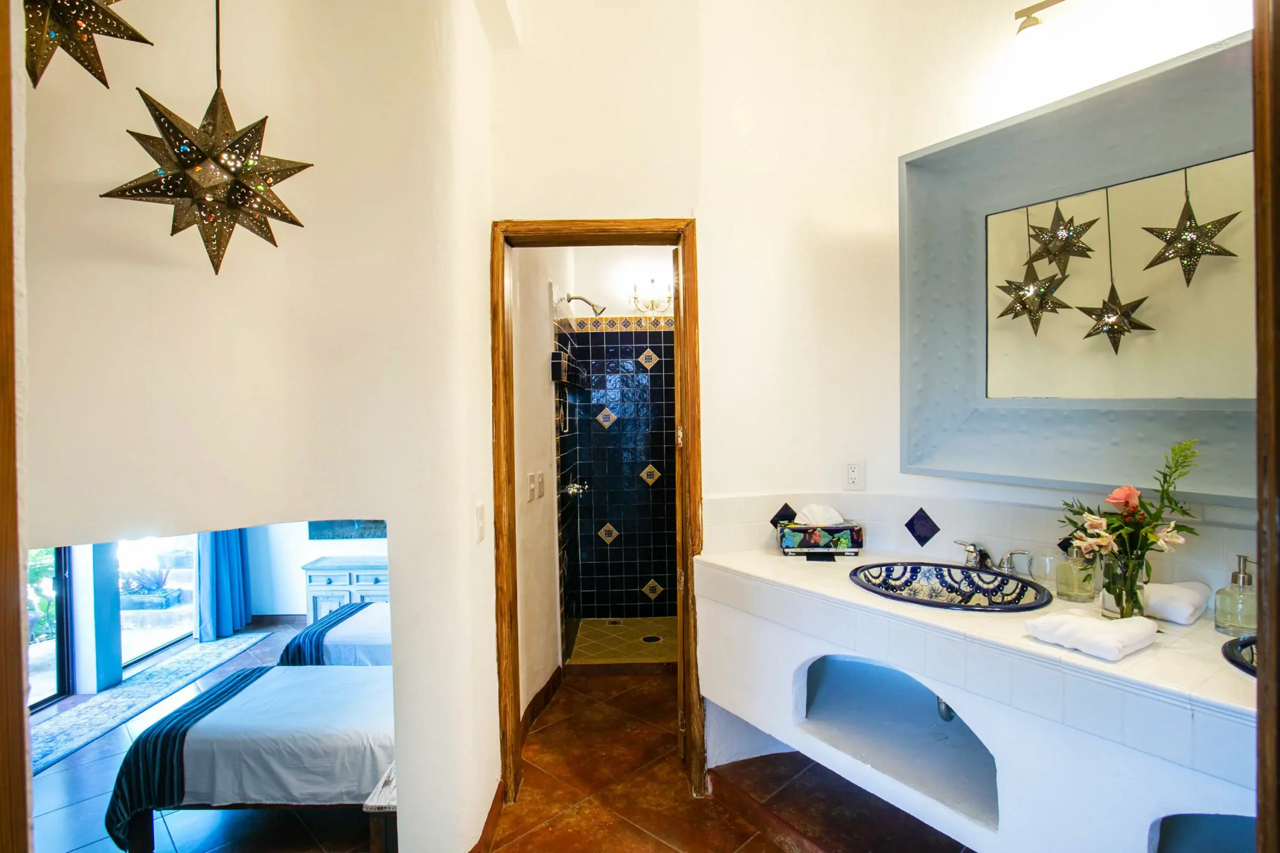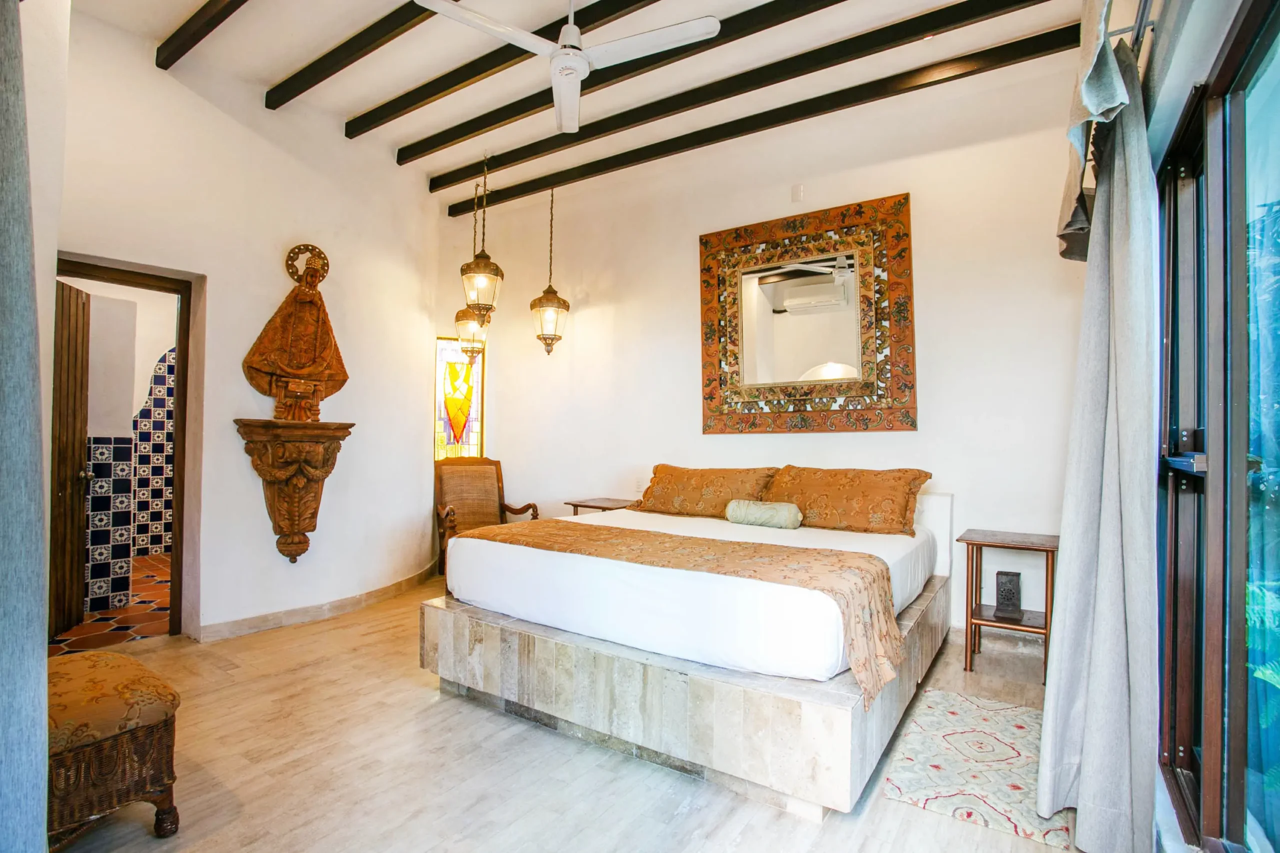 Arraigada en el carisma tradicional mexicano, Casa Aventura es una mezcla artística de madera, piedra y elementos naturales. Sus amplios ventanales permiten que la luz del sol empape todas las habitaciones, creando un ambiente radiante y acogedor. Adornadas con arte mexicano contemporáneo, cada habitación conduce sin esfuerzo a la siguiente, guiándote hasta la cautivadora terraza principal y la piscina.