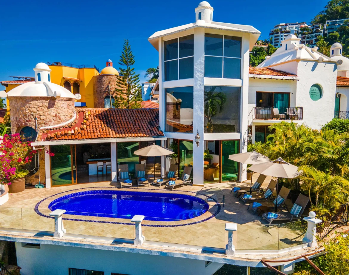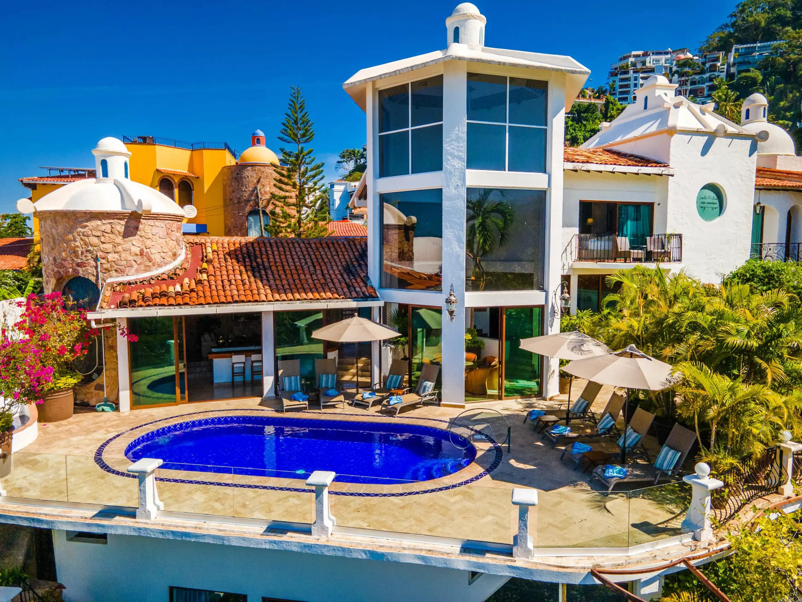 Entra en Casa Aventura, un faro de lujo enclavado en el tranquilo barrio de Conchas Chinas de Puerto Vallarta. Esta villa de lujo de nueve dormitorios, con capacidad para dieciocho huéspedes, ofrece un retiro idílico para rejuvenecer en medio de los seres queridos. Con sus verdes alrededores, las suaves laderas de las colinas y la cautivadora extensión azul del mar, la tranquilidad no sólo está asegurada; es una promesa.
