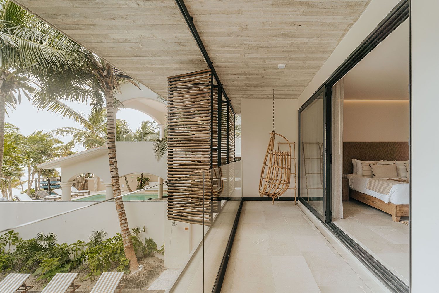 King bed, direct pool and beach access, air conditioning, ensuite bathroom, hair dryer, toiletries, TV
