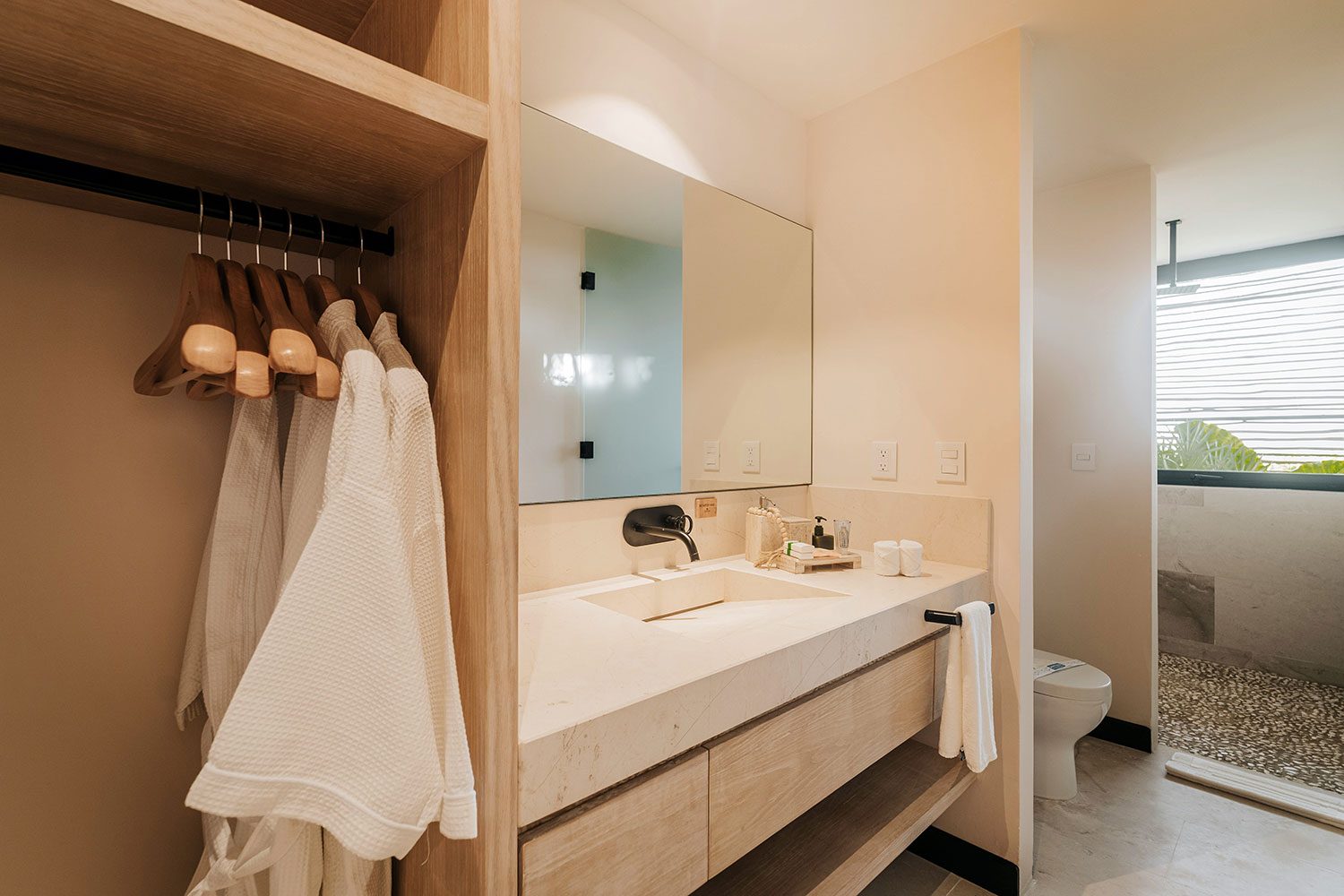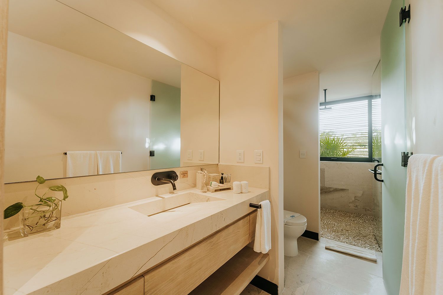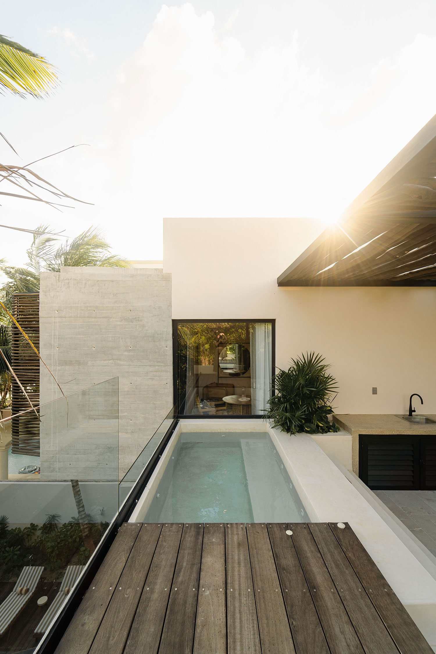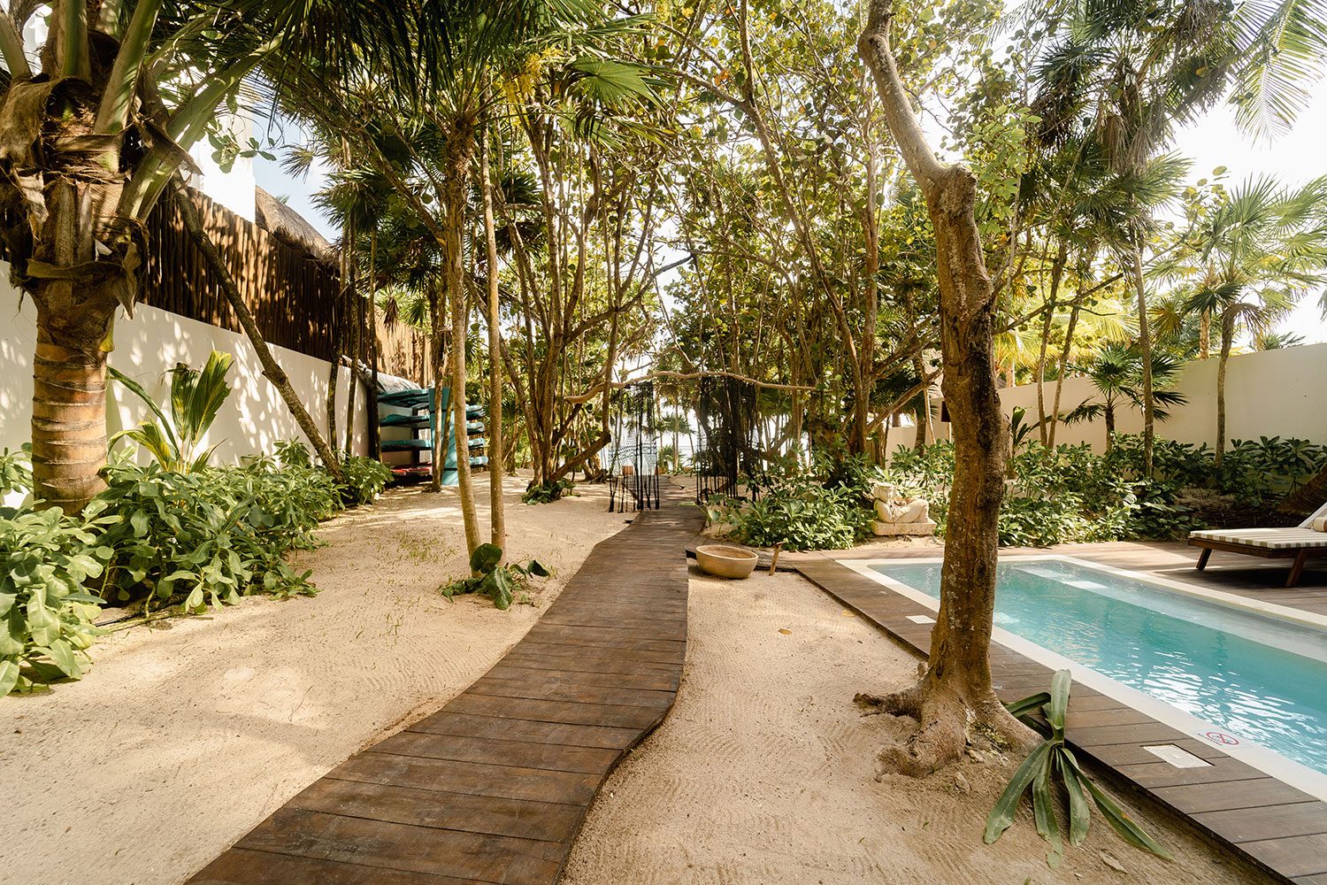 Soliman Bay is Tulum’s best-kept secret — a reef-sheltered cove where the Caribbean stays shallow, calm, and crystal-clear year-round. There are no beach clubs, no crowds, and no seaweed. The reef just meters from shore makes snorkeling effortless, and paddleboarding at sunrise is a daily ritual. The bay sits 14 km north of Tulum town, where world-class restaurants, cenotes, and cultural landmarks are a 17-minute drive away.