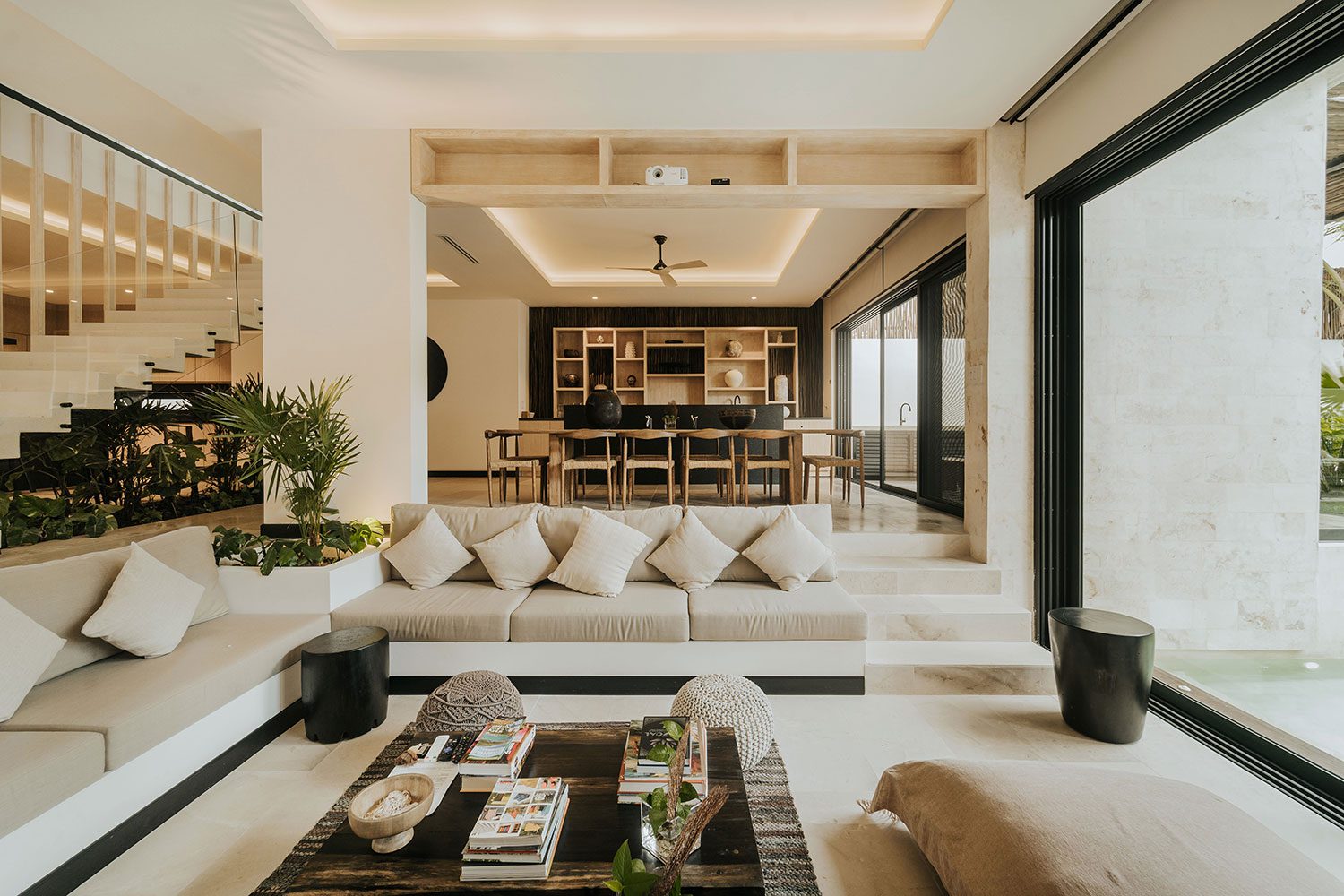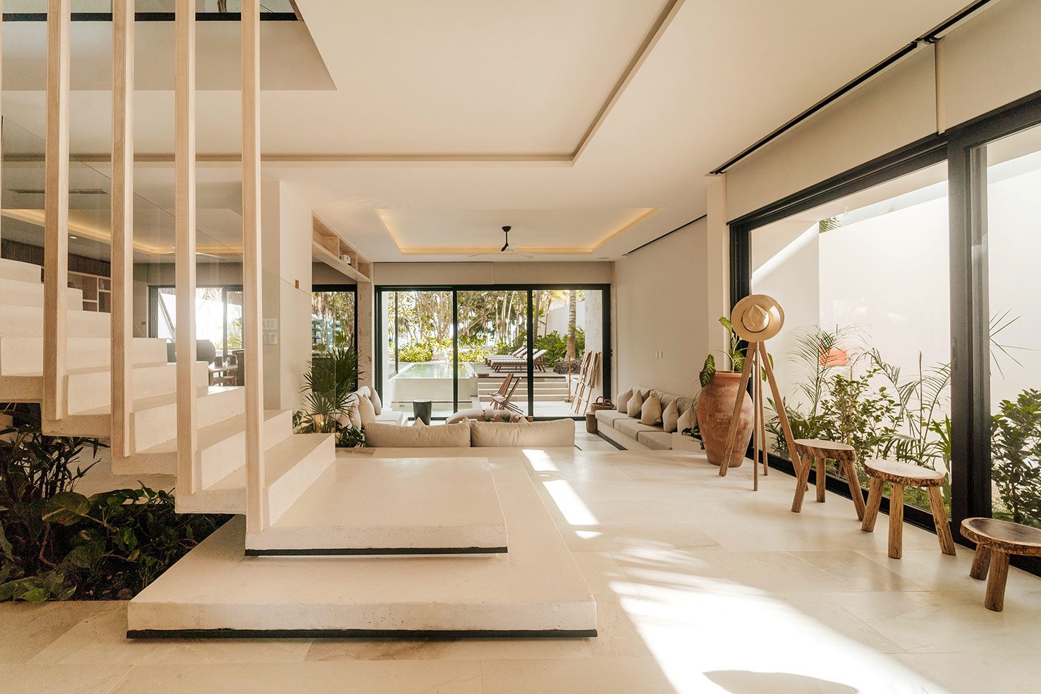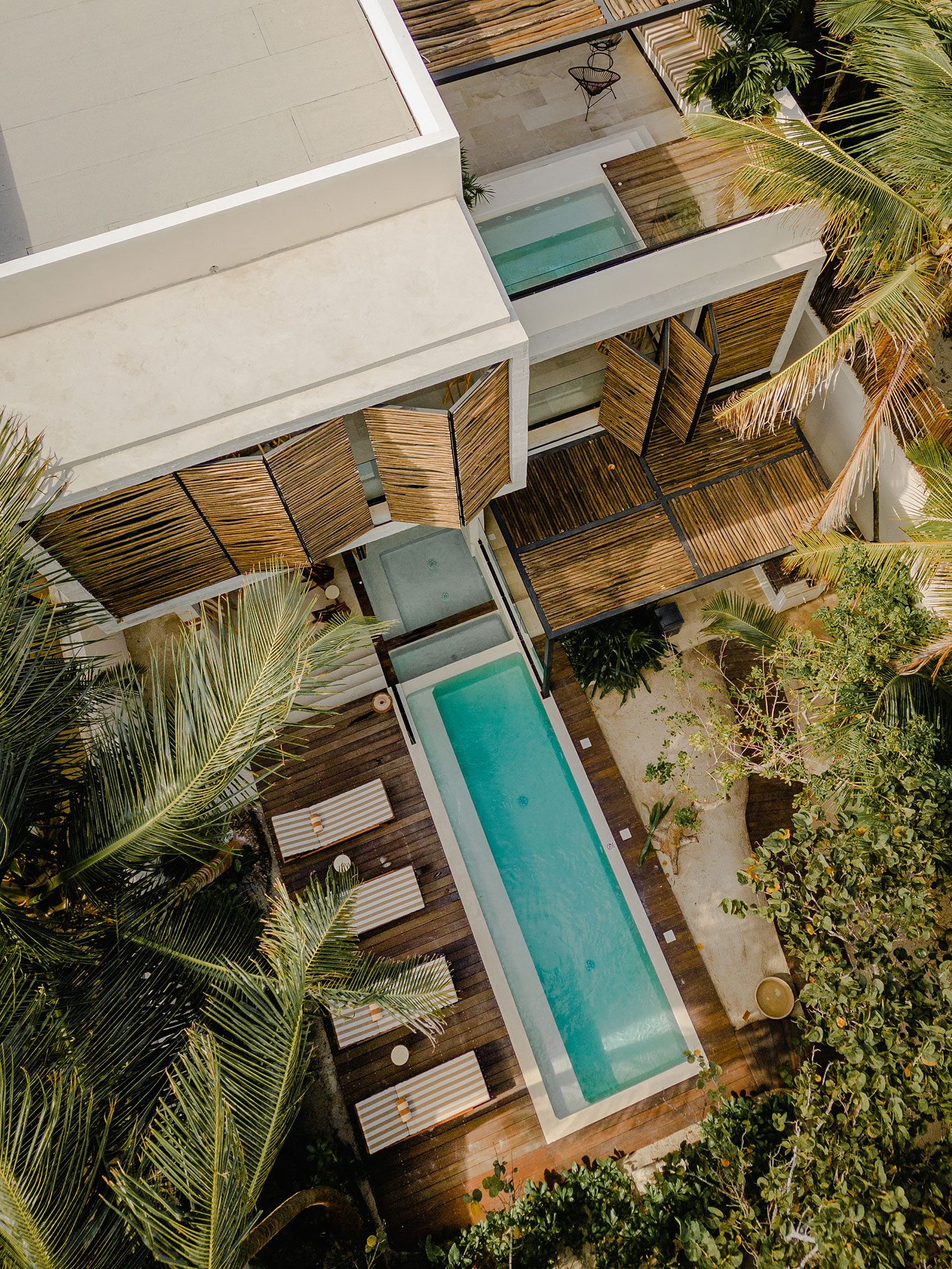 Azumaya Beach House is a six-bedroom, fully staffed beachfront estate on Soliman Bay, Tulum — one of the Riviera Maya’s most protected and intimate stretches of coastline — accommodating up to 12 guests across two private tiers of ocean-facing suites and jungle-view suites. At 7,535 sq ft (700 sq m), this architecturally distinct villa was designed around the idea that the ocean, the jungle, and the people inside should always be in conversation with one another.