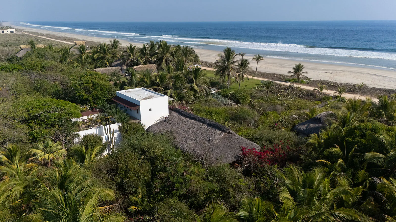 It’s located near the Mexican Pacific Ocean and close to Puerto Escondido, Oaxaca. The villa showcases a secluded beach charm. Moreover, its design highlights its environment. The abode is in Oaxaca’s lush setting. Its features blend with nature, offering guests peace. The open floor plan tempts guests to the pool or beachfront palapas. Inside, a spacious living area and modern kitchen stand out. A dedicated chef prepares delightful meals there.