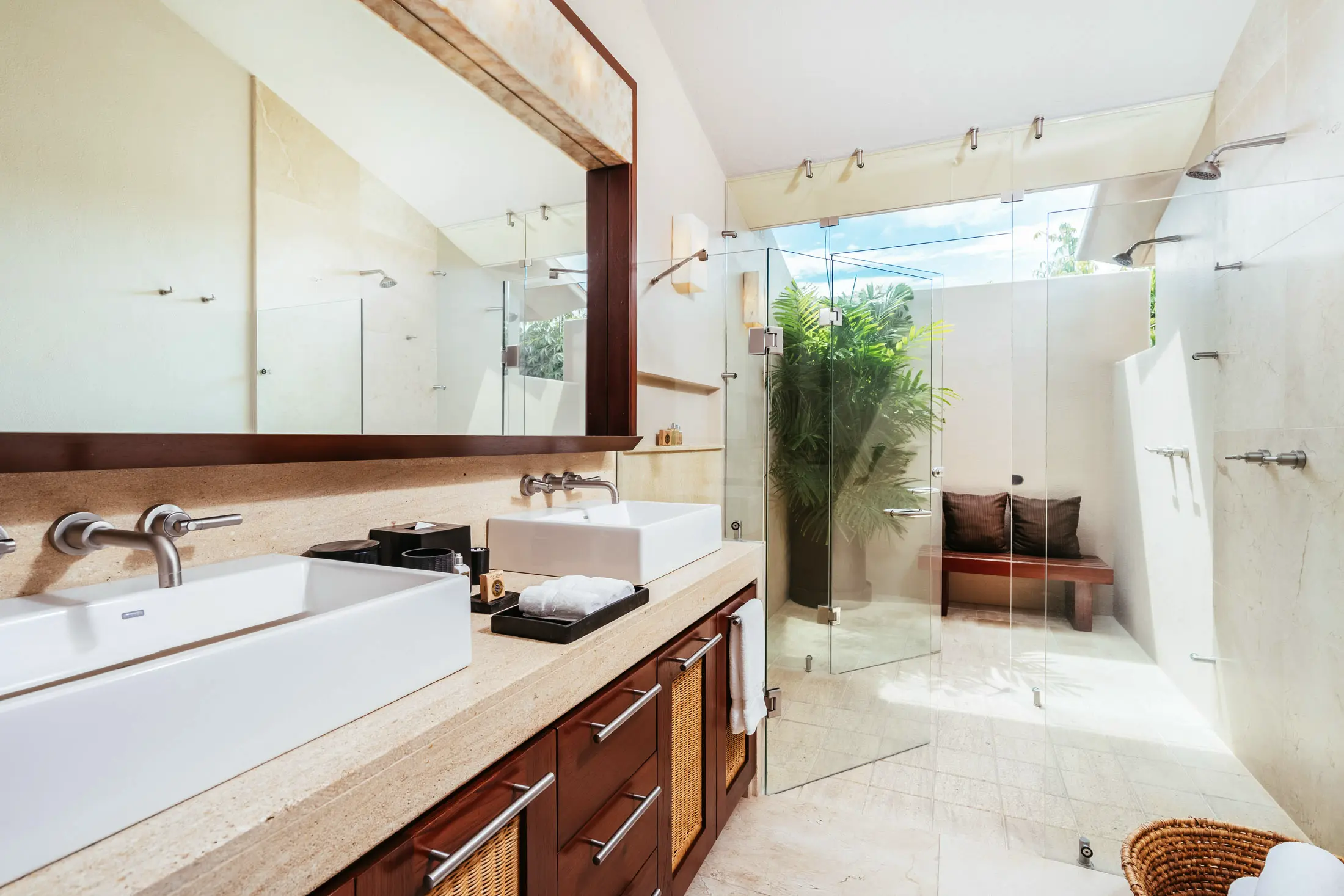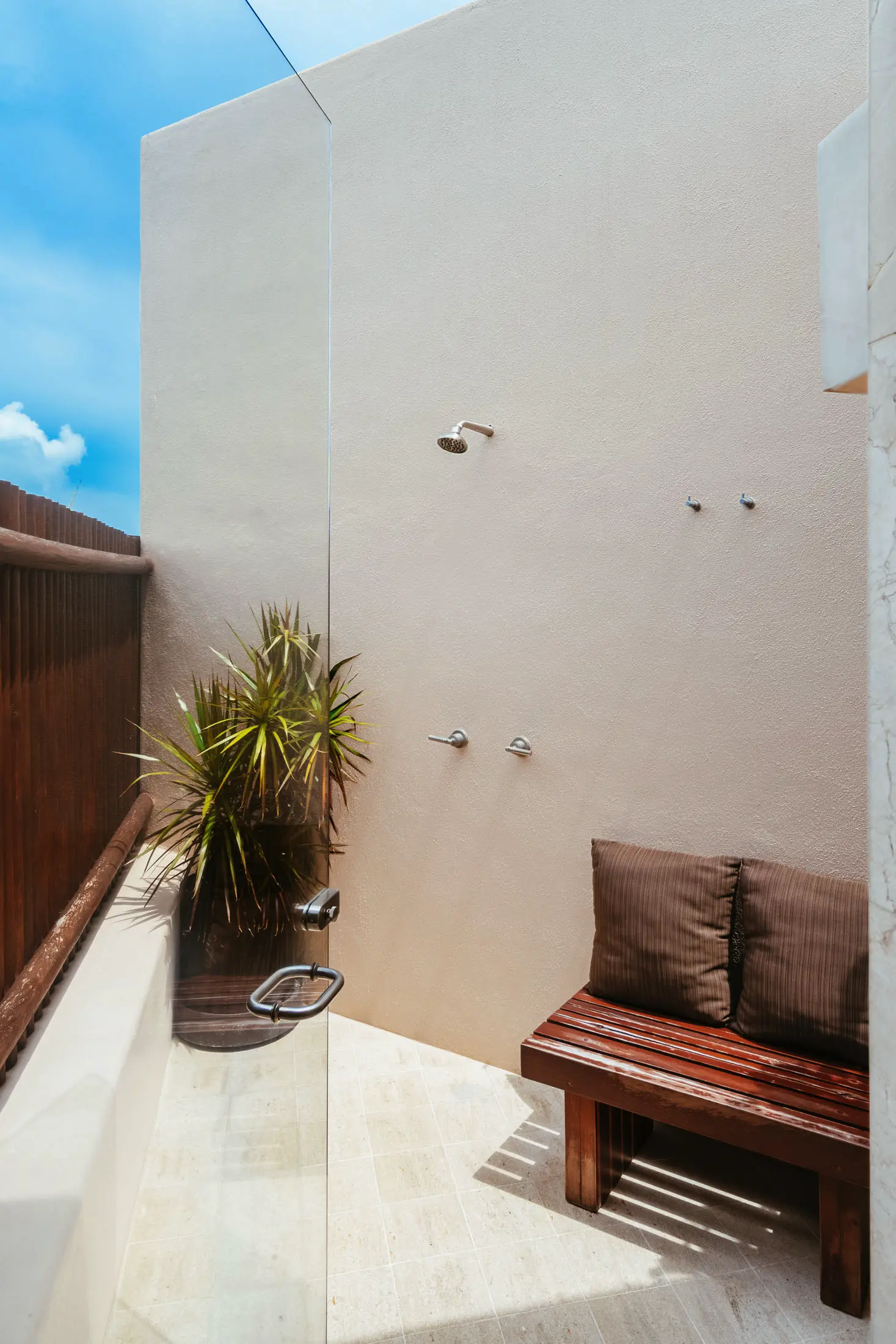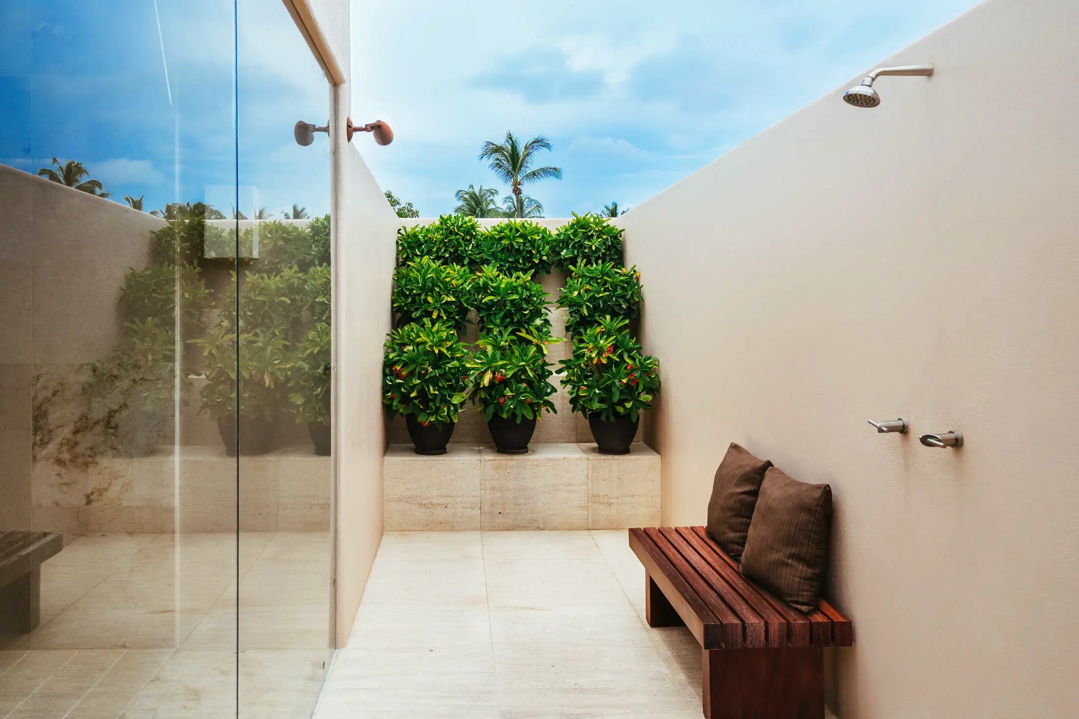 Indoor/outdoor showers in all suites