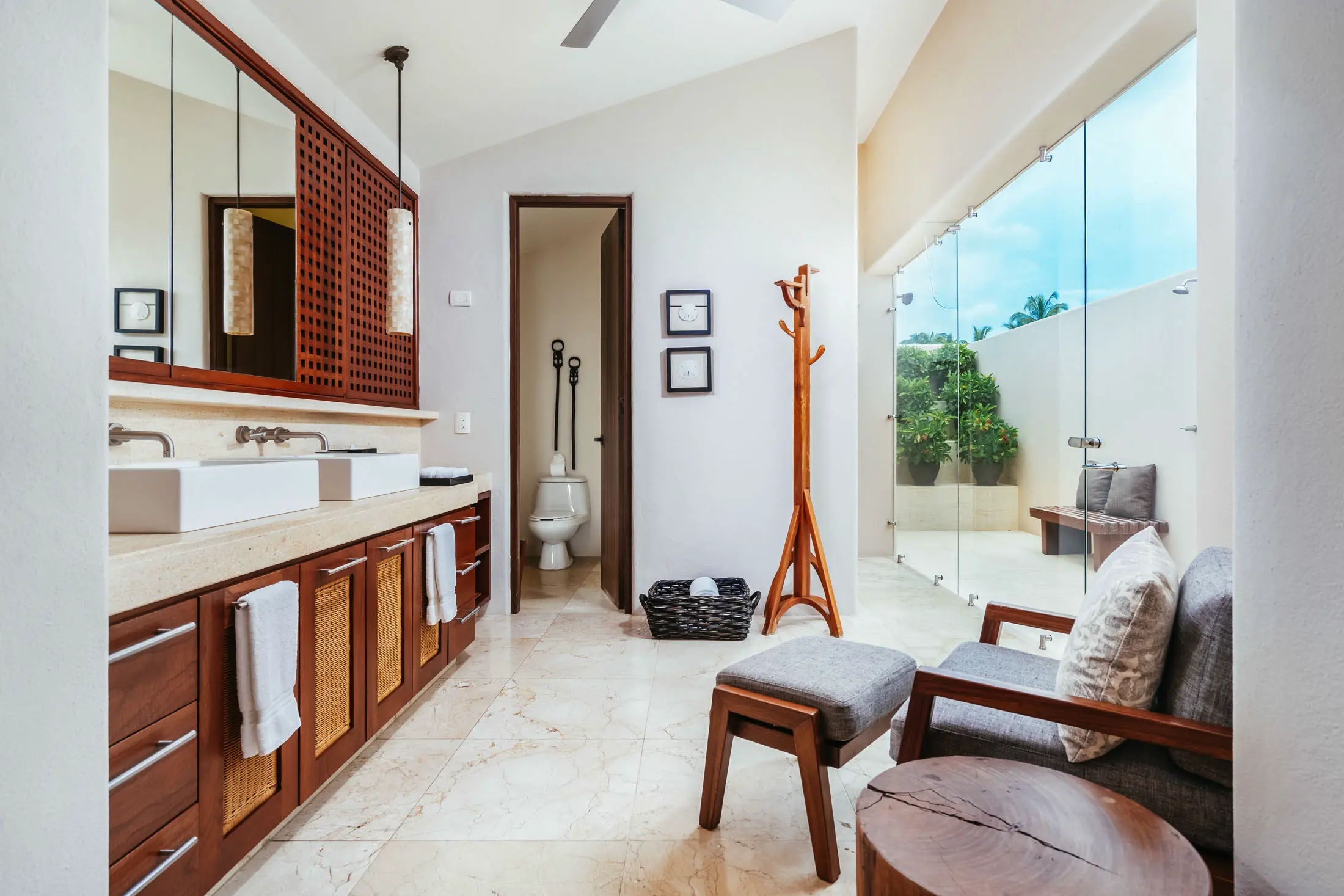En-suite bathroom with dual indoor/outdoor shower options