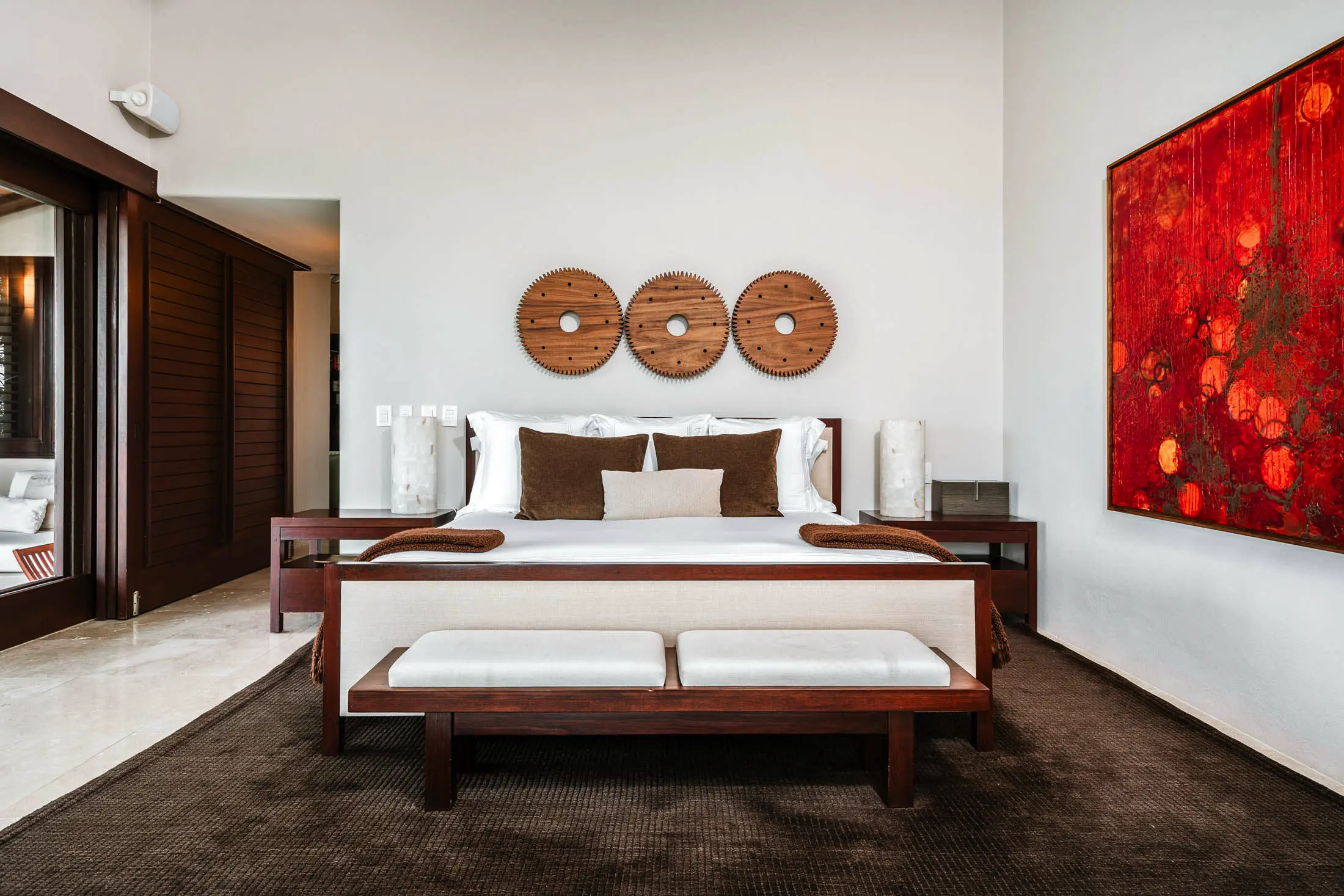 King-size bed with artisan-crafted headboard