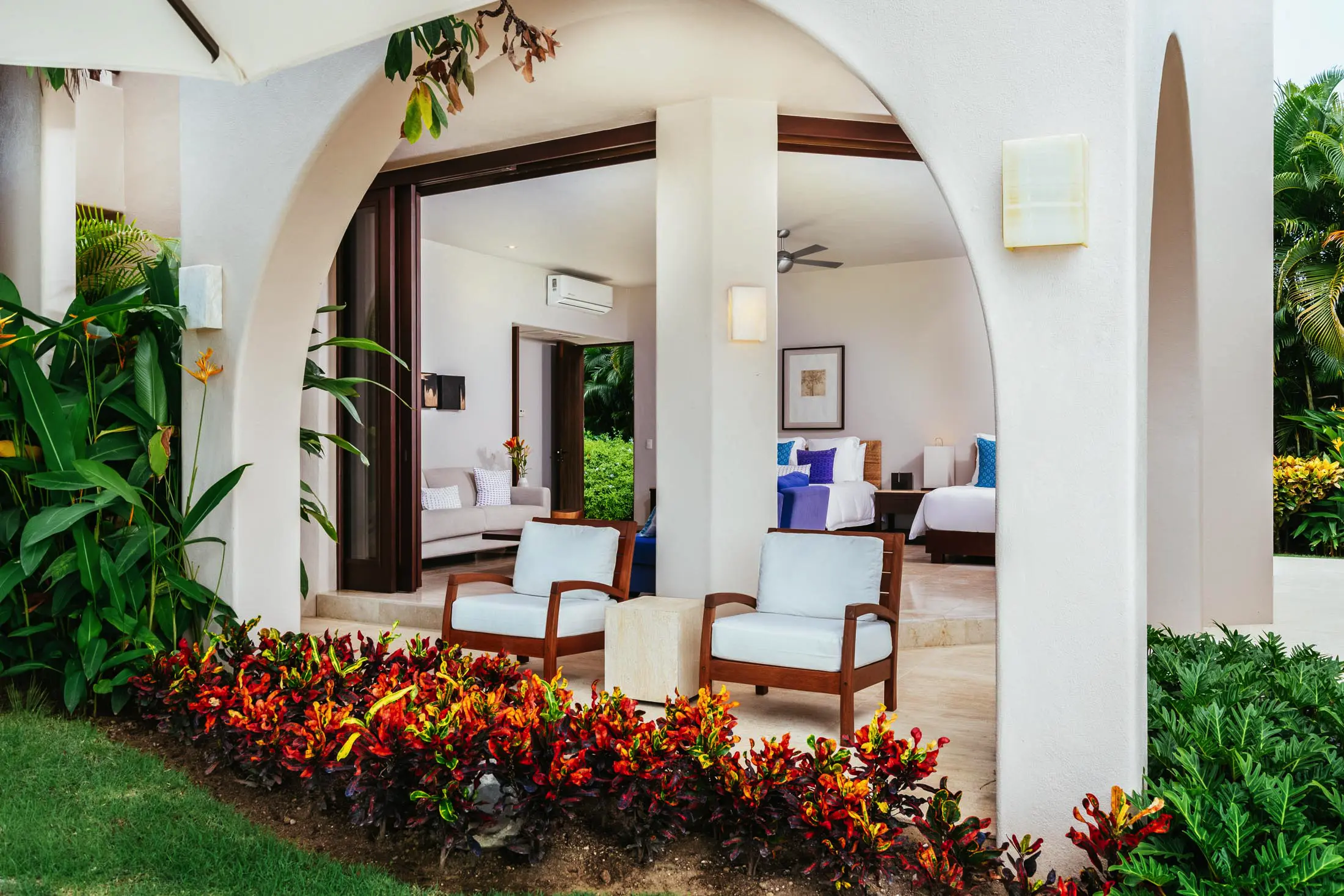 Lush tropical garden steps away