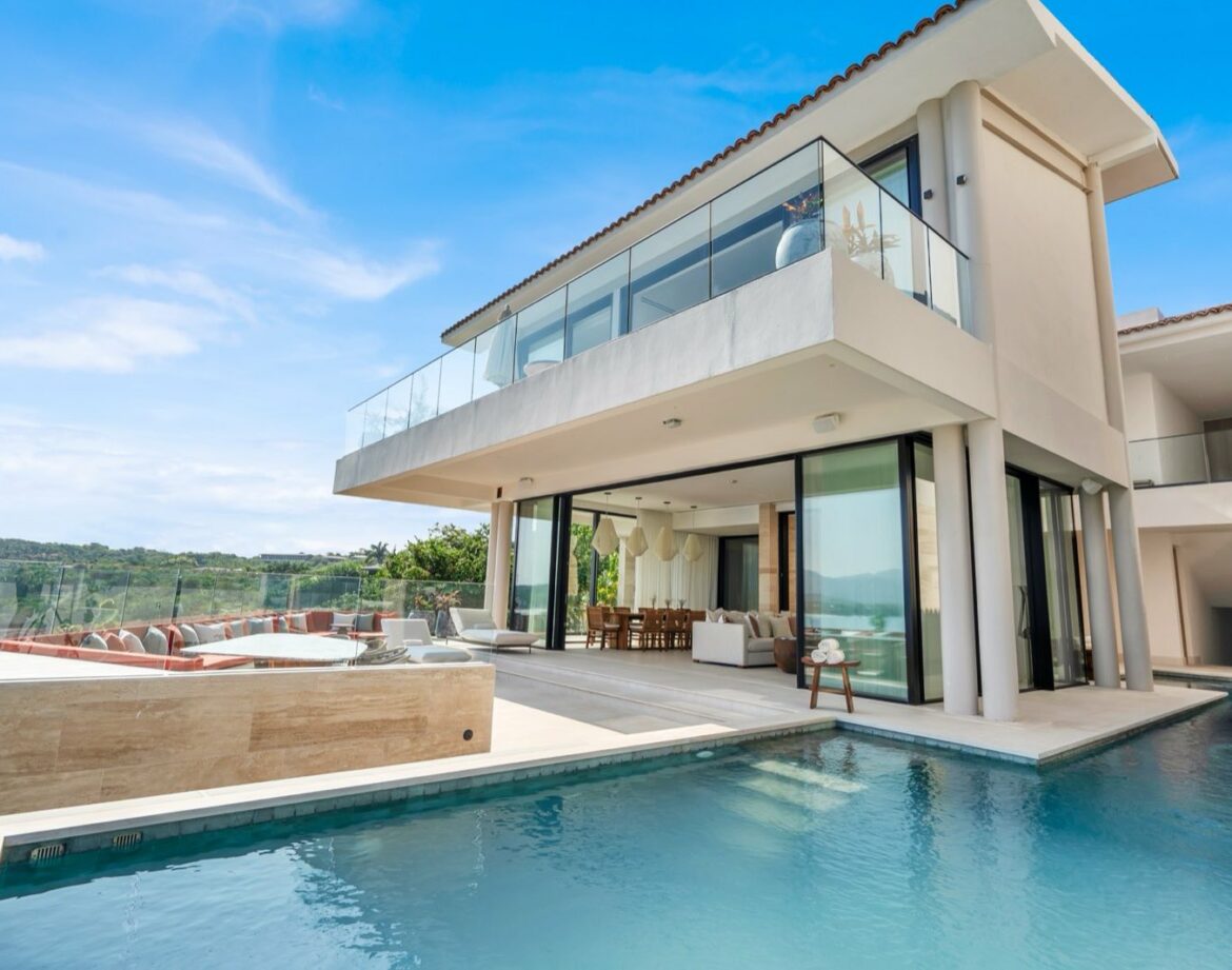 Casa Dinamita is a spectacular oceanfront estate set within the exclusive Kupuri Estates community at Punta Mita, commanding sweeping panoramic views of the Pacific Ocean from its perch along the Riviera Nayarit coastline. This six-bedroom, seven-bathroom ultra-luxury villa accommodates up to sixteen guests across four ocean-view suites and two guest bedrooms, each impeccably designed with bespoke furnishings, hand-selected artwork, and artisan-crafted accents. The open-concept living areas, enclosed in floor-to-ceiling glass, create a fluid connection between the contemporary interiors and the breathtaking natural surroundings, while the state-of-the-art gourmet kitchen with premium stone countertops and high-end appliances anchors the home’s social heart.