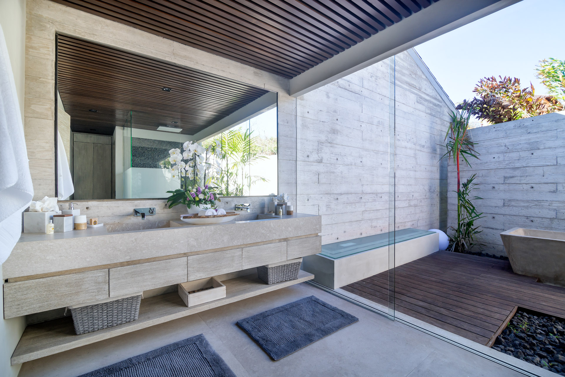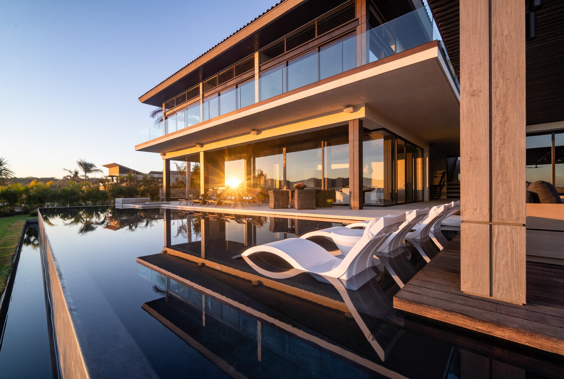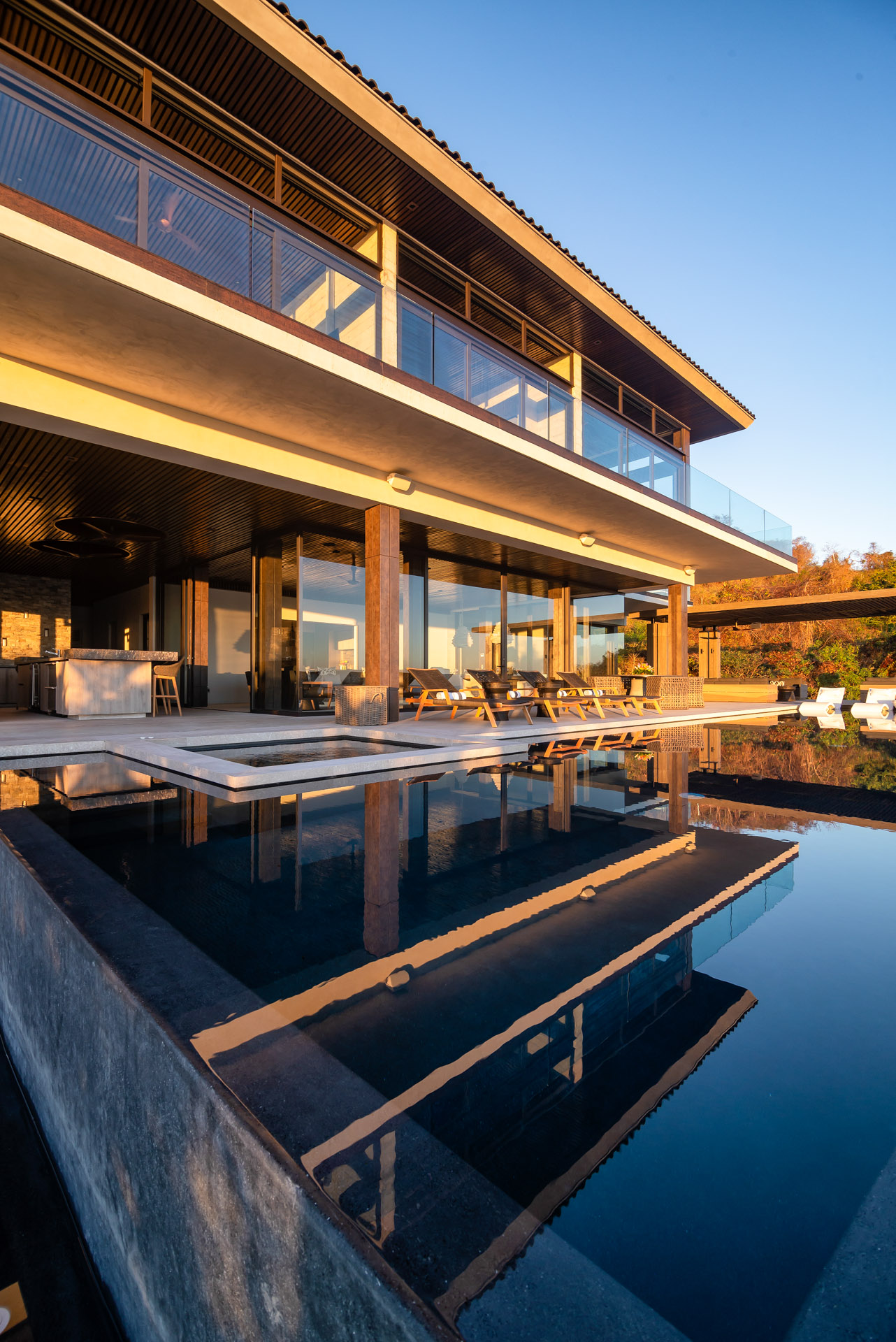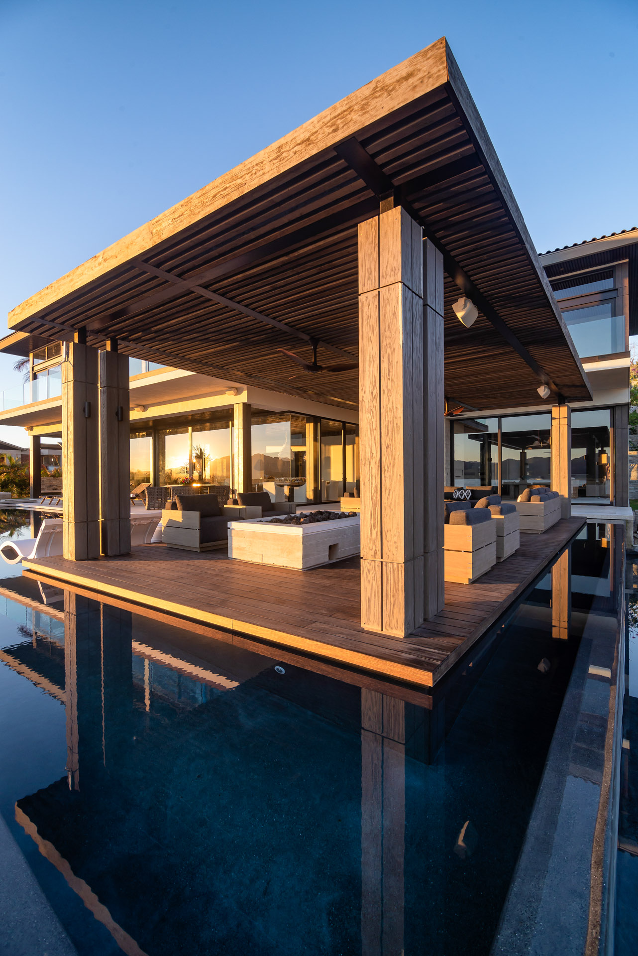 You enter Kupuri 32 by descending fifteen-foot-wide marble stairs bordered on both sides by a shimmering waterfall of thousands of small rounded black stones. With each step, the view in front of you slowly enlarges, revealing the reef, the ocean, and finally the mountain in the distance. The house was designed with three distinct goals: amazing views from every room, a laid-back five-star resort feel, and spaces that encourage family bonding and lifetime memories. The result is an architectural masterpiece that seamlessly merges indoor luxury with the raw beauty of the Pacific coastline.
