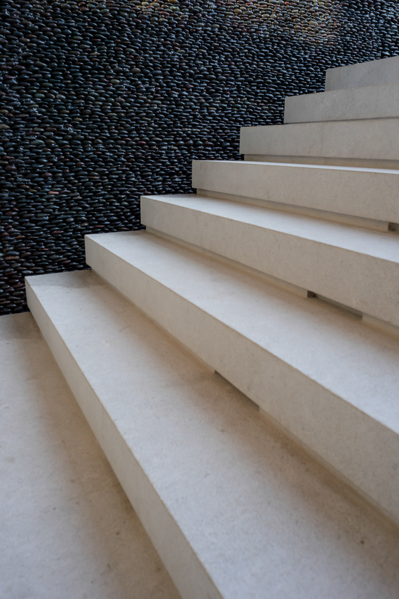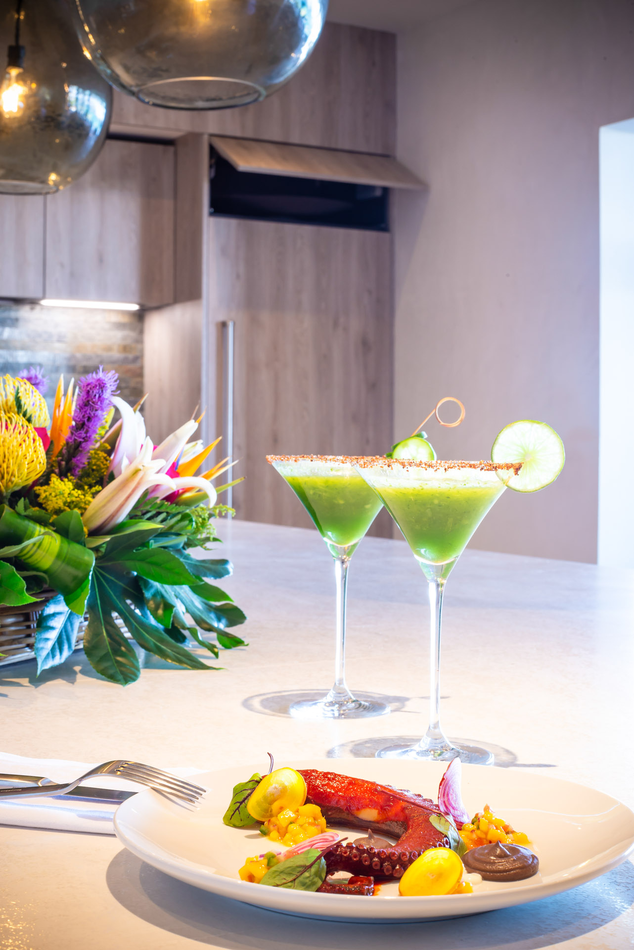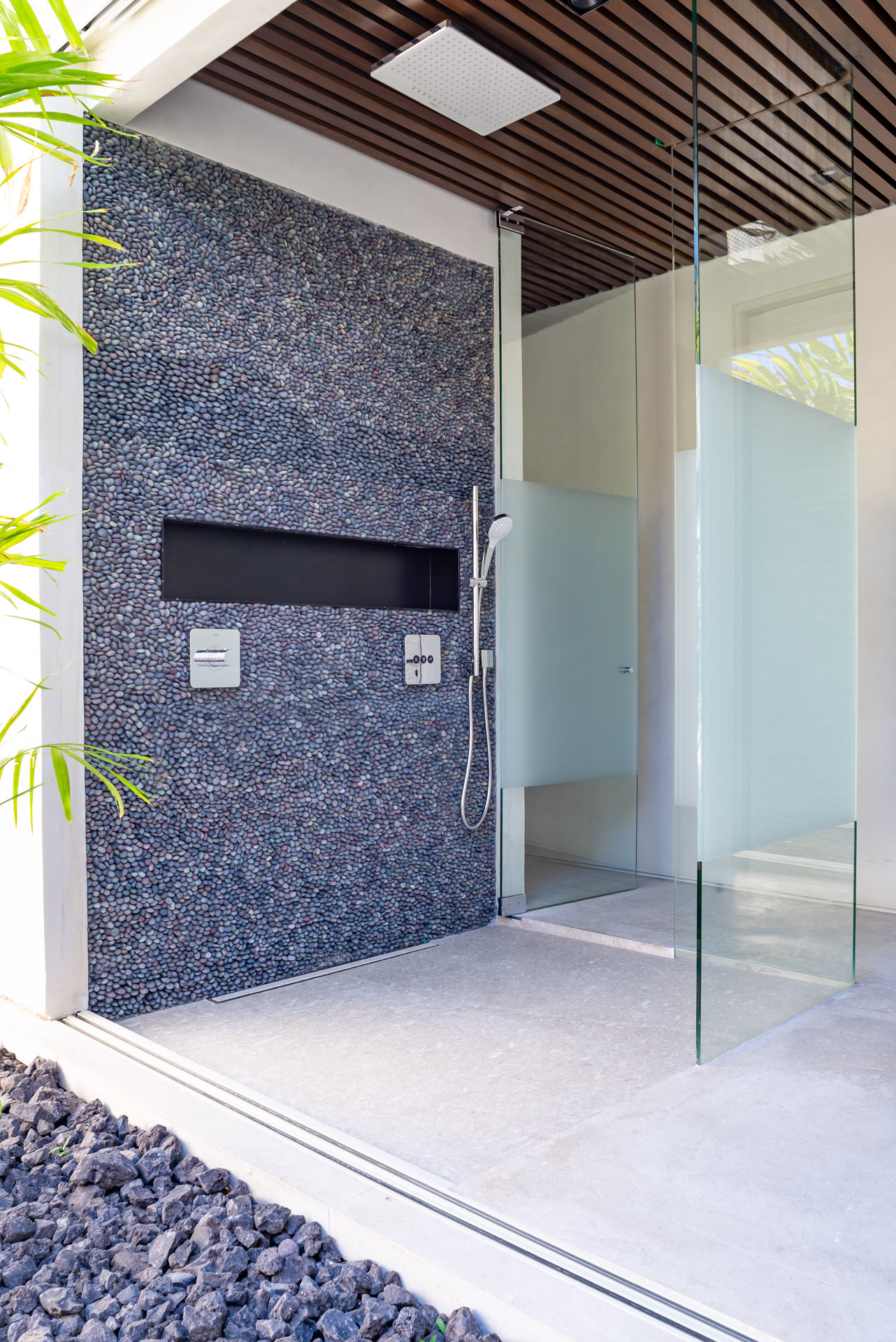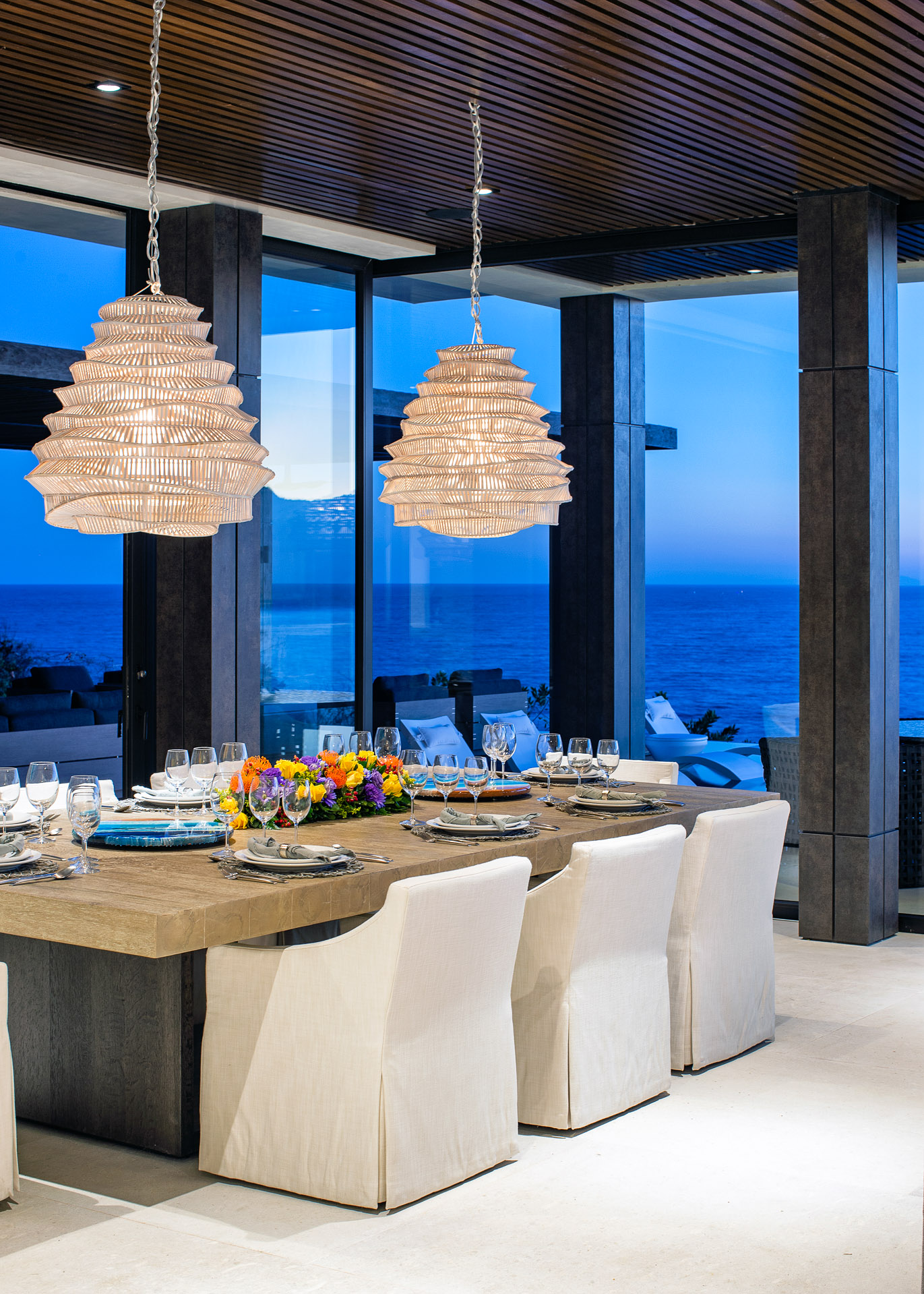 You enter Kupuri 32 by descending fifteen-foot-wide marble stairs bordered on both sides by a shimmering waterfall of thousands of small rounded black stones. With each step, the view in front of you slowly enlarges, revealing the reef, the ocean, and finally the mountain in the distance. The house was designed with three distinct goals: amazing views from every room, a laid-back five-star resort feel, and spaces that encourage family bonding and lifetime memories. The result is an architectural masterpiece that seamlessly merges indoor luxury with the raw beauty of the Pacific coastline.
