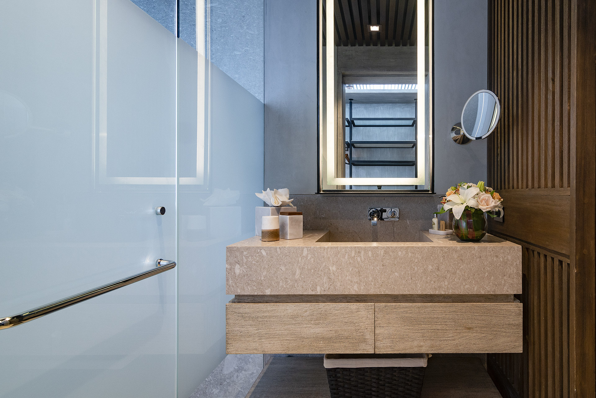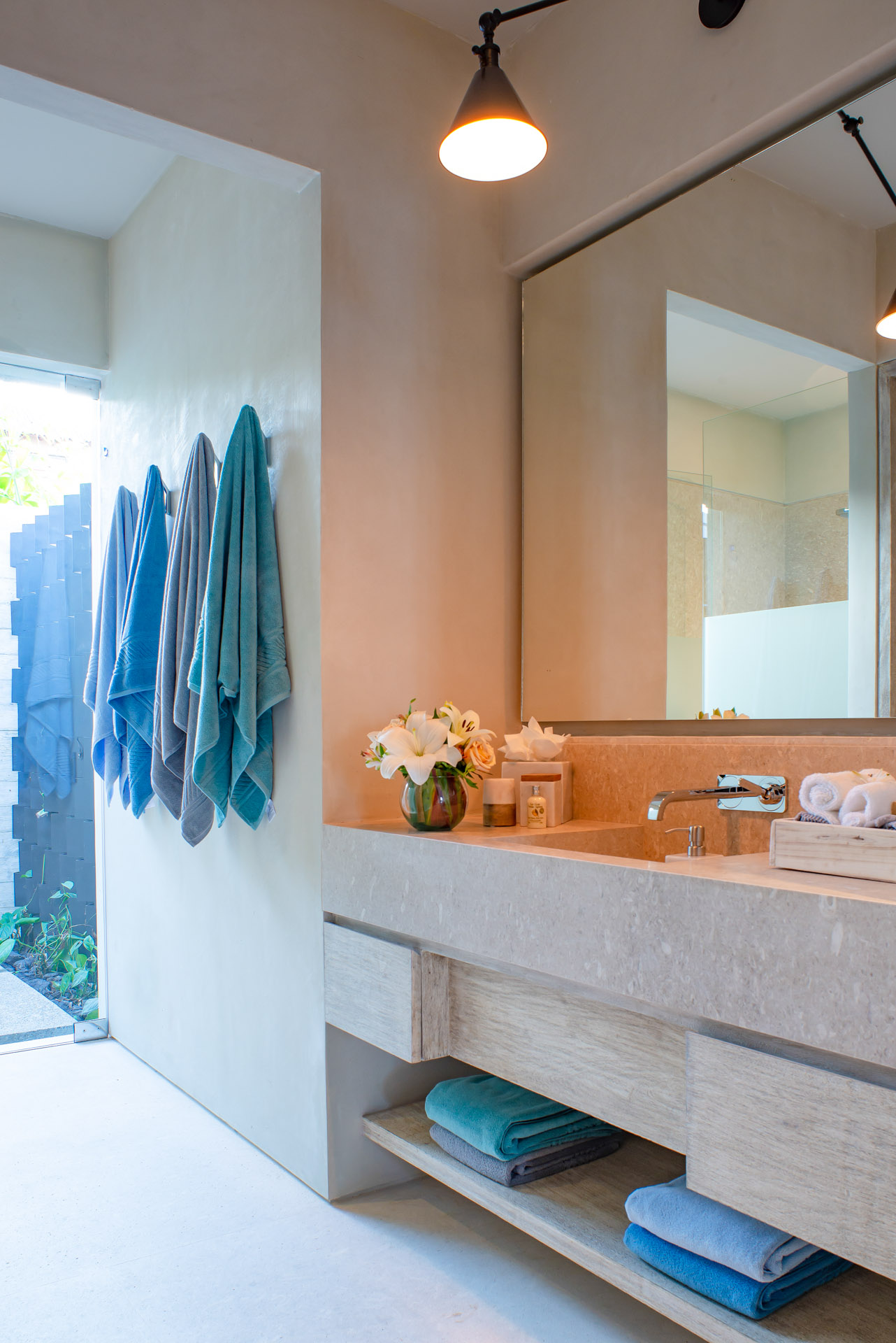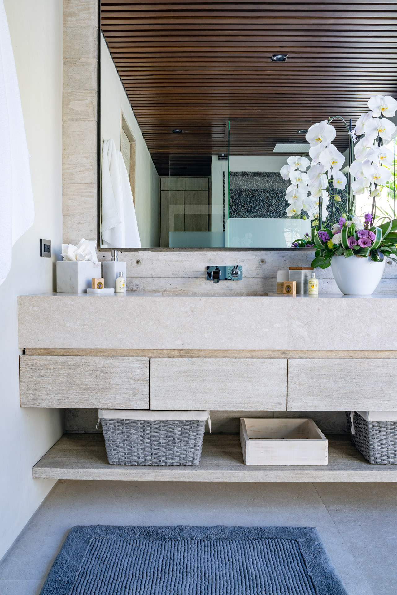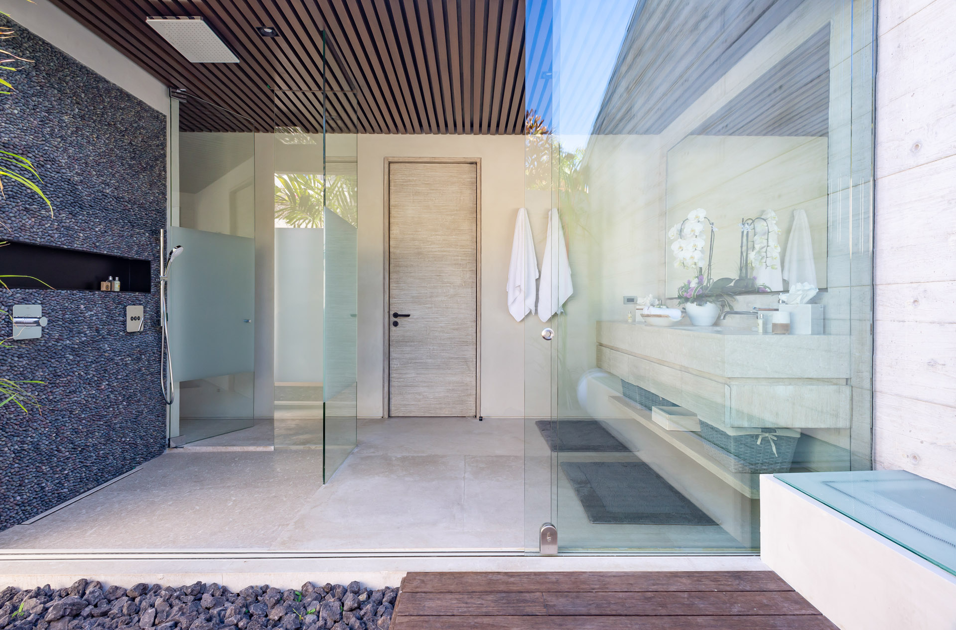 Six bedroom suites accommodate up to sixteen guests in extraordinary comfort. Three master suites feature king-size beds with floor-to-ceiling ocean views, while additional bedrooms offer queen beds, bunk configurations, and a dedicated teens’ room. Every bedroom includes air conditioning, ensuite bathroom, and stunning views of either the ocean, jungle, or mountain landscape.