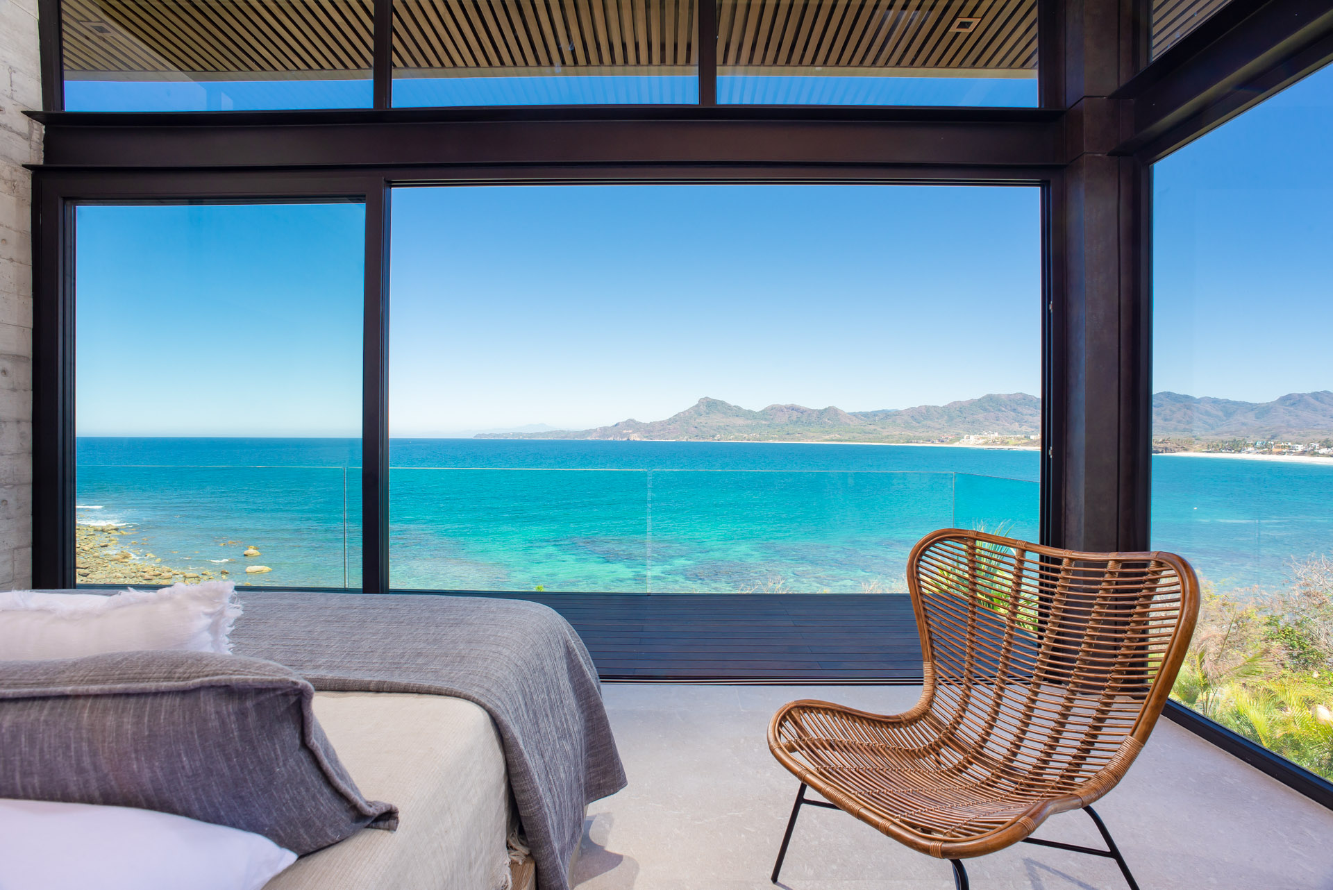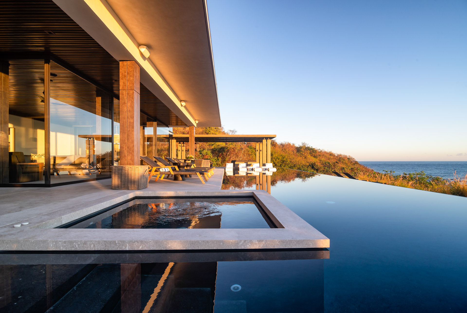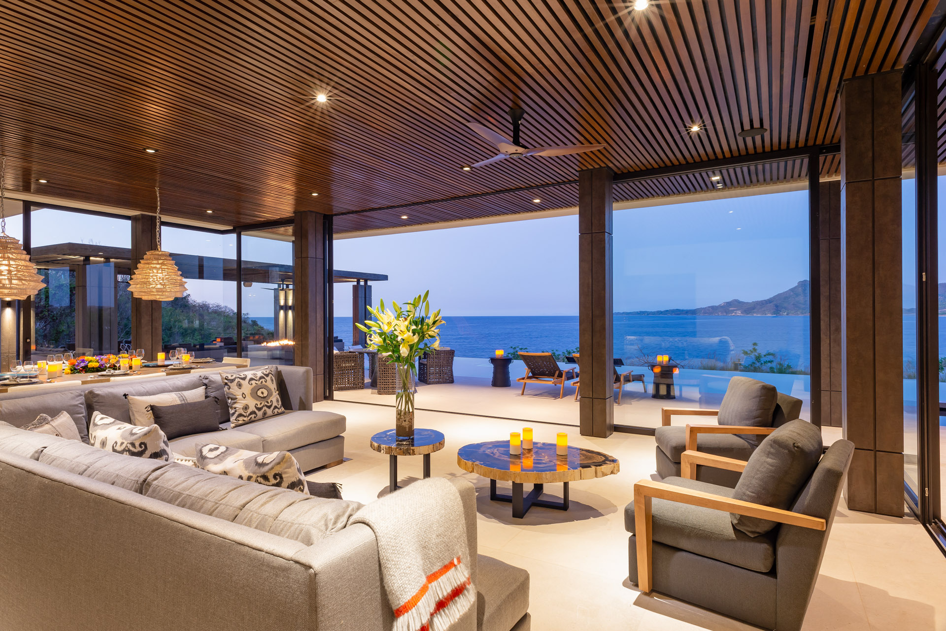 Kupuri 32 is a breathtaking beachfront estate within the ultra-exclusive Kupuri Estates of Punta Mita, widely regarded as one of the most spectacular private villa rentals on Mexico’s Riviera Nayarit. This fully staffed six-bedroom residence sits directly on the Pacific Ocean with dramatic panoramic views of the turquoise waters, the reef, and the majestic Monkey Mountain rising in the distance, creating a living postcard that changes with every hour of the day.