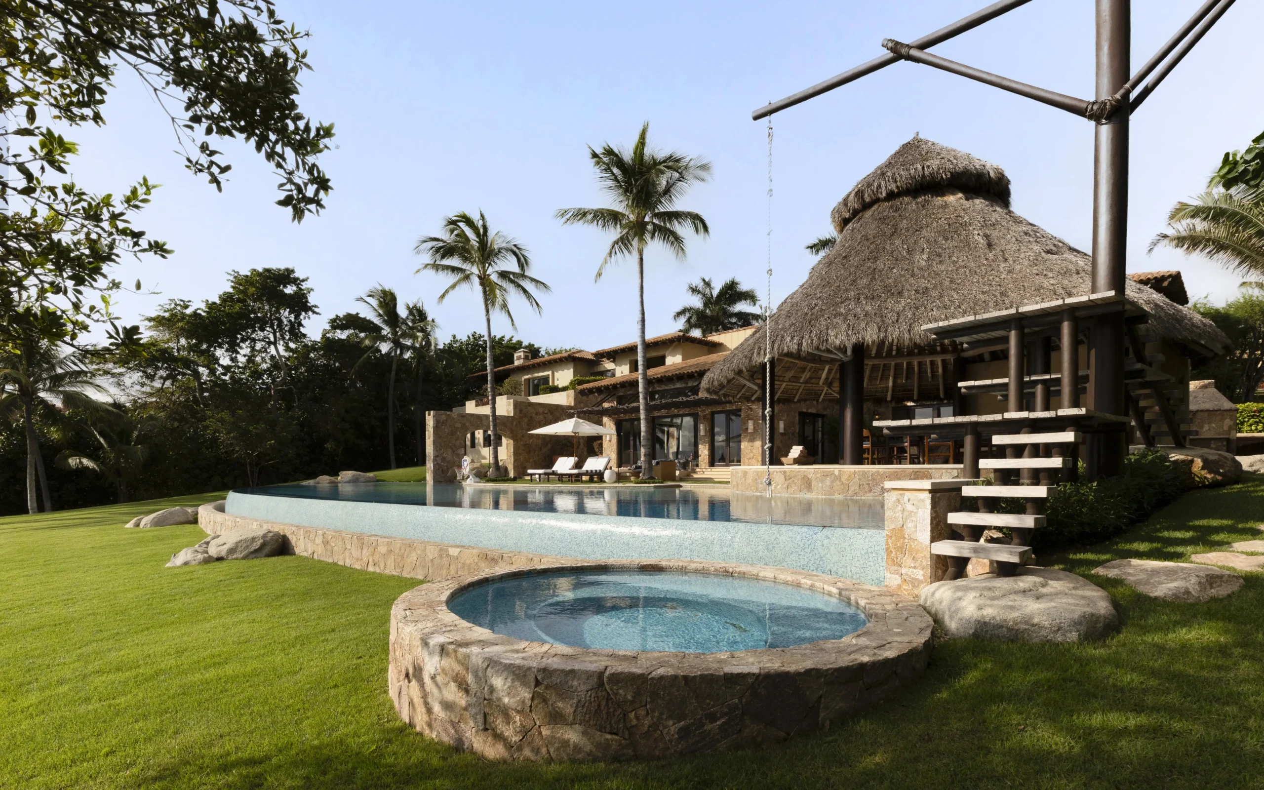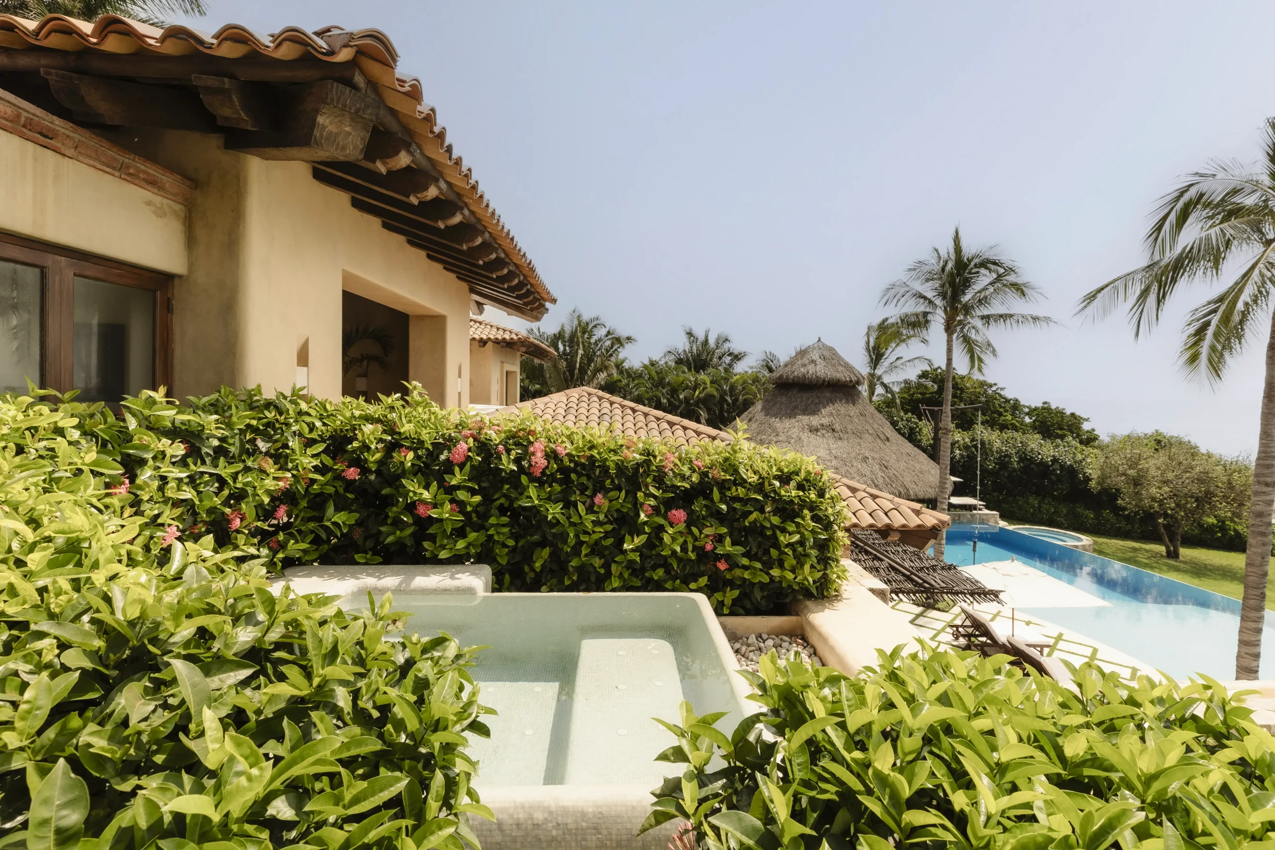 The great outdoors beckons with offerings like a traditional palapa bar, expansive ocean-front terraces, and gourmet facilities, including an outdoor grill and pizza oven. The ever-present Pacific Ocean serves as a serene backdrop, whether lounging in the pool or unwinding in the jacuzzi.