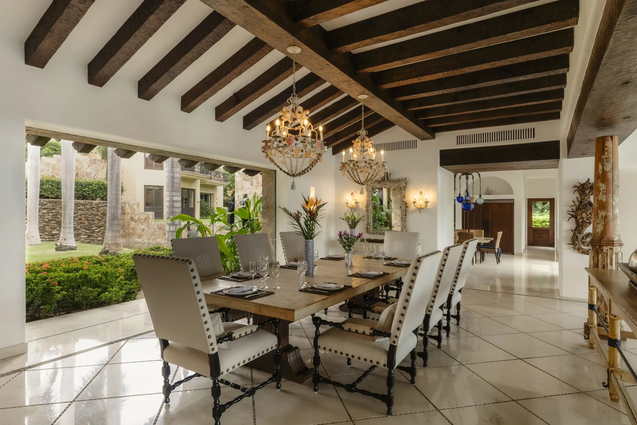 Entertain guests with an ultra-modern movie theater, a comprehensive game room, and a state-of-the-art gym. The dining panorama, which overlooks the infinity pool and the boundless ocean, sets the stage for unforgettable meals.