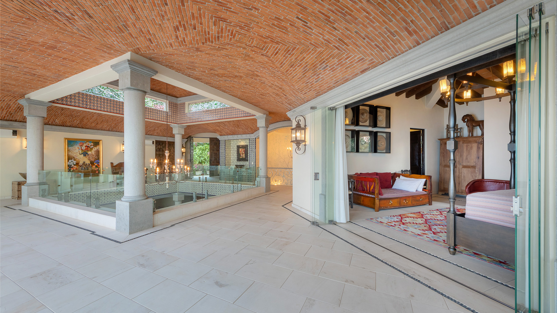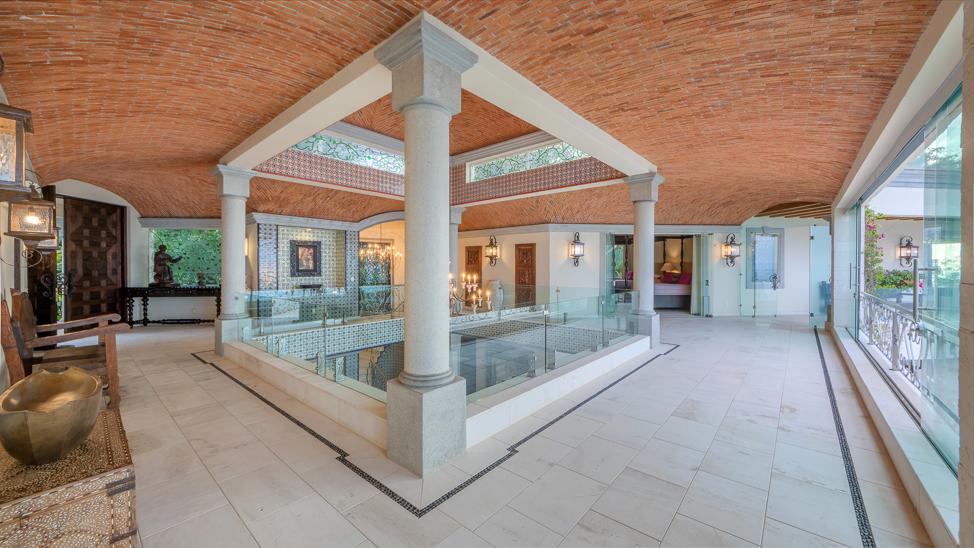 • Soaring arched openings connecting indoor and outdoor spaces