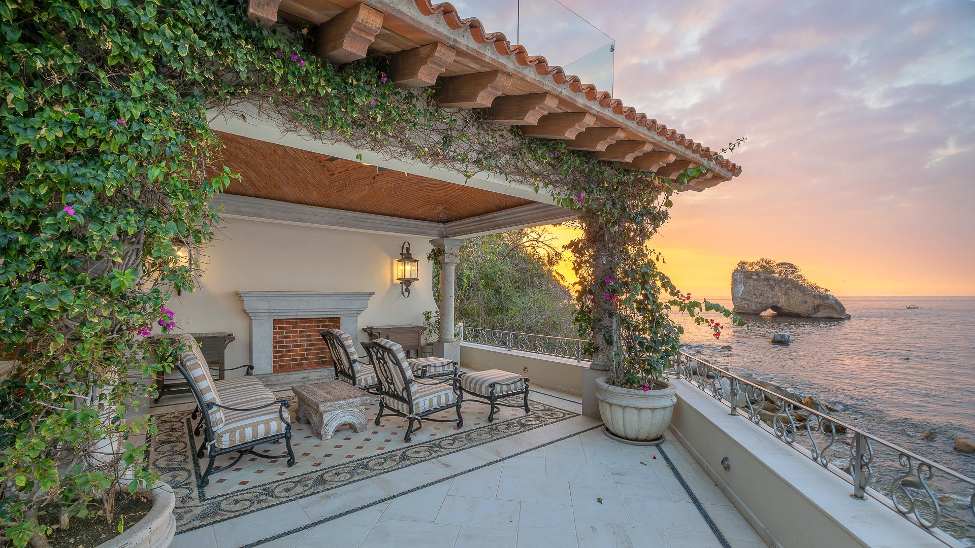 • Dedicated sunset gathering terrace with Los Arcos views