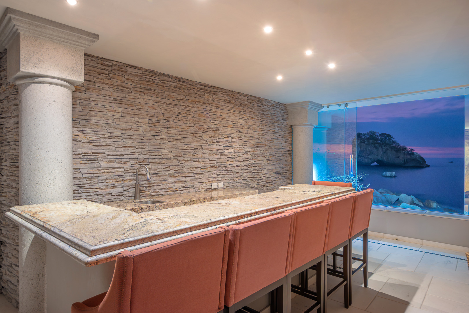 • Breakfast bar seating with ocean views