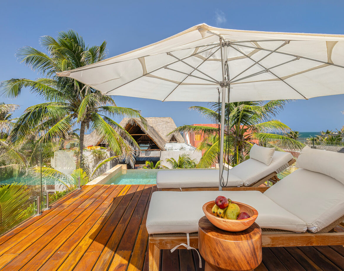 Day-to-day living flows easily between the semi-open living area, the built-in bar, and the sunny pool deck framed by tropical plants. The rooftop plunge pool offers an additional spot to unwind, especially in the late afternoon, while the pet-friendly policy makes it possible to bring four-legged companions along. With daily housekeeping, 24/7 security, and complimentary access to Blue Venado, the experience is designed to feel effortless from morning to night.