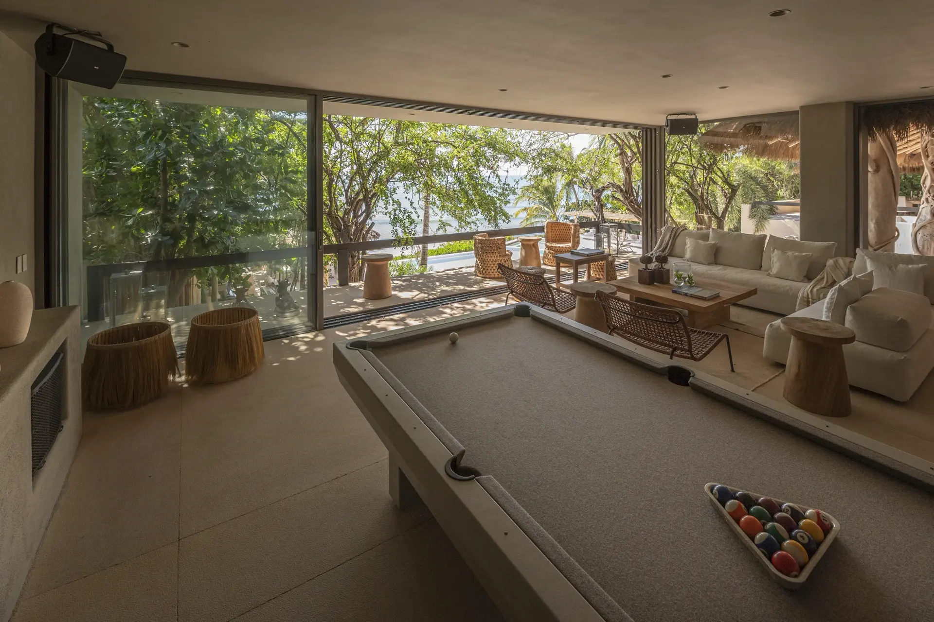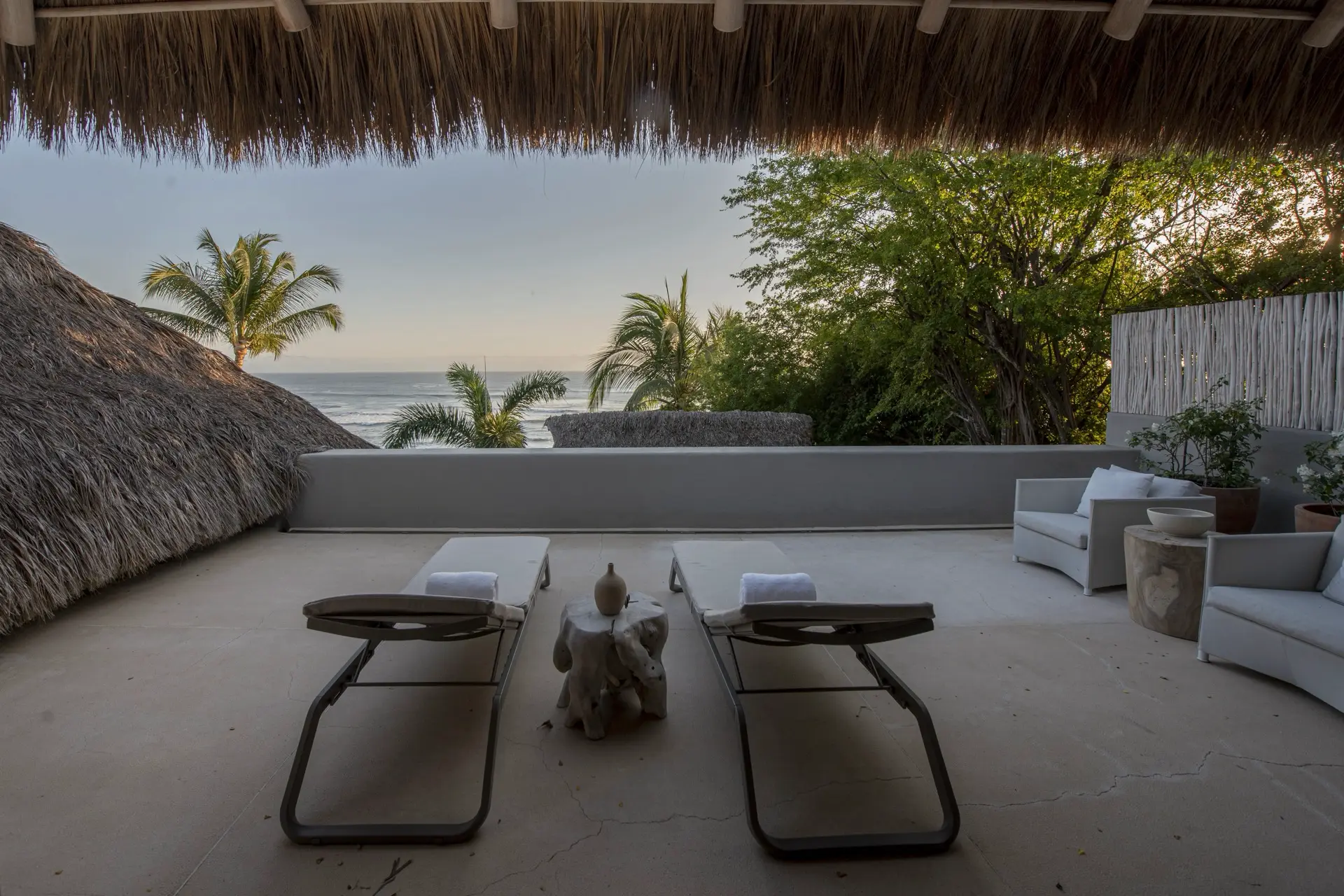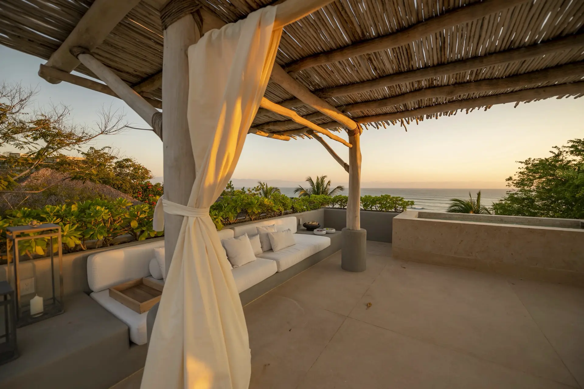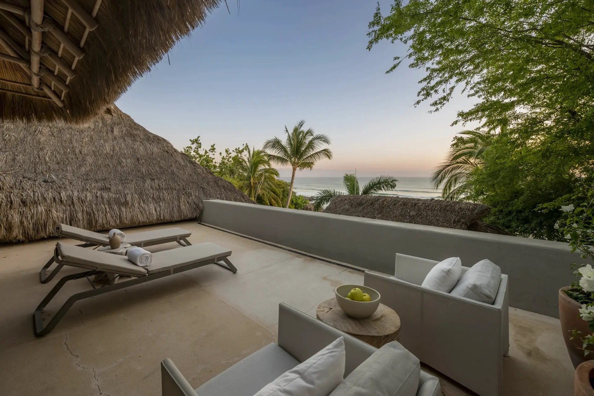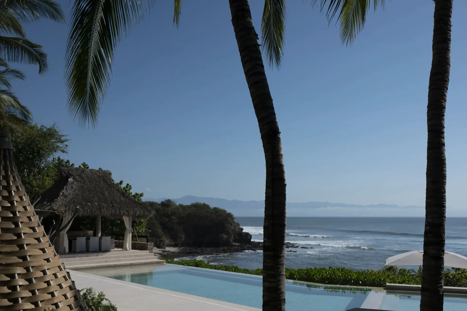 Arrival at Casarena feels like entering a private resort. Beyond elegant gates, swaying palms and polished sand paths lead the way to a world defined by quiet sophistication. The architecture draws inspiration from traditional palapa-style design, using organic materials that allow the villa to blend seamlessly into its tropical surroundings. Open-air spaces frame the ocean and sky, while the overall aesthetic is relaxed yet elevated—perfect for guests who appreciate design that feels both natural and intentional.
