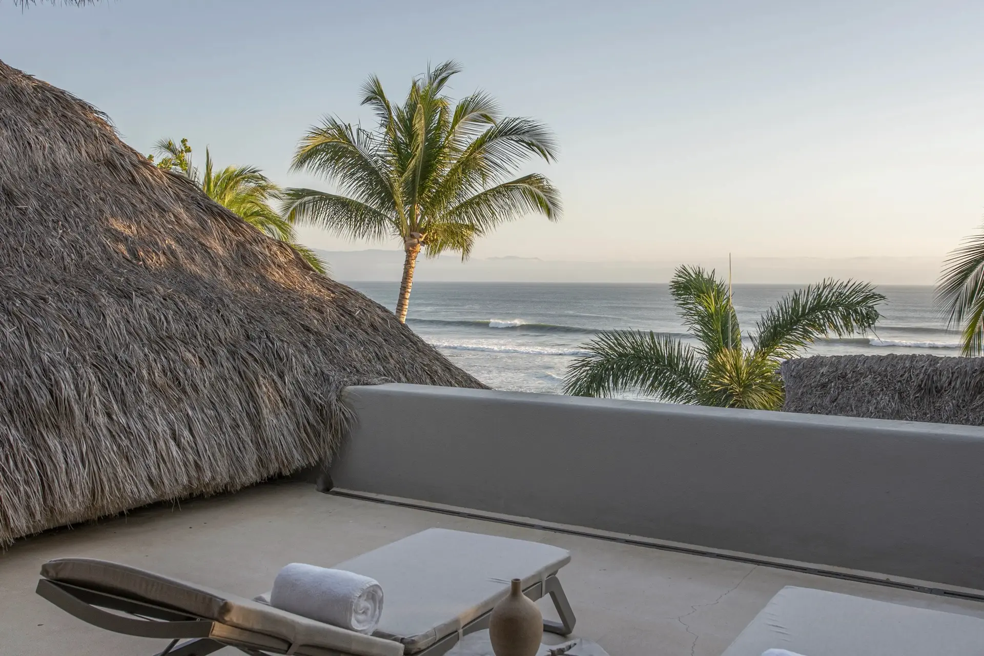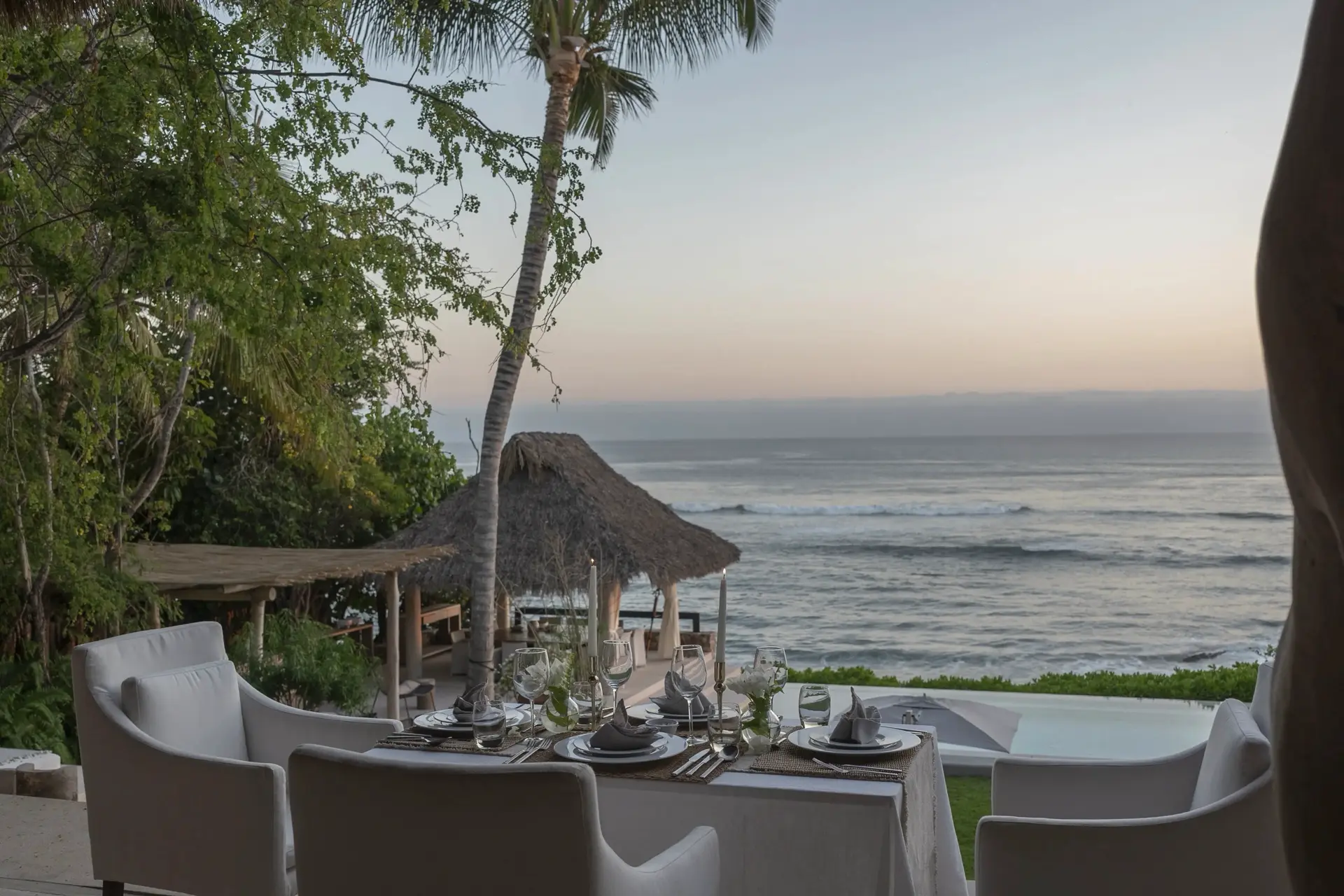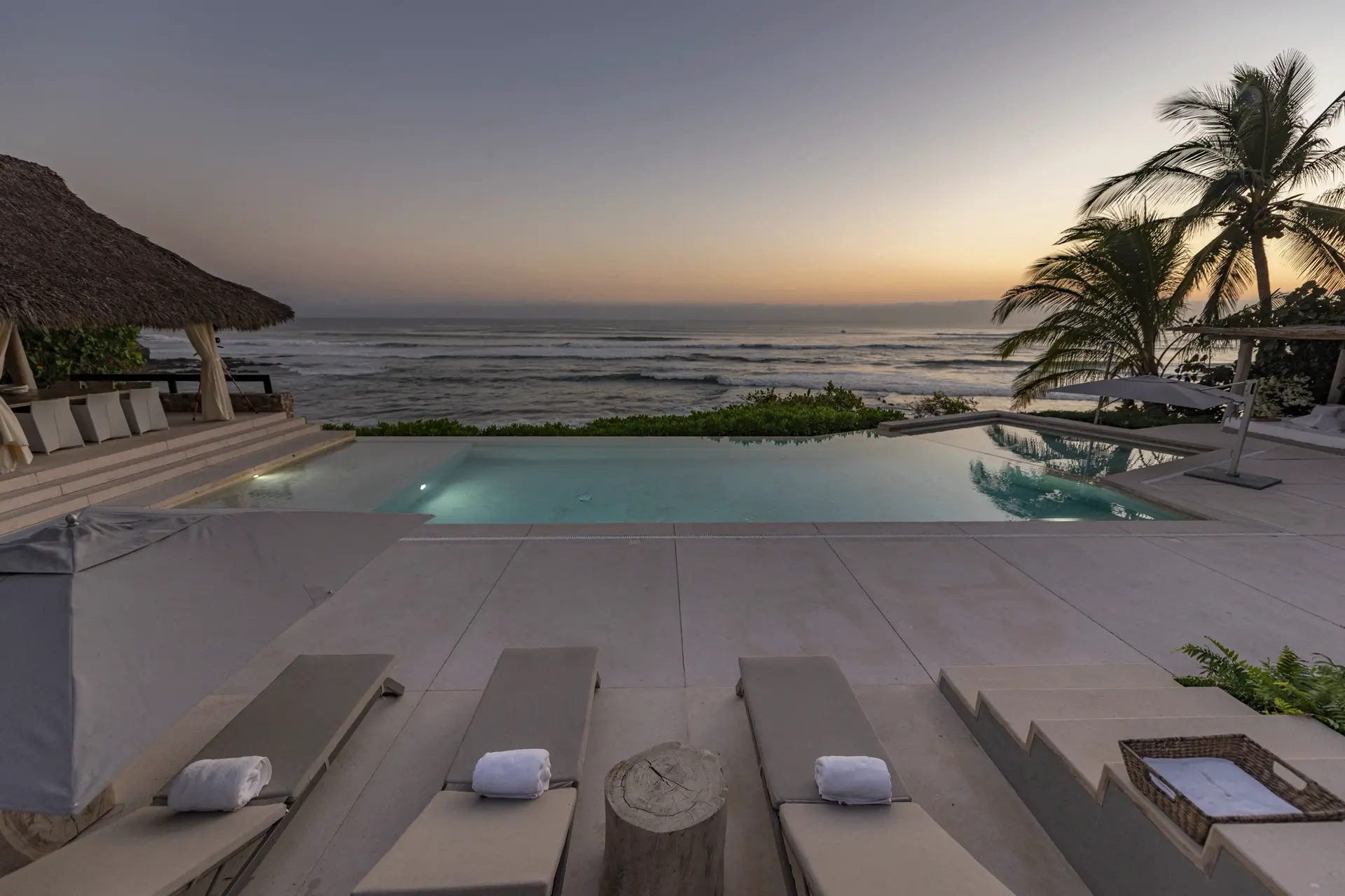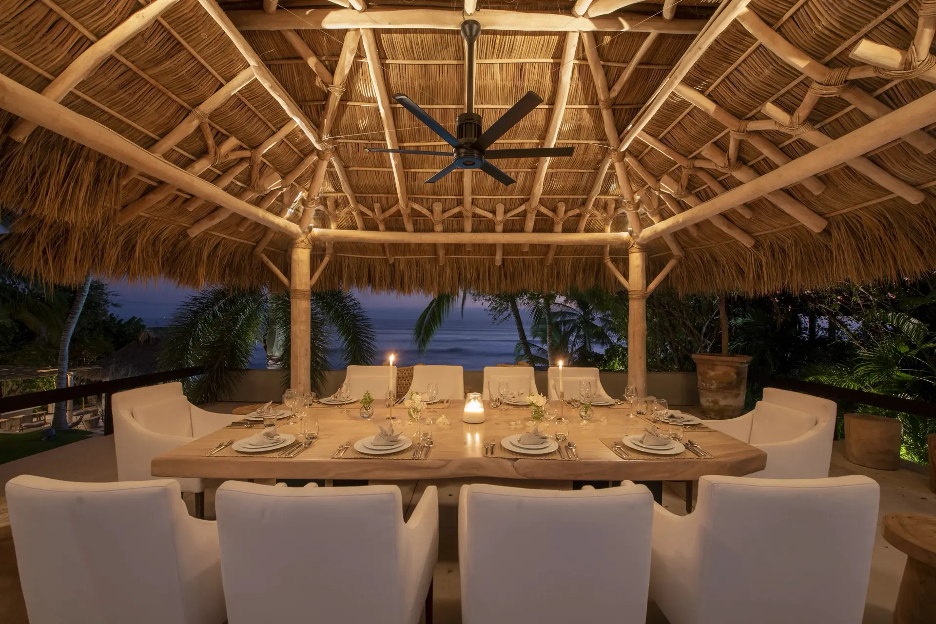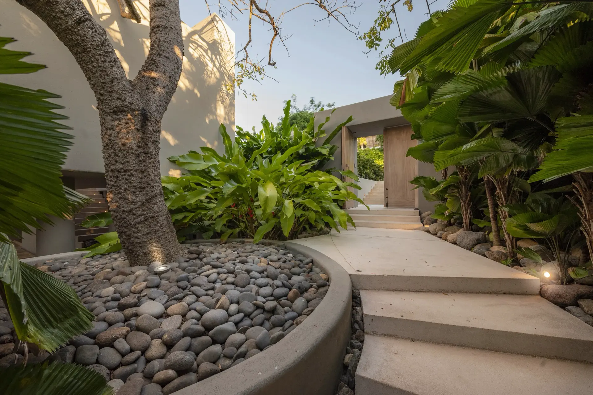 Arrival at Casarena feels like entering a private resort. Beyond elegant gates, swaying palms and polished sand paths lead the way to a world defined by quiet sophistication. The architecture draws inspiration from traditional palapa-style design, using organic materials that allow the villa to blend seamlessly into its tropical surroundings. Open-air spaces frame the ocean and sky, while the overall aesthetic is relaxed yet elevated—perfect for guests who appreciate design that feels both natural and intentional.