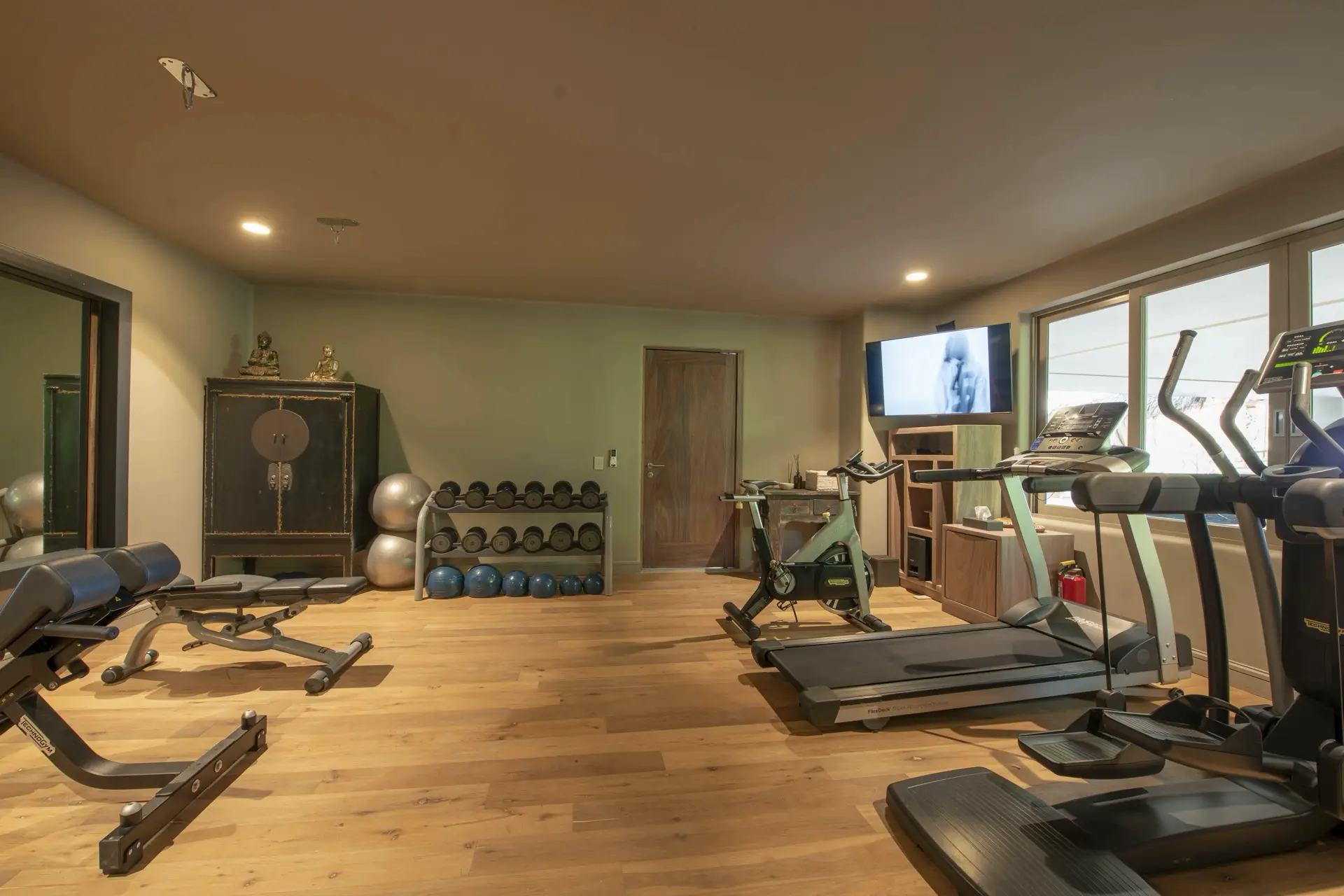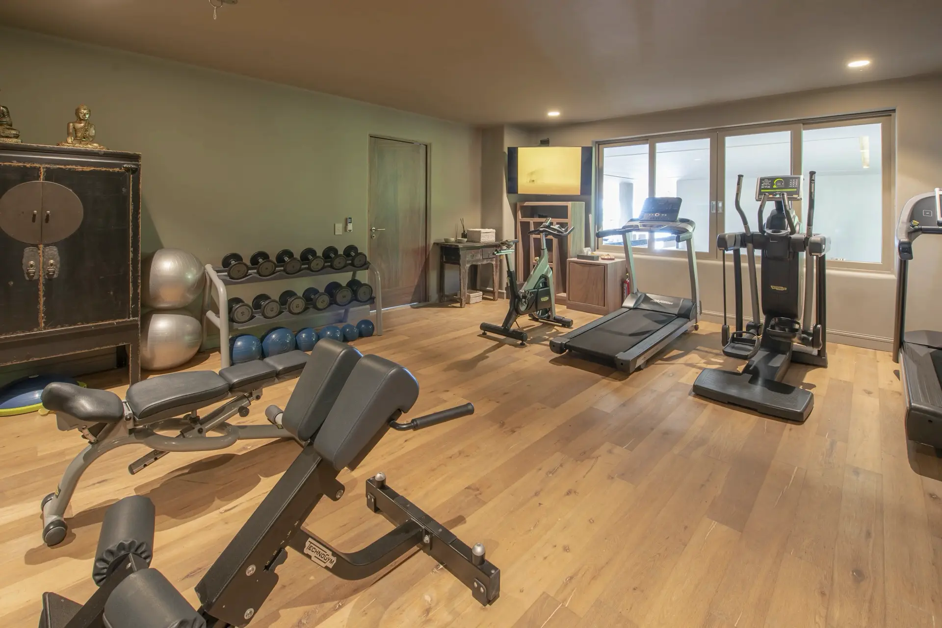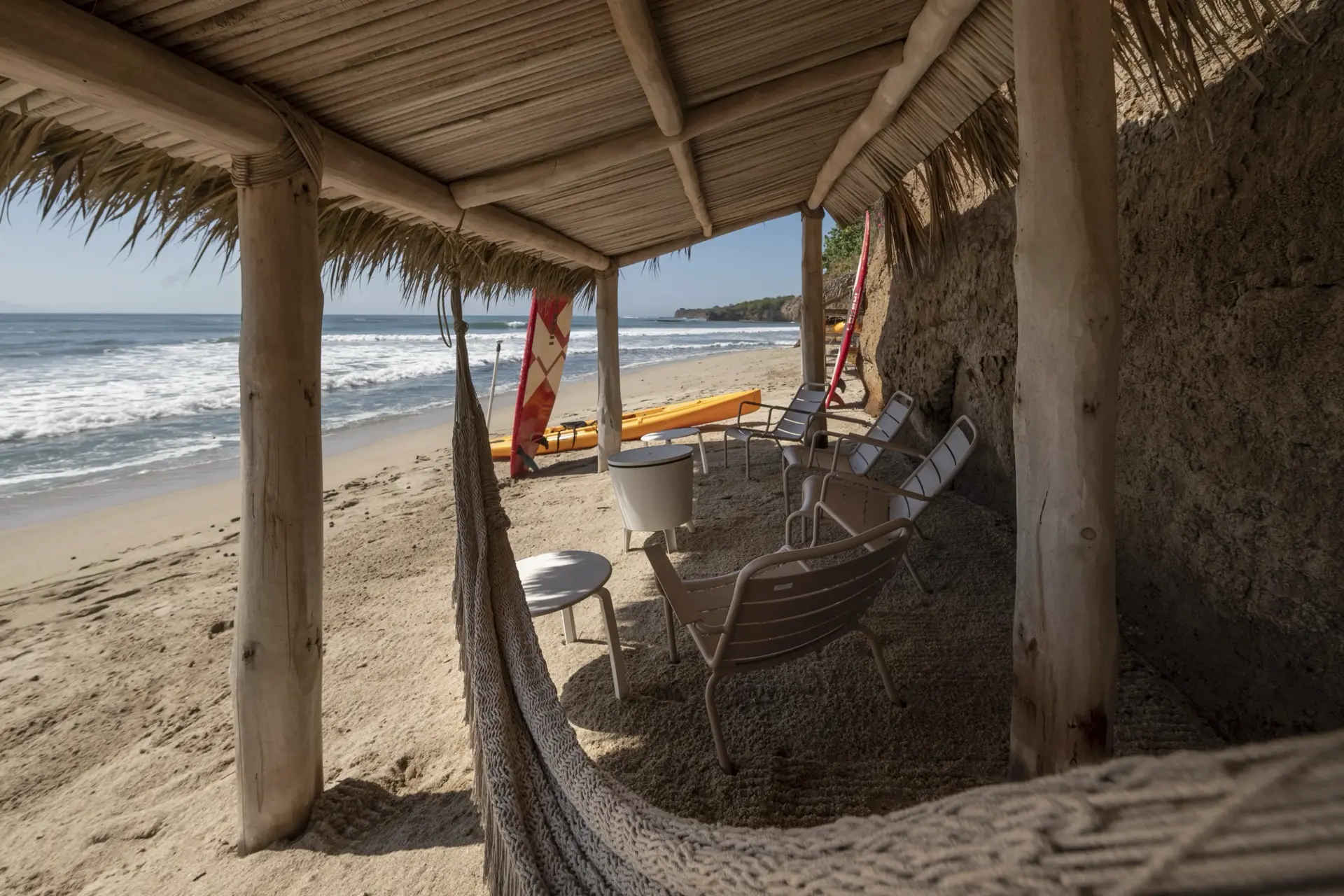 Casarena’s amenities are designed for both indulgence and intention. A sun-kissed pool anchors the outdoor living area, inviting long, lazy afternoons. A shaded palapa lounge with oversized sectionals and a long communal table sets the stage for sunset dinners, game nights, and lingering conversations under the stars. Guests can choose between a main indoor dining room and an ocean-view terrace for al fresco meals, while a fully equipped gym and a cozy TV room provide options for wellness and quiet downtime. With private beach access just steps away, the sound of the waves is a constant, soothing backdrop.