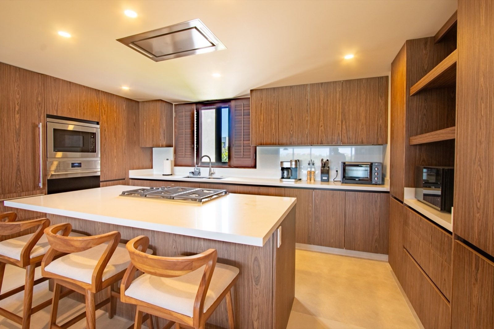 Condo El Encanto 821 is a beautifully appointed four-bedroom luxury residence within the exclusive El Encanto community at Punta Mita, offering stunning views of the Jack Nicklaus Signature golf course from its single-level, wheelchair-accessible layout. Meticulously curated by a renowned interior design studio, every detail of this residence exudes elegance and contemporary sophistication, from the carefully selected furnishings to the warm natural tones that echo the coastal landscape. The spacious open-plan living areas invite effortless entertaining, while expansive terraces, a private heated outdoor pool, and a BBQ grill create the perfect setting for sun-soaked afternoons and spectacular Riviera Nayarit sunsets.