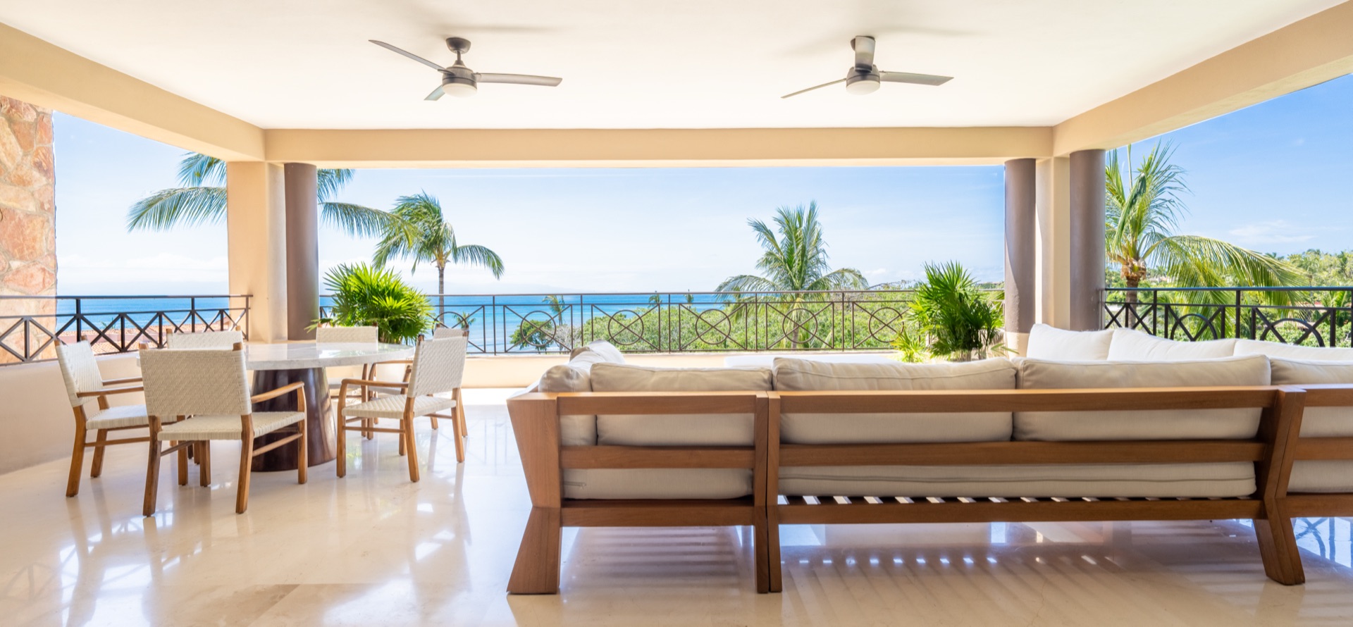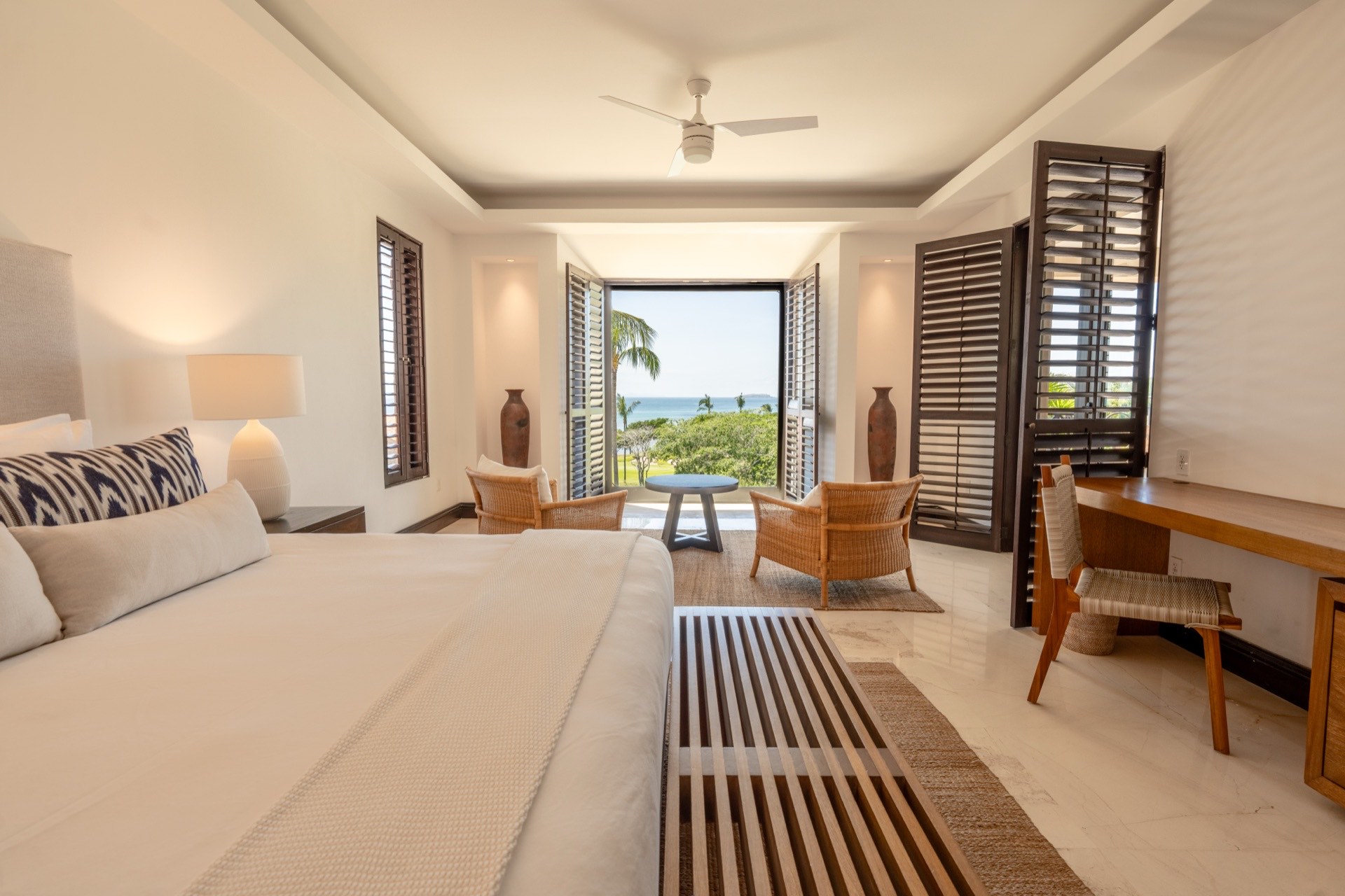 Condo Hacienda de Mita 705 is a refined three-bedroom oceanview residence set within the exclusive Hacienda de Mita enclave at Punta Mita, where relaxed sophistication meets panoramic Pacific Ocean views. Situated just steps from the sand and surrounded by world-class amenities, this residence delivers an experience of coastal living that is both refined and effortless. The open-concept interiors feature soft natural tones and carefully chosen finishes that reflect the tranquility of the Pacific coast, while wide sliding doors open the space to the tropical outdoors, creating a seamless flow between indoor and outdoor living that is ideal for slow mornings, al fresco dinners, and everything in between.