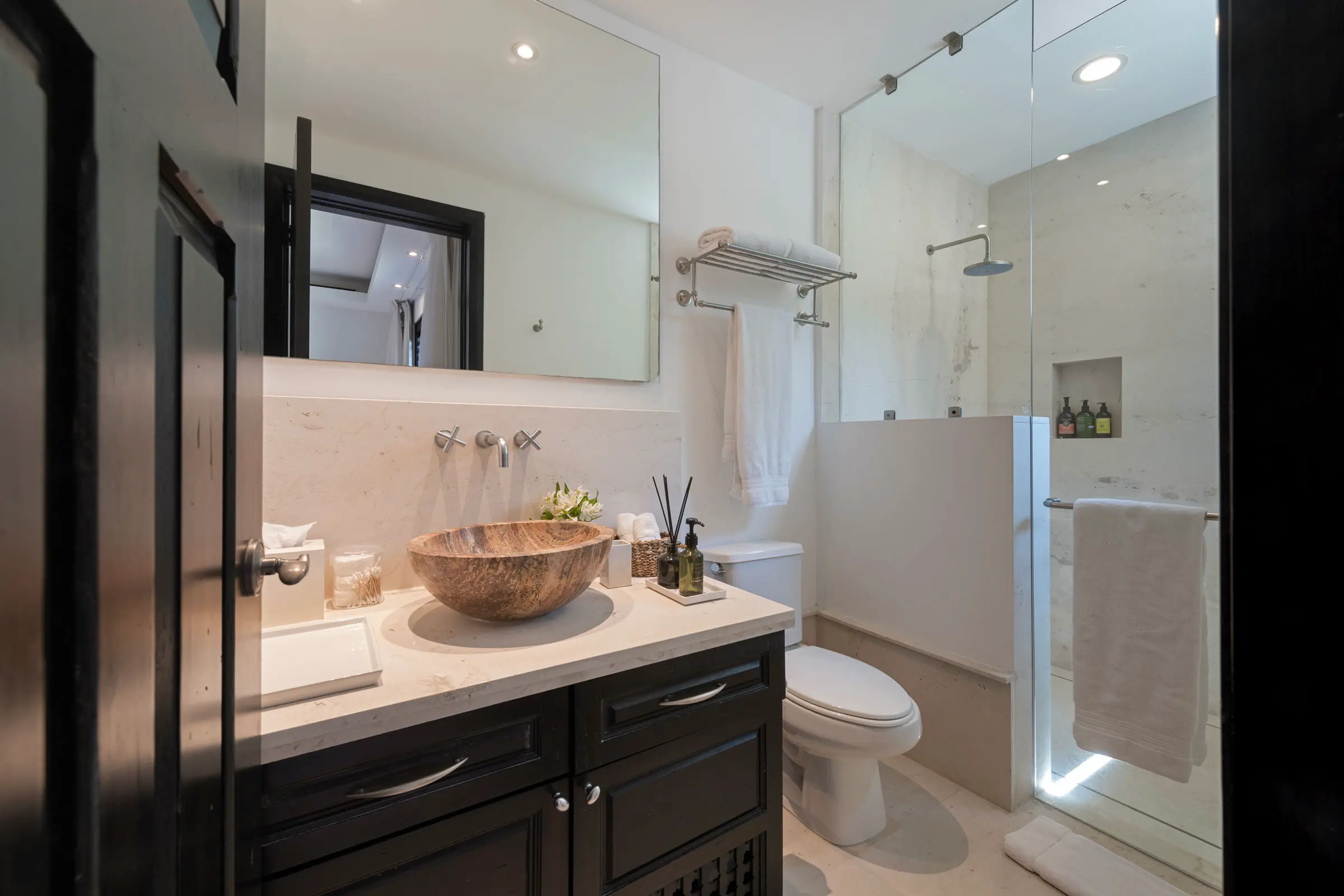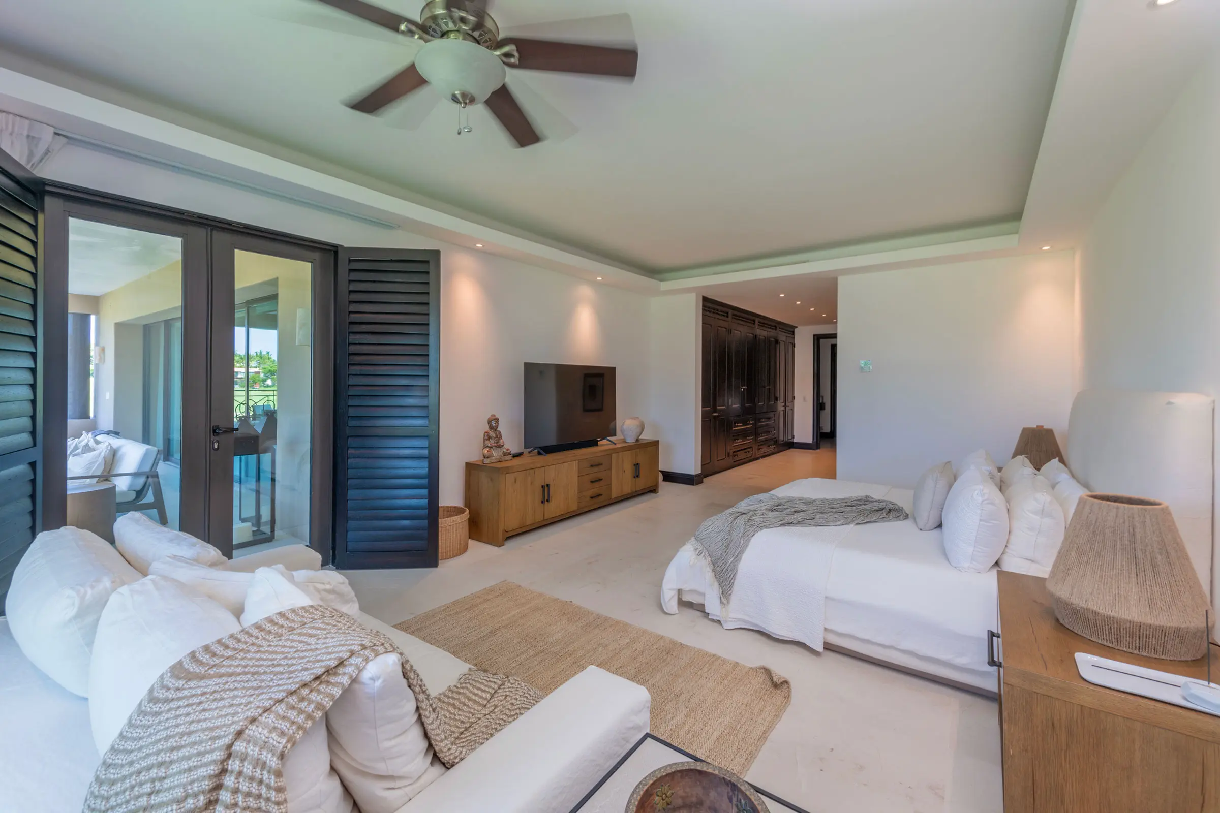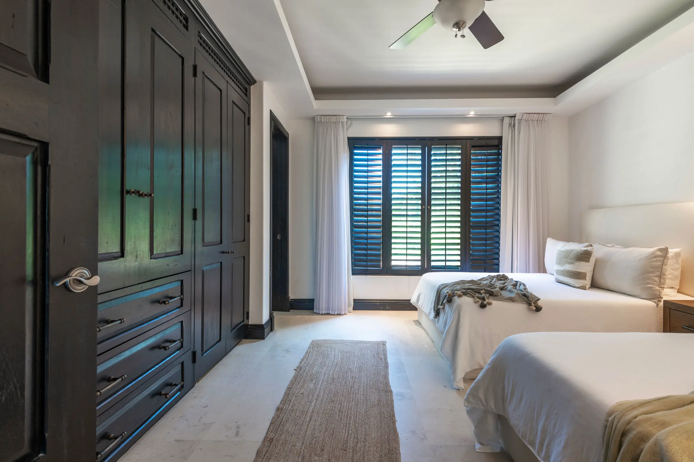 Each of HDM 903’s four bedrooms is thoughtfully designed for restful slumber and morning light. The two master suites feature plush king-size beds, spa-inspired en-suite bathrooms, and tranquil views of Punta Mita’s tropical landscape. A third bedroom with double queen beds ensures space and comfort for families or friends, while the bunk-bed room offers flexible options for younger guests or a nanny’s quarters.
