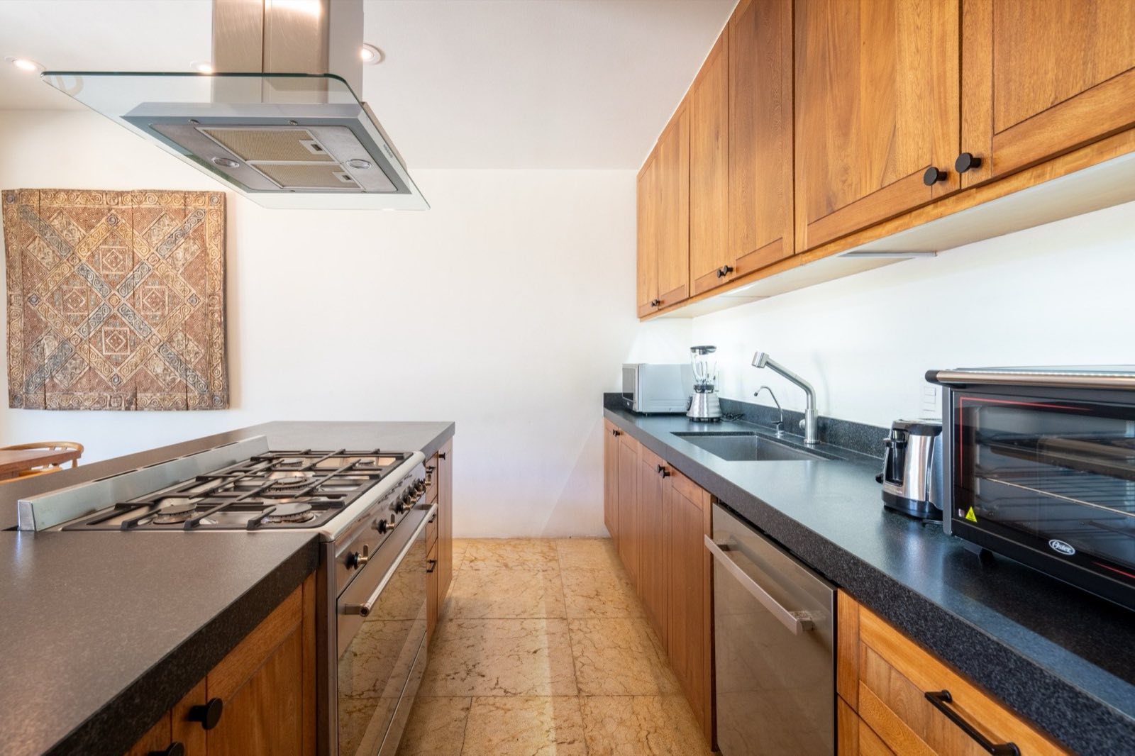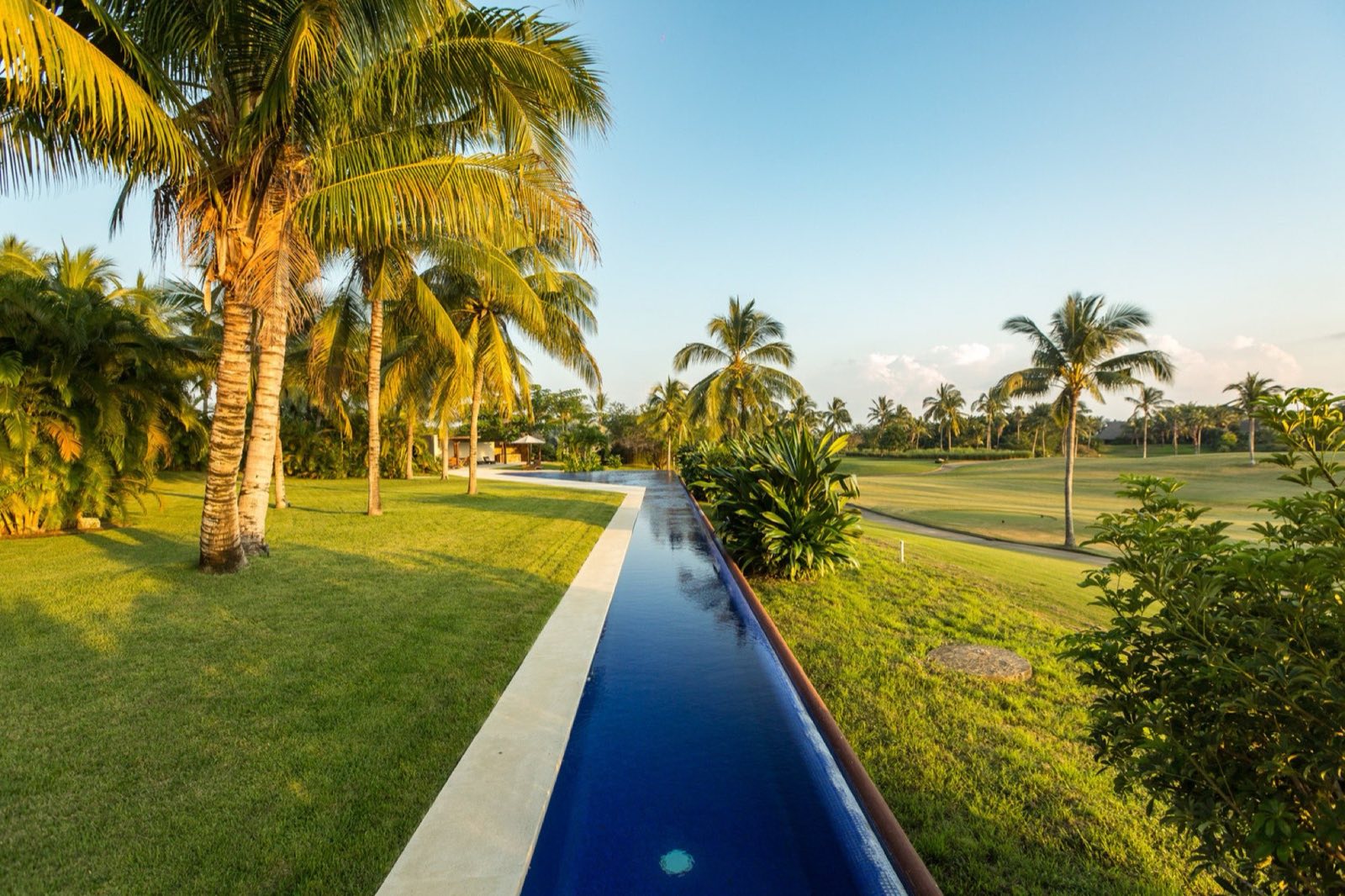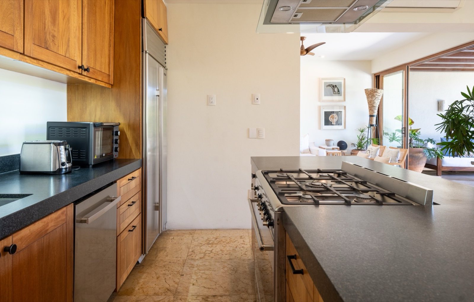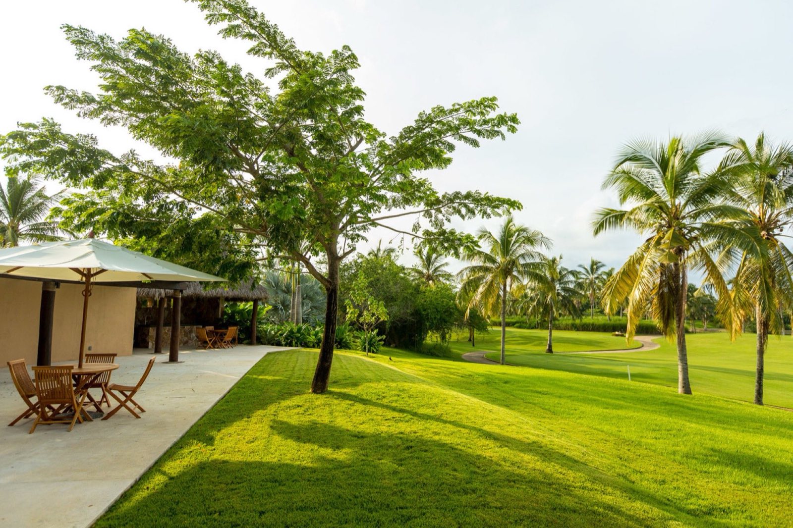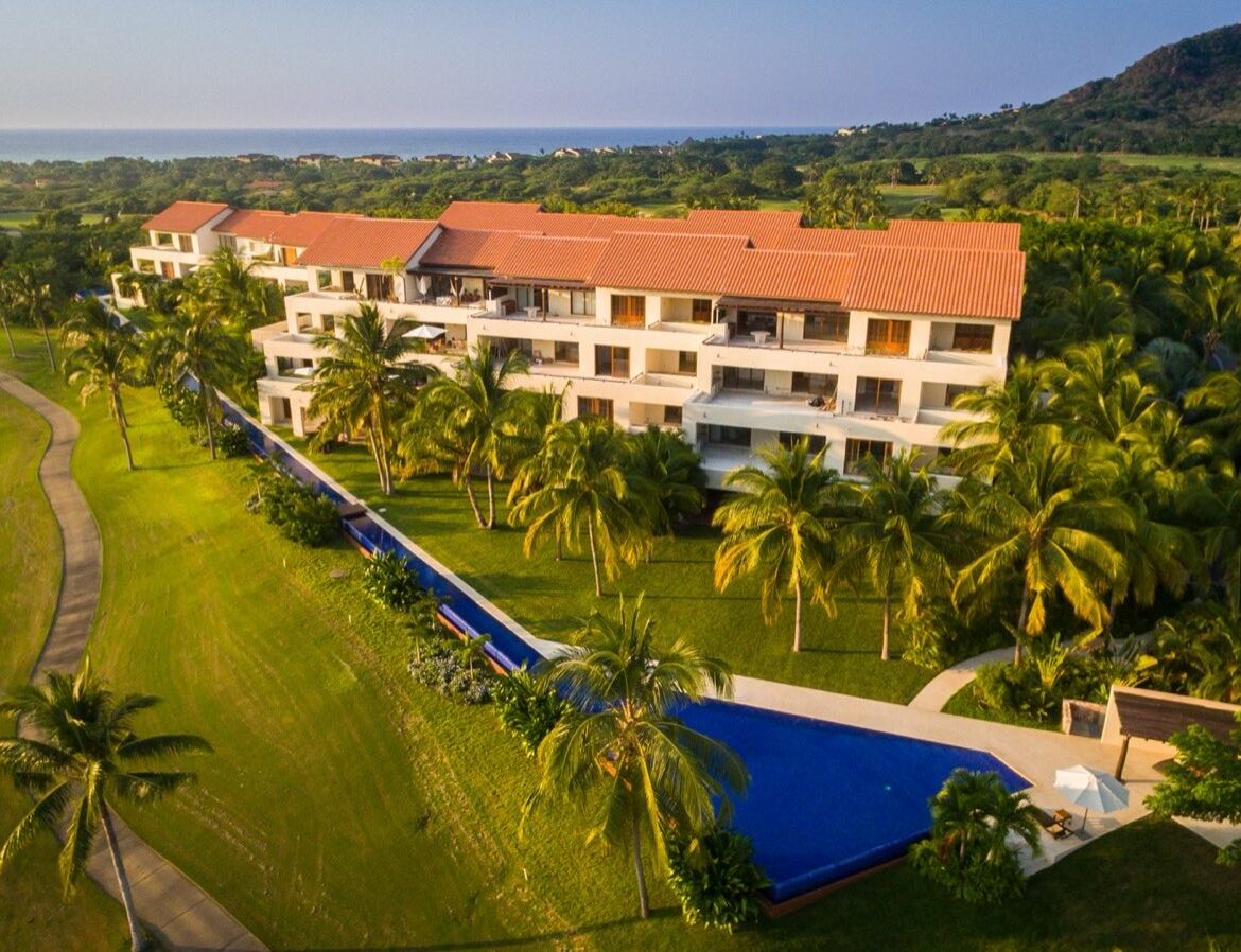 The residence is crafted to balance luxury and comfort at every turn. A gourmet kitchen invites home-cooked meals, while the private terrace features a built-in grill and sink bar, perfect for outdoor dining and sunset cocktails with the golf greens stretching below. From nearly every corner, guests enjoy treetop panoramas, lush fairways, and glimpses of the Pacific beyond. The unit is equipped with air conditioning, WiFi, satellite TV, and daily housekeeping, and two on-site community pools connected by a one-hundred-sixty-meter canal provide an extraordinary aquatic experience just steps from the front door.