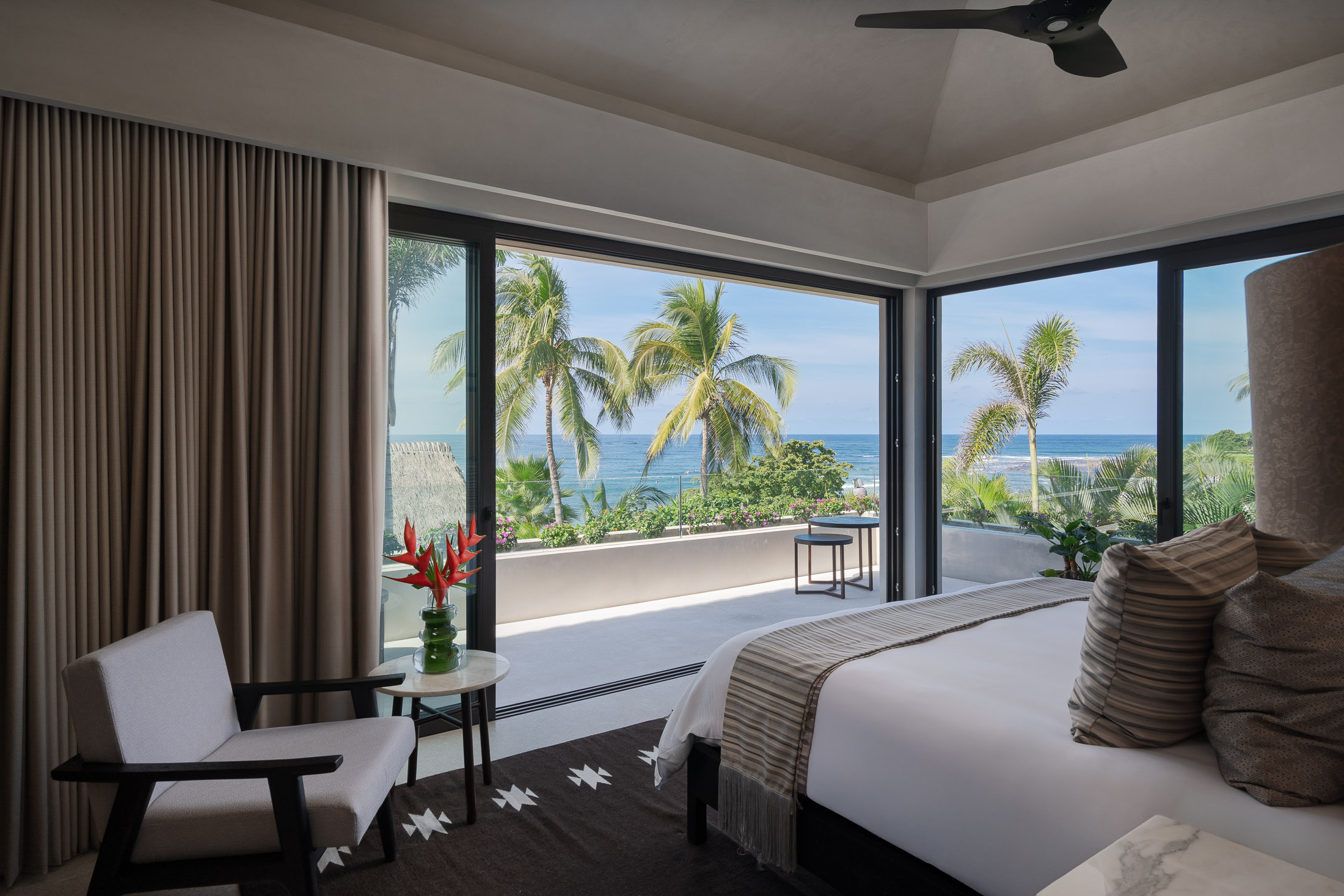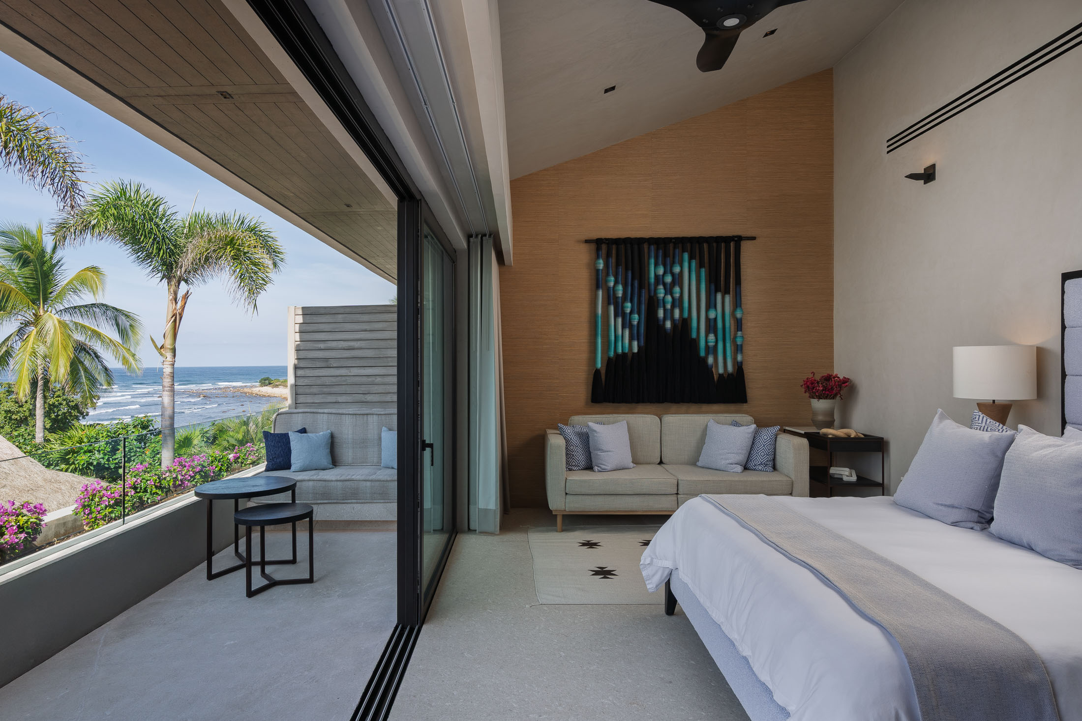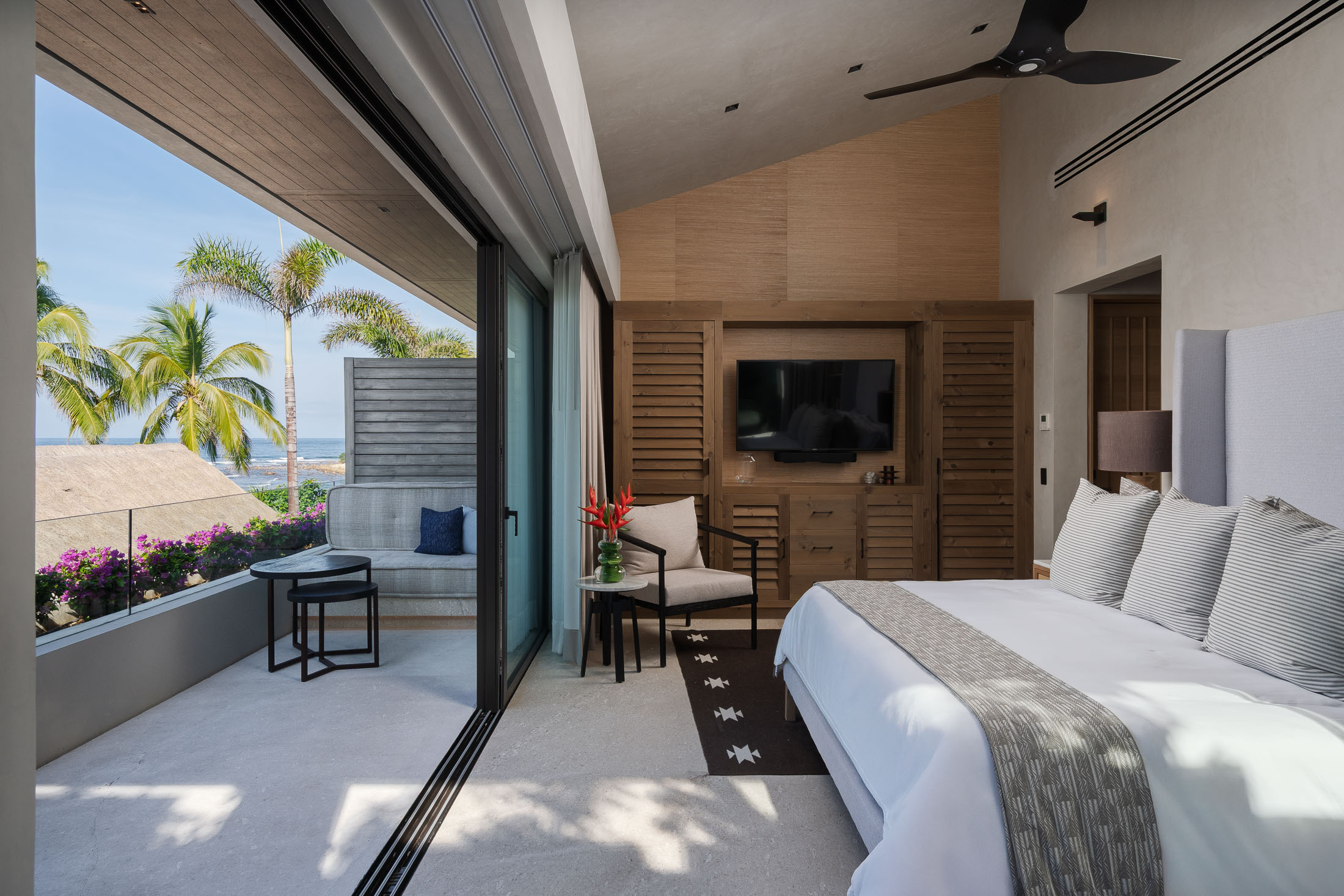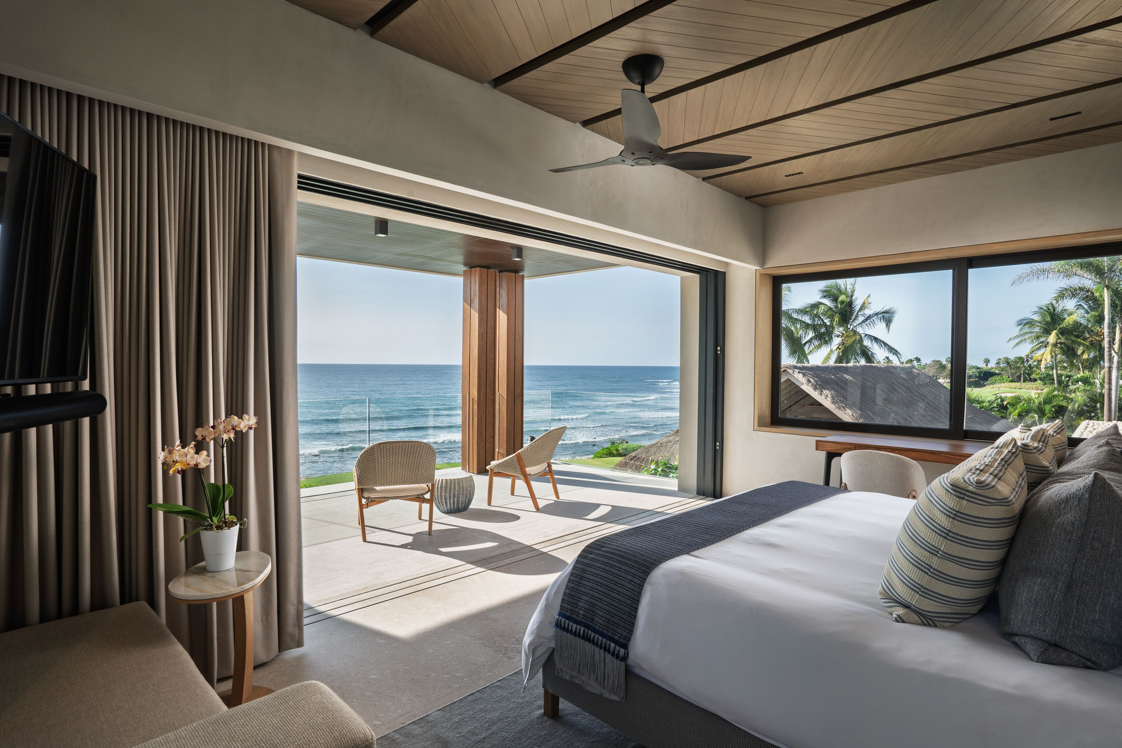 King-size bed with ensuite bathroom, air conditioning, ocean views, and premium finishes throughout