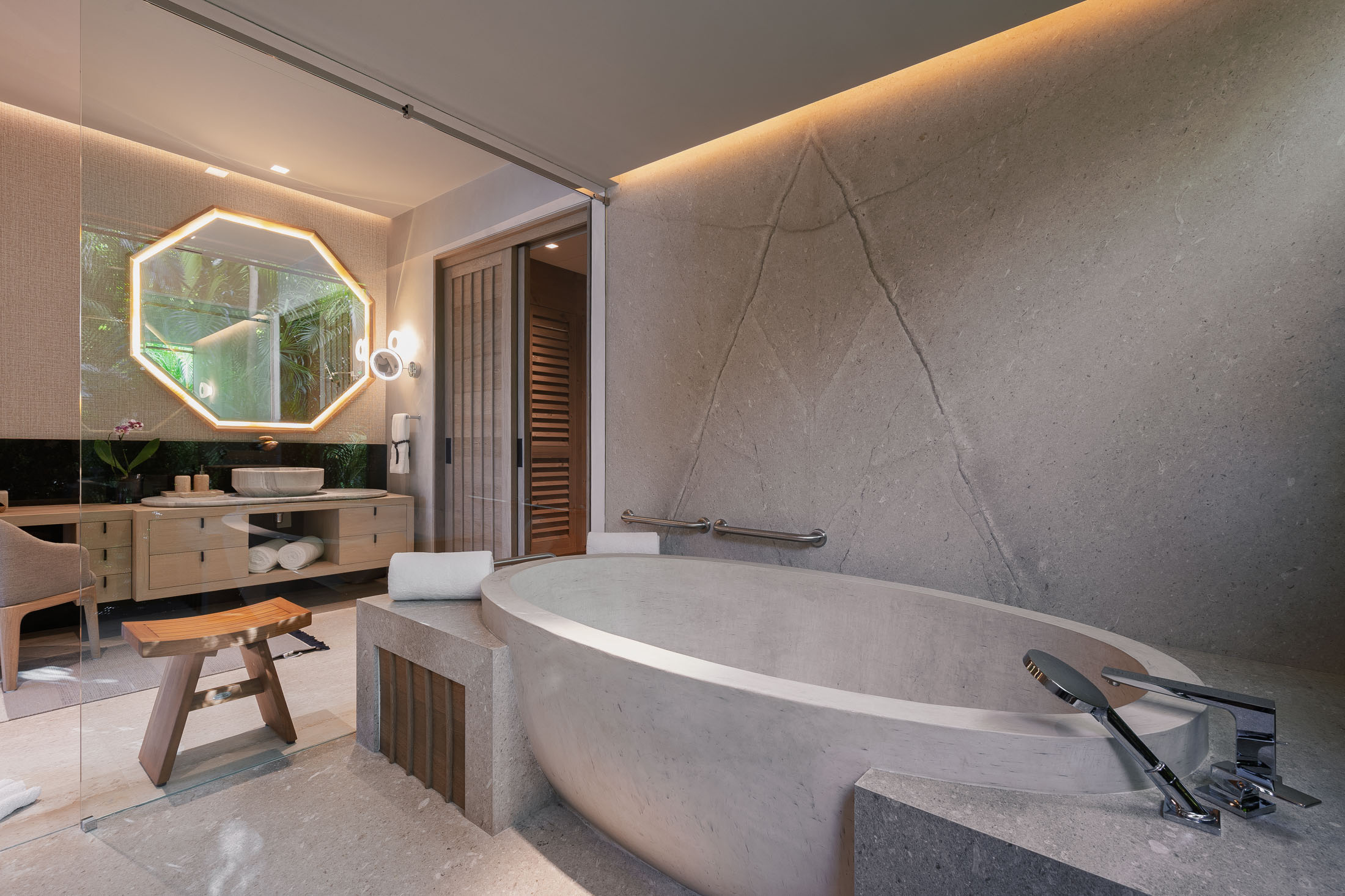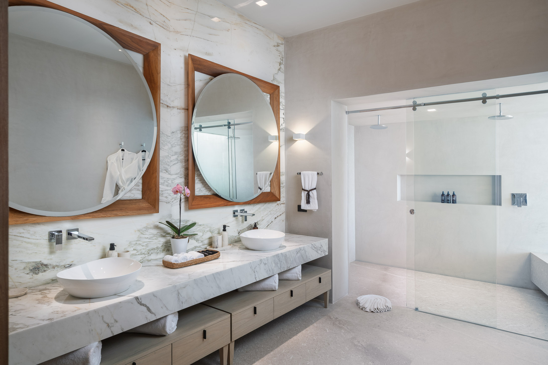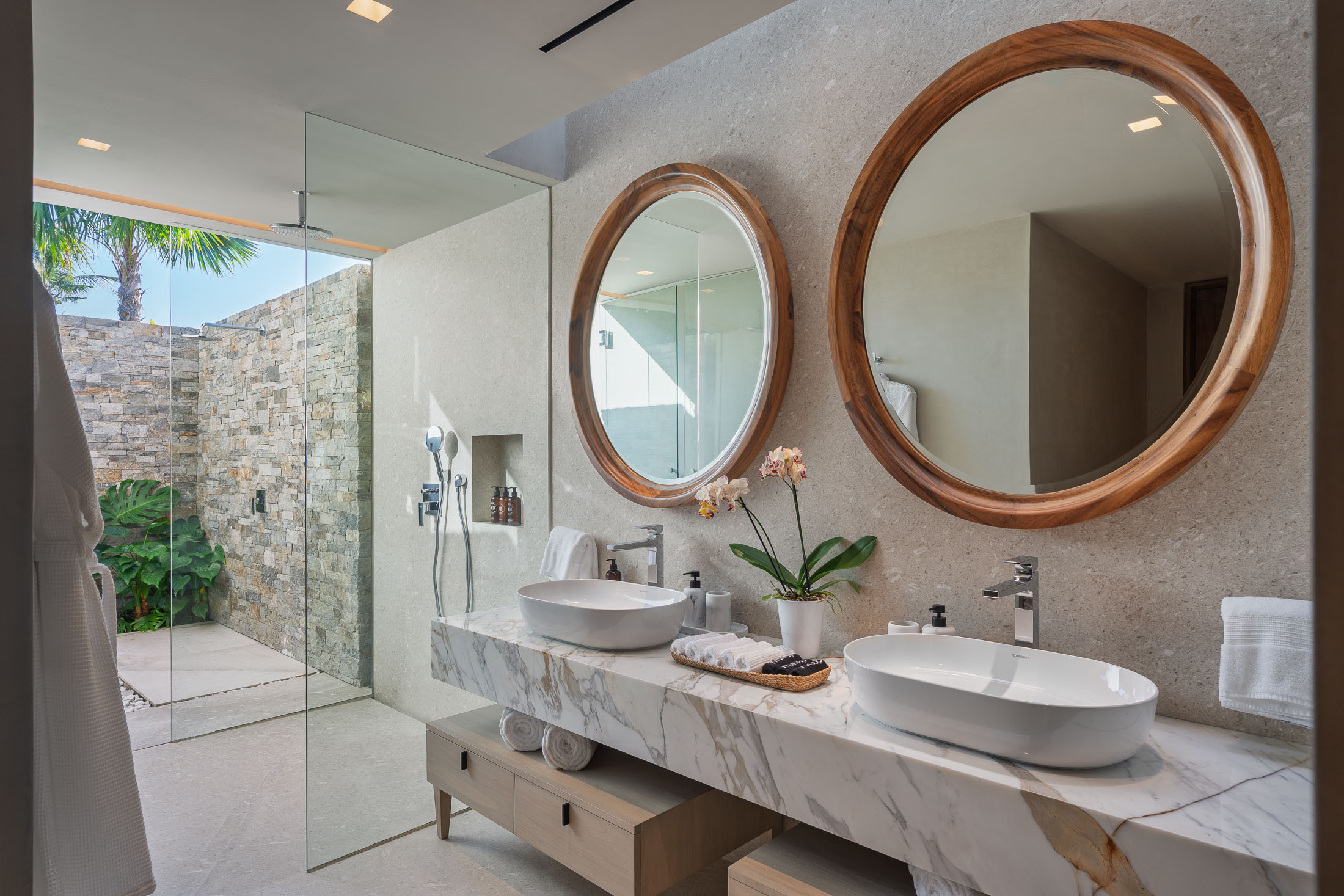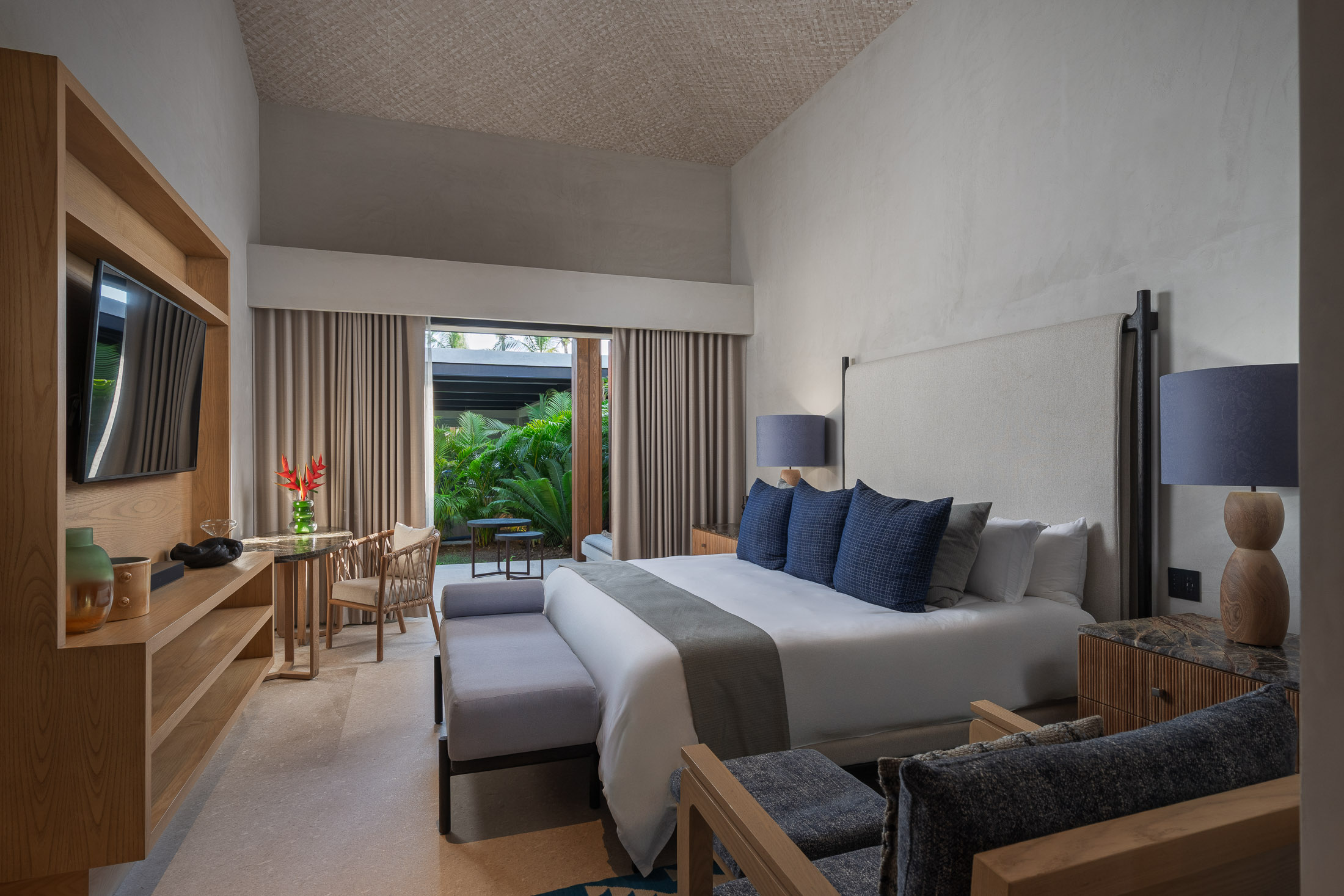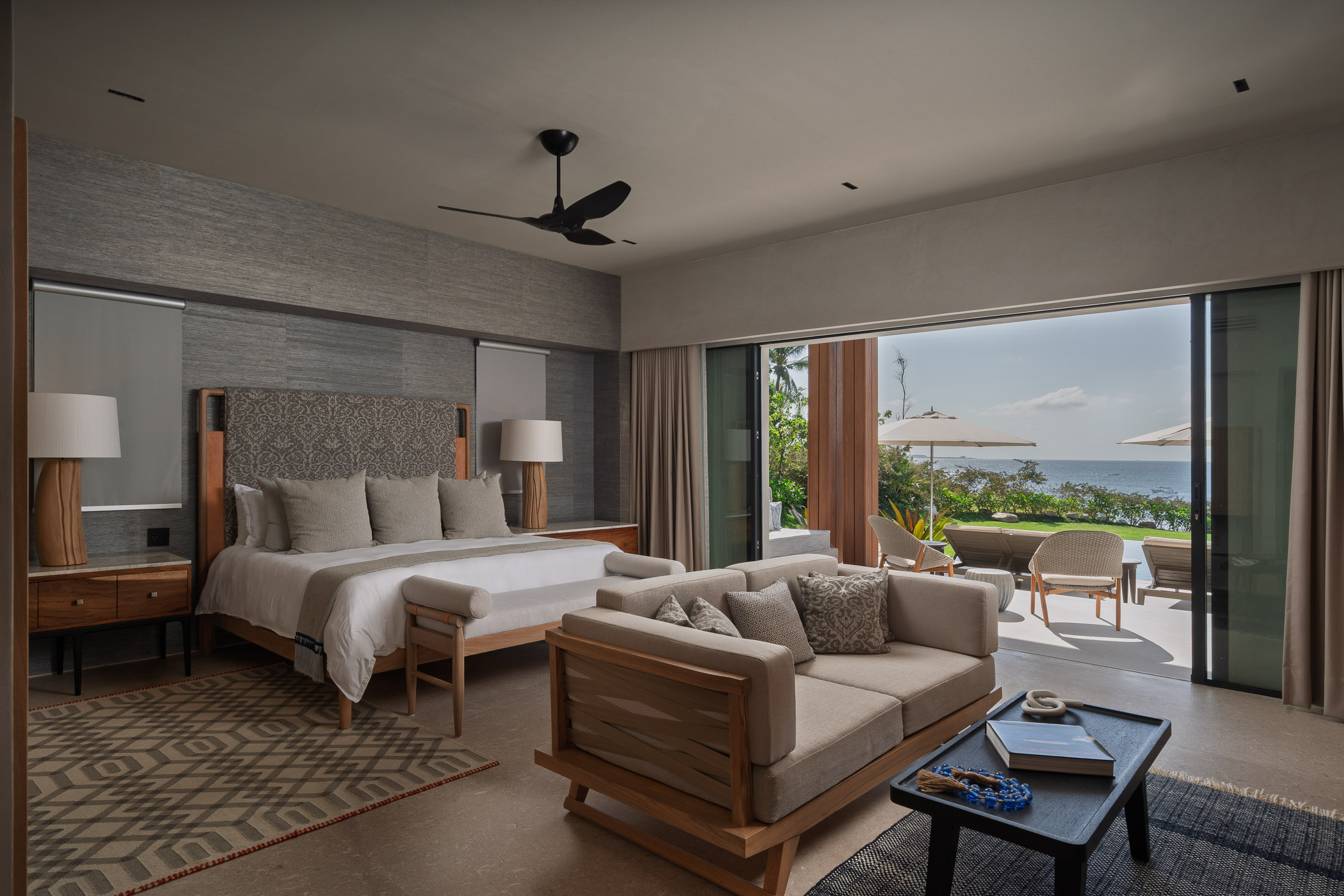 King-size bed with ensuite bathroom, air conditioning, ocean views, and premium finishes throughout