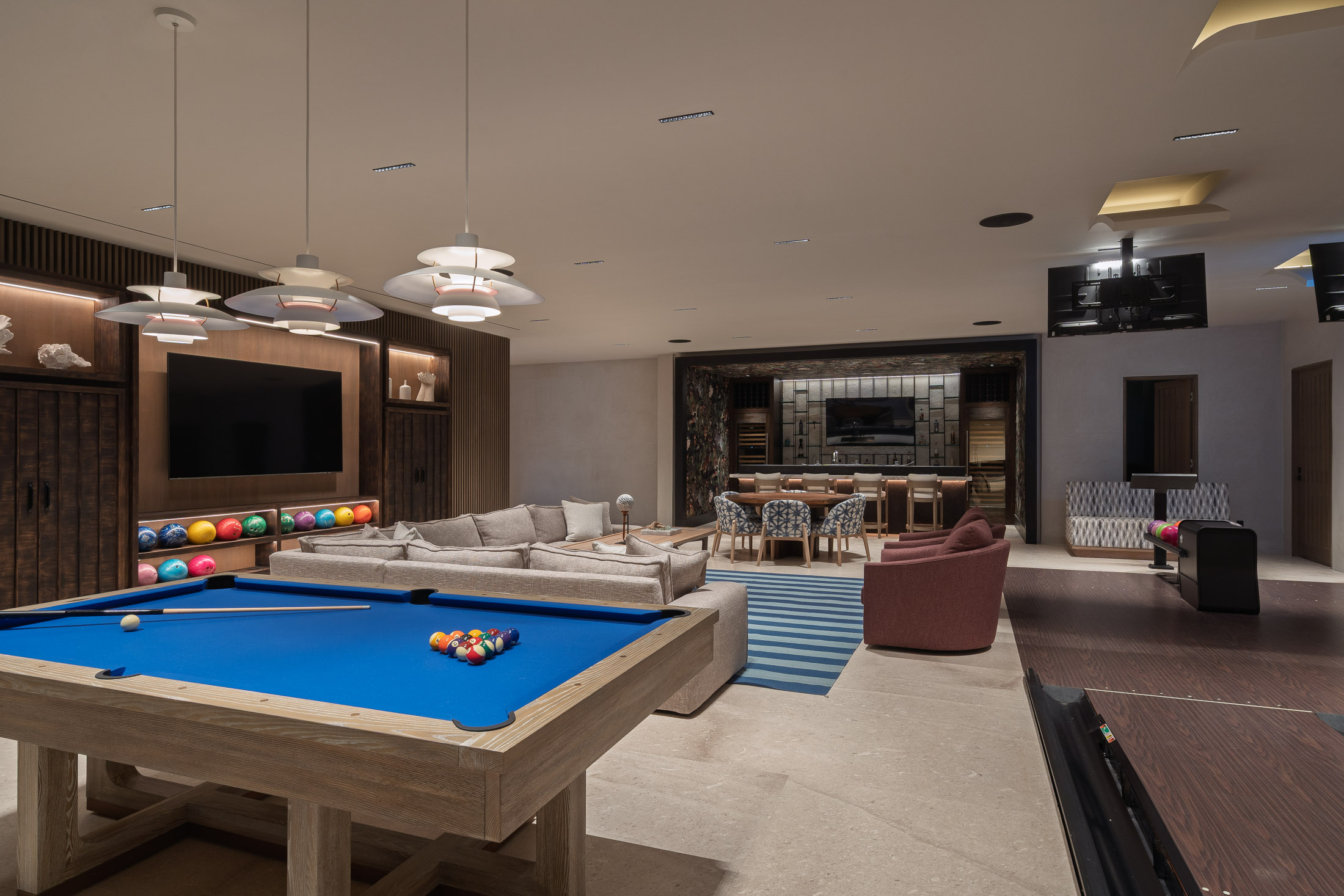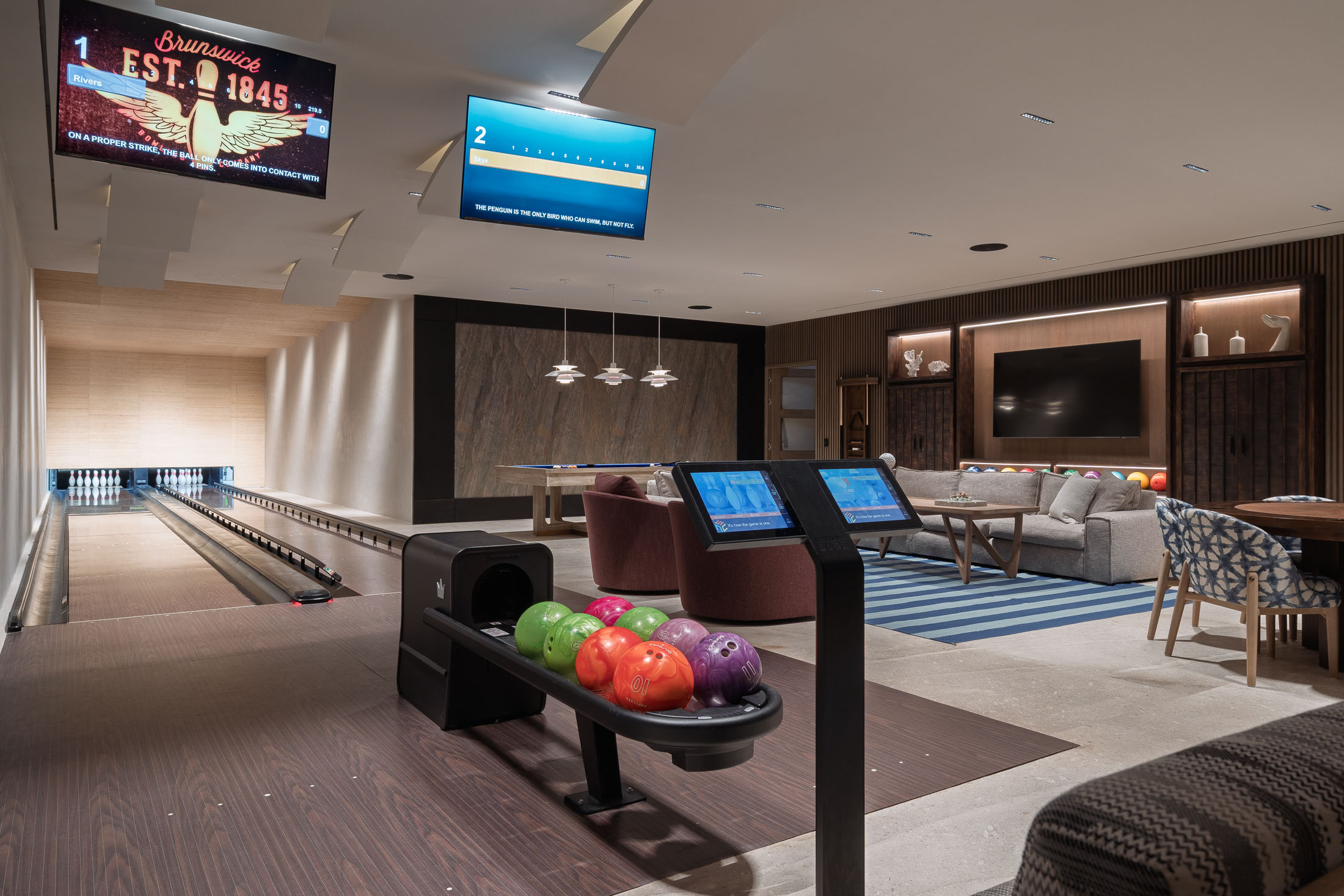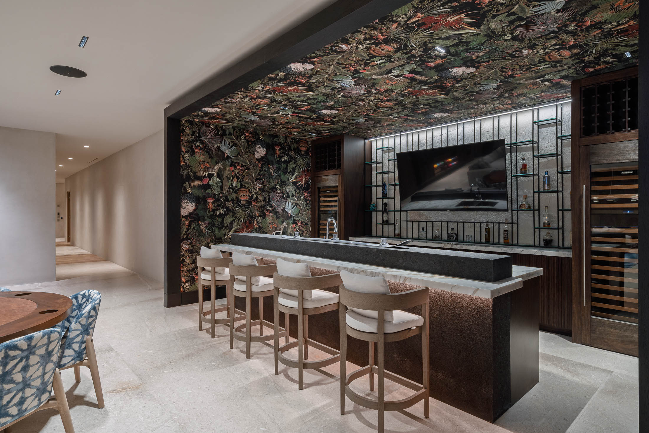 The entertainment and wellness offerings at Estate de Elementos rival those of a private resort. A private bowling alley and a dedicated theater bring world-class recreation into the comfort of home. The media room features a professional pool table, card tables for board games, a full bar with television, and two temperature-controlled wine cellars stocked for the most discerning palates. A private gym and spa provide a complete wellness retreat, while a putting green keeps golfers sharp between rounds on the championship courses.