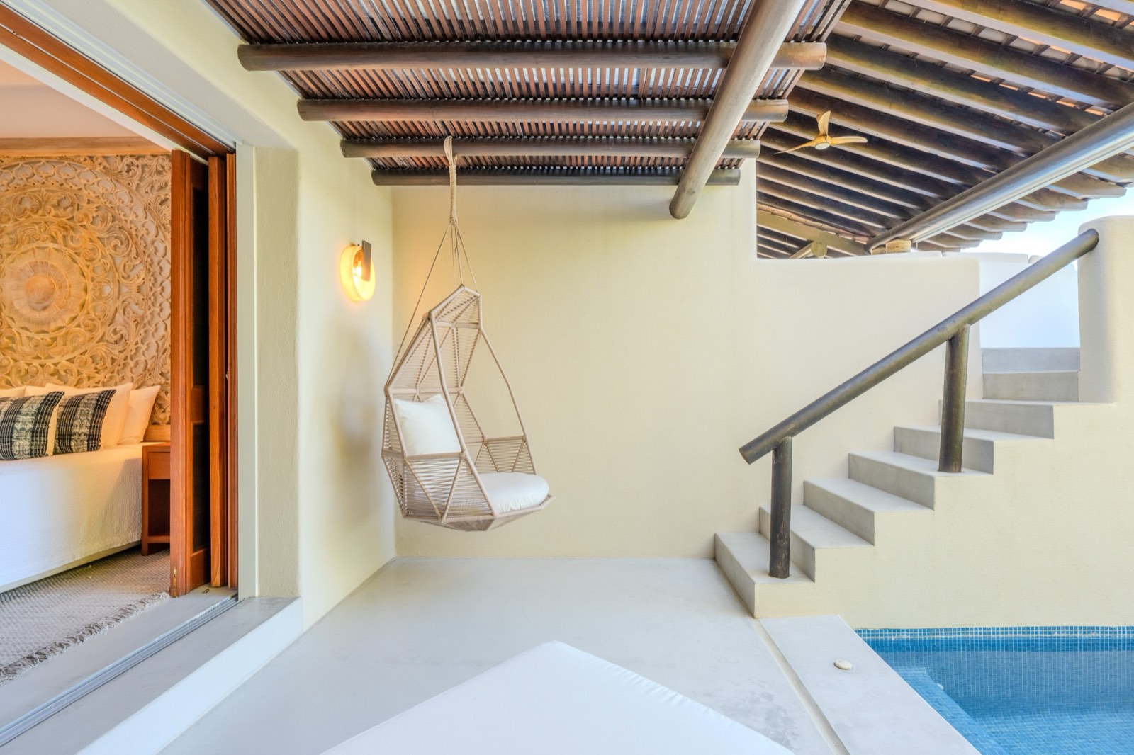 King bed, private terrace with hammock, secondary terrace with plunge pool, desk, sofa, TV, large bathroom with double vanity and shower, walk-in closet