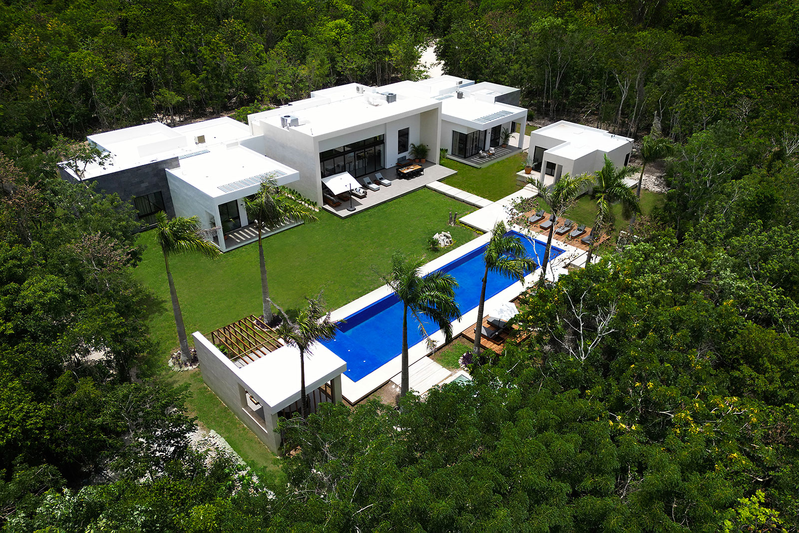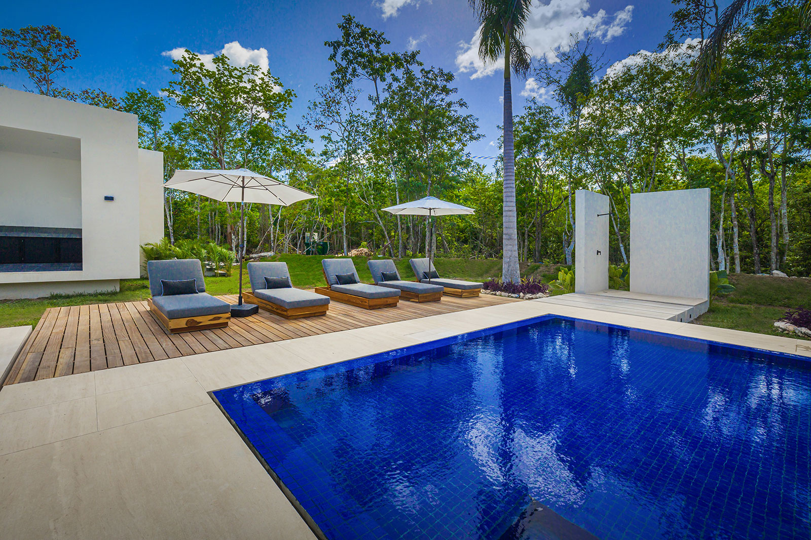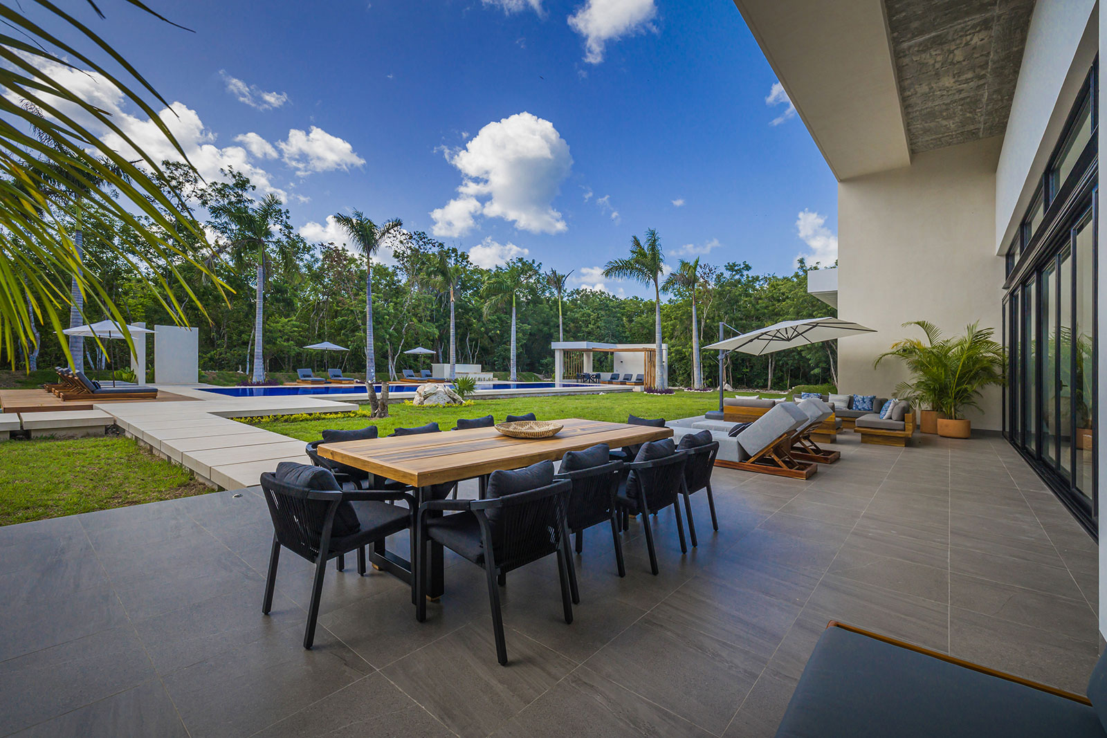 The villa is set against a backdrop of mangrove forest, creating a natural buffer that emphasizes privacy and quiet. This lush environment reinforces the region’s jungle character, offering a feeling of seclusion while keeping you closely connected to the landscape. Outdoor areas are arranged to make the most of this setting, with open-air lounging and recreation framed by greenery and sky.
