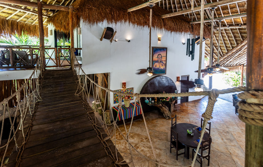 Couples only — Papa Jack is one bedroom, one hammock, one terrace facing the sea. We biked to restaurants and cenotes. Cook brought breakfast to the palapa each morning. The simplicity is the luxury. Geckos, birdsong, salt air. WiFi barely works and that was ideal.