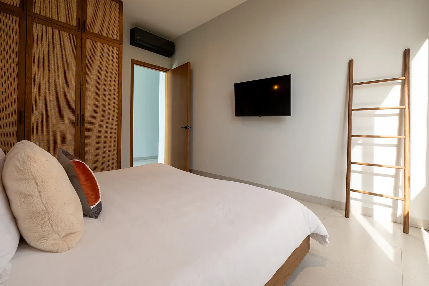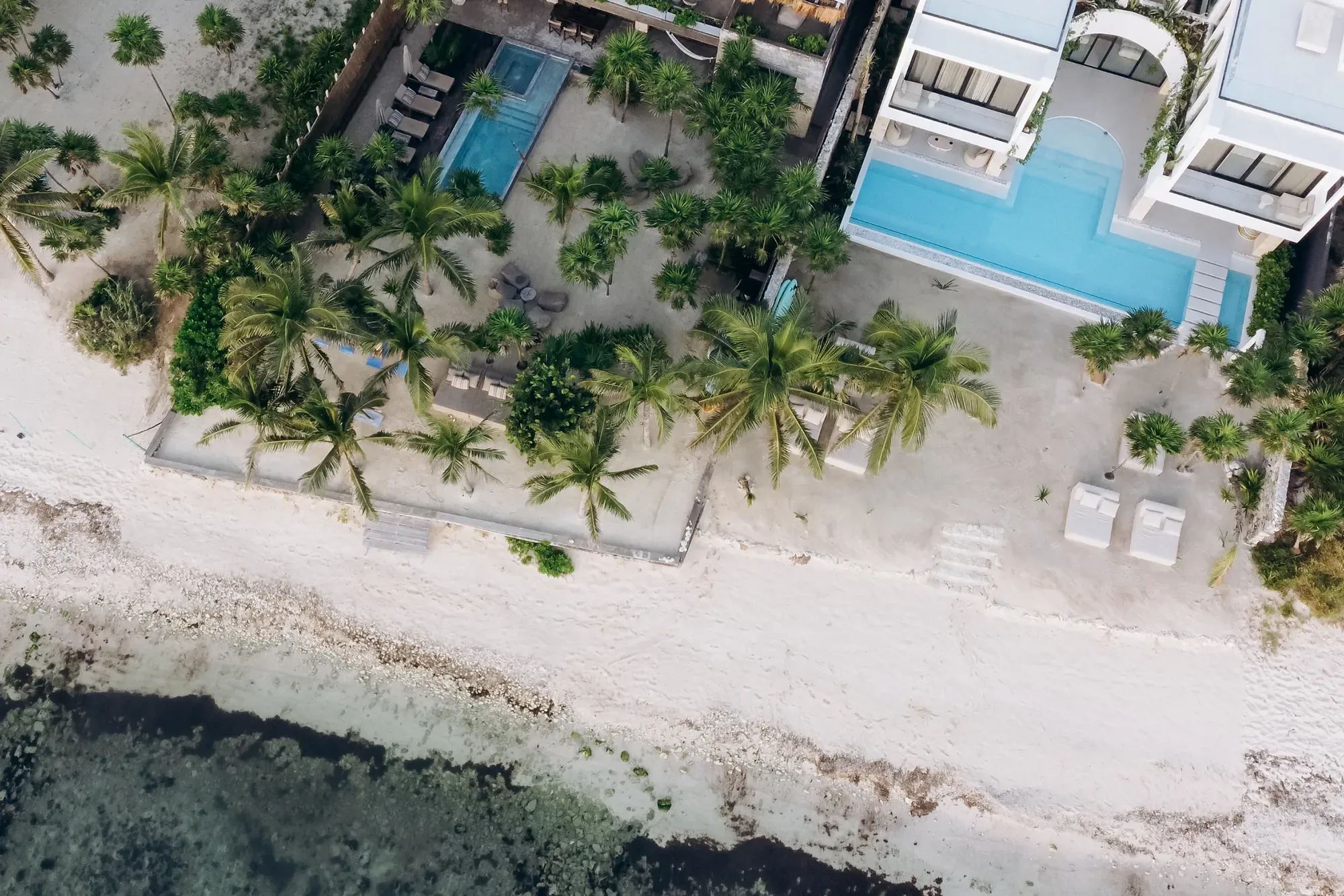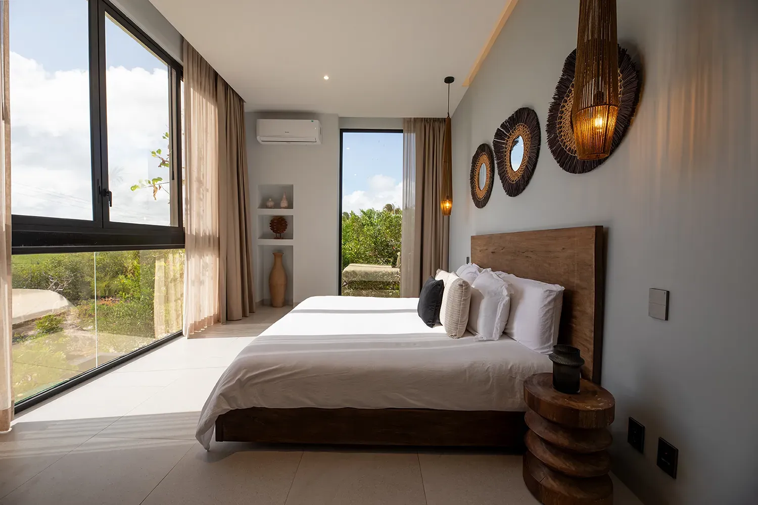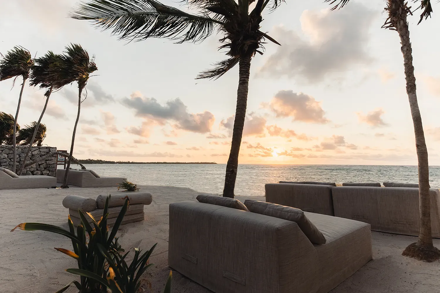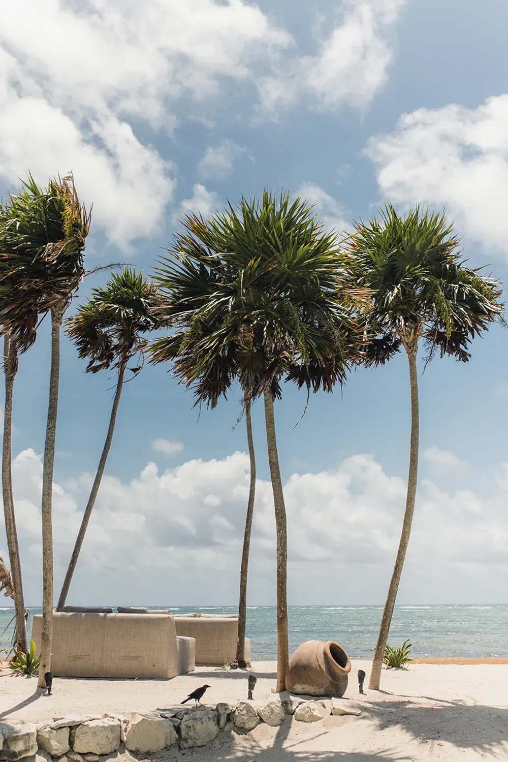 Soliman Bay’s reef-sheltered cove keeps the water consistently calm, clear, and seaweed-free year-round. The gated bay community maintains 24/7 security at the entrance. Tulum town is 14 km, approximately 20 minutes. Playa del Carmen is 42 km (40 minutes). Cancún International Airport (CUN) is 111 km, approximately 90 minutes. Tulum International Airport (TQO) is 52 km, approximately 55 minutes. Studio 54 books quickly across all seasons — contact us to confirm availability. Kayaks are stored beachside and available for reef exploration at any time.