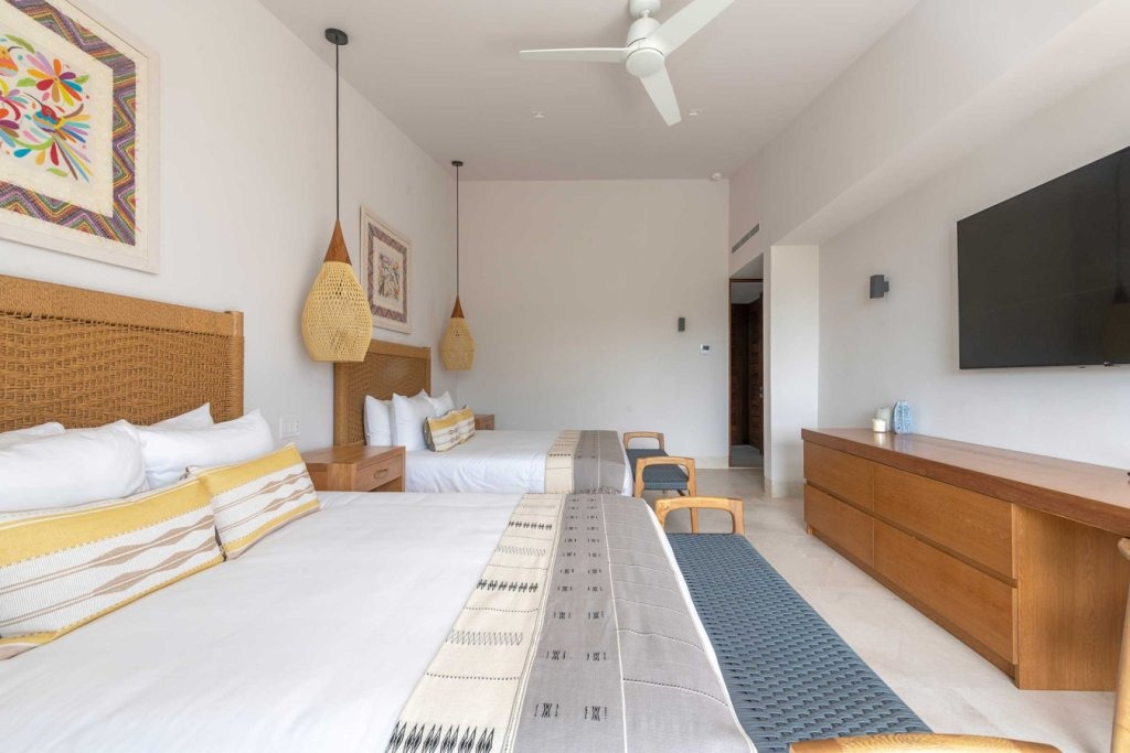 Villa Amistad comes with a Premier Golf Membership at Club Punta Mita, granting access to five beach clubs including Pacifico, Kupuri, Sufi Ocean Club, Surf Club, and St. Regis, along with preferential tee times on the Pacifico and Bahia championship courses and special green fee rates at the Greg Norman Higuera Golf Course. Guests also enjoy tennis, pickleball, and paddle courts, a fully equipped gym, Kupuri’s pilates studio and kids club, jogging paths, surf breaks, and Punta Mita pier access. A six-passenger golf cart, daily housekeeping, dedicated breakfast cook, and personalized concierge round out an all-inclusive luxury experience.