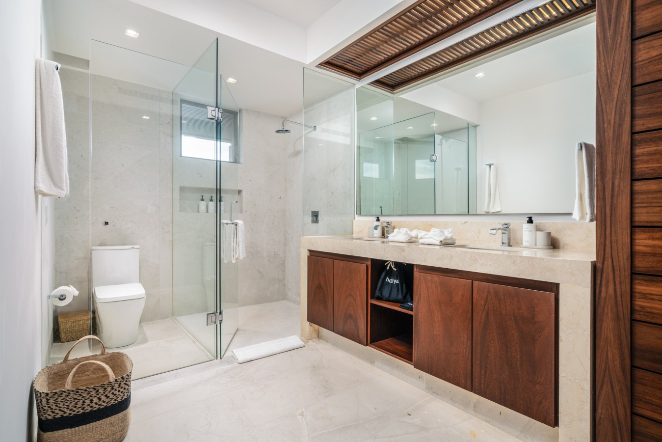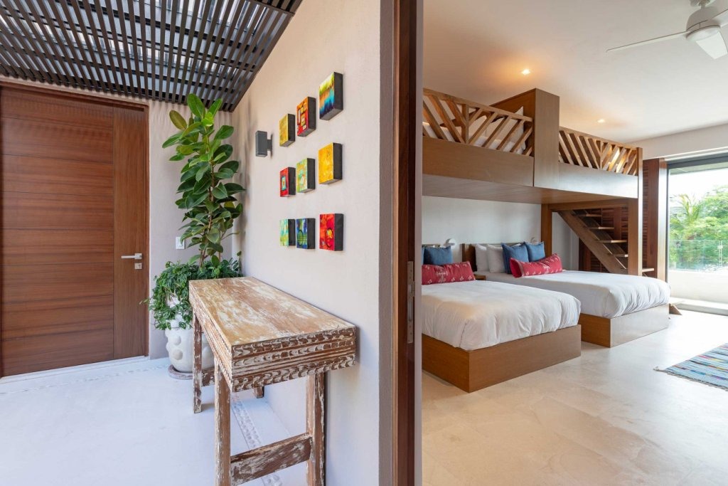 Accommodating up to twelve guests across four beautifully appointed bedroom suites, Villa Amistad is ideal for families, milestone celebrations, or groups of friends seeking a luxury getaway. The two master suites each feature king-size beds and ensuite bathrooms, while the third bedroom offers two queen beds and the fourth is a fun, versatile kids’ room with queen-over-full bunk beds. Every bedroom enjoys ensuite bathroom access, air conditioning, ceiling fans, and smart TVs with high-speed Wi-Fi throughout.