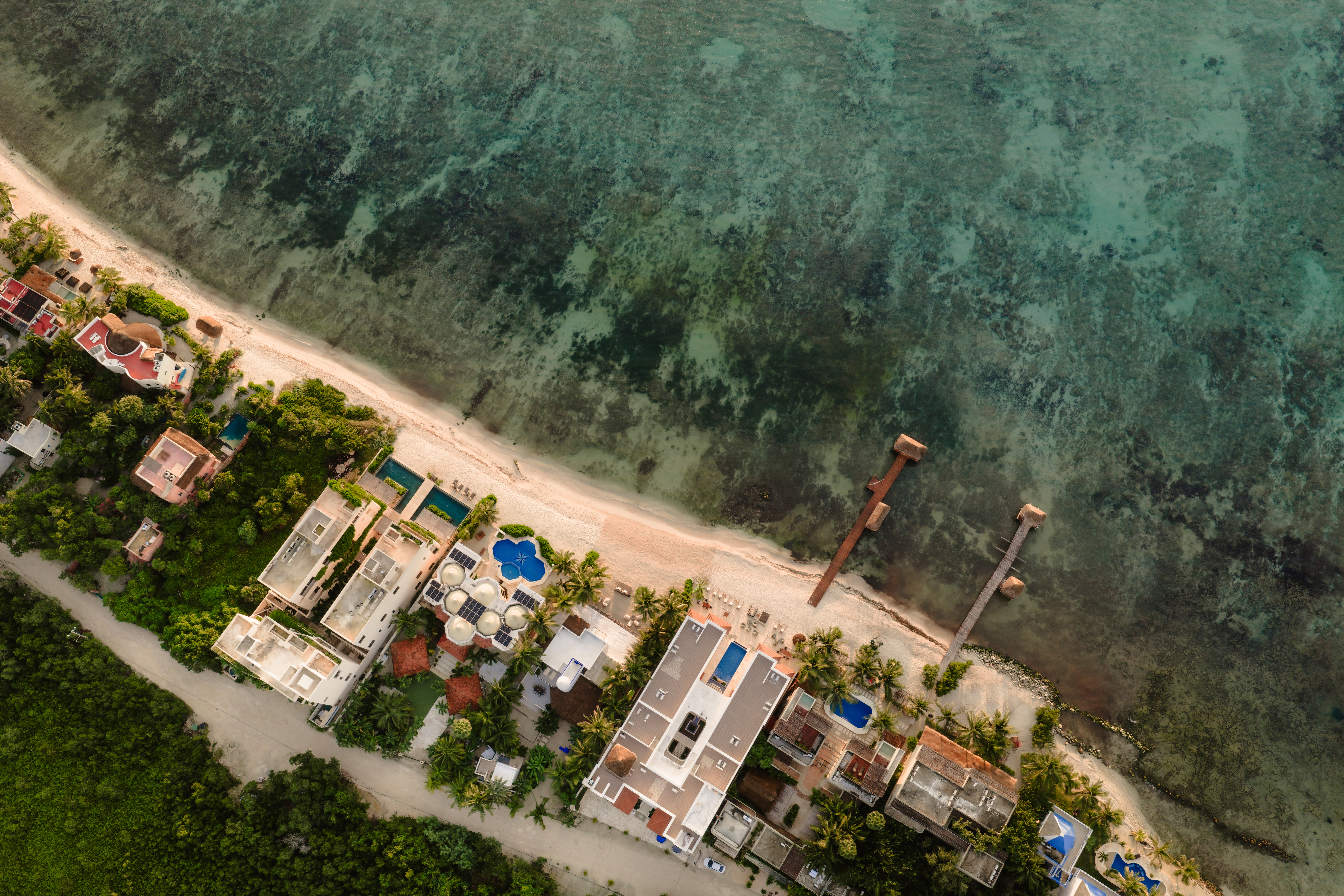 Tankah Bay is a quieter, less visited stretch of the Riviera Maya coastline south of Soliman Bay, with a natural cenote system running directly to the sea. Tulum town is approximately 10 km (15 minutes). Cancún International Airport (CUN) is 125 km, approximately 100 minutes. Tulum International Airport (TQO) is 40 km, approximately 45 minutes.