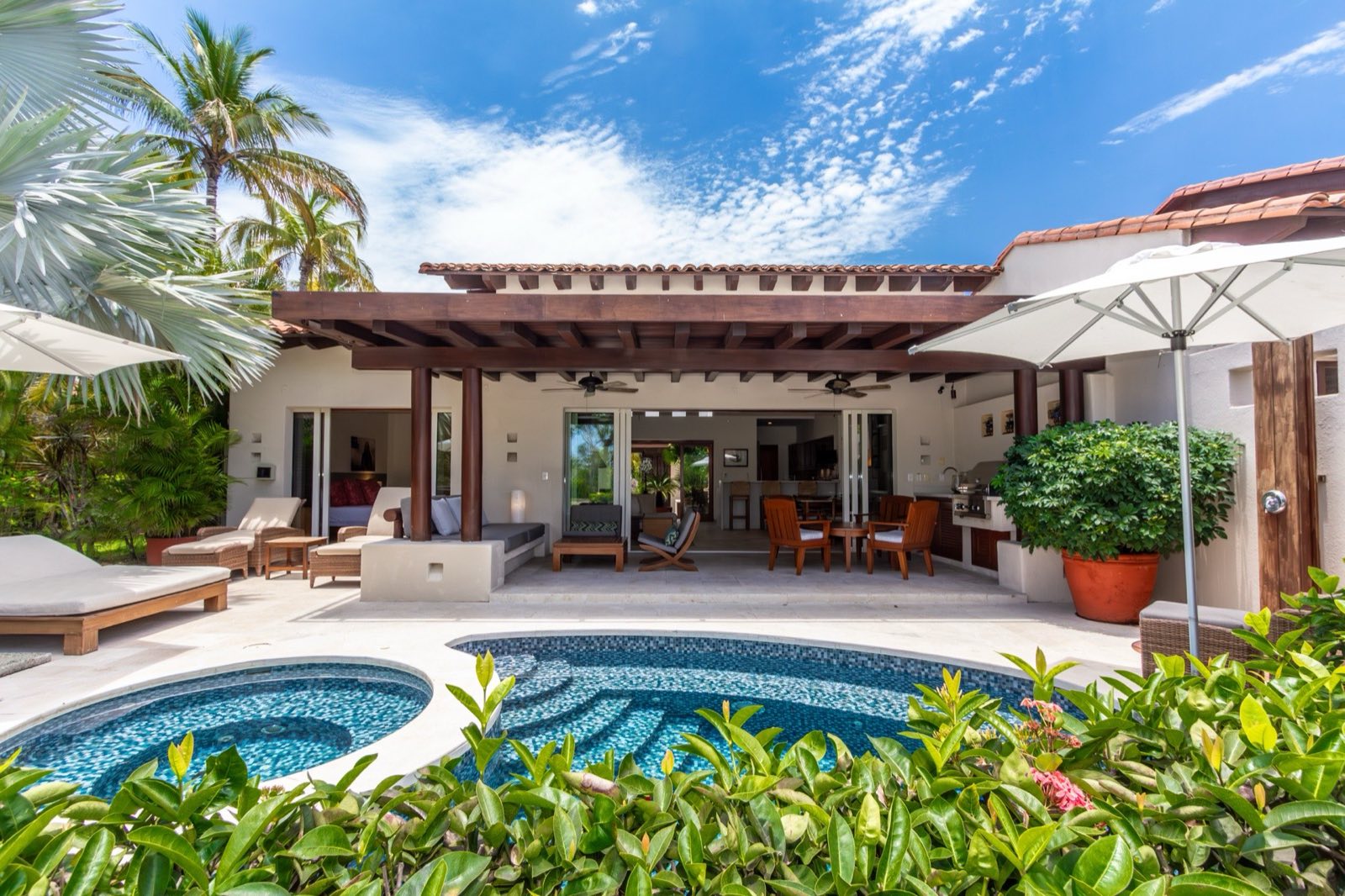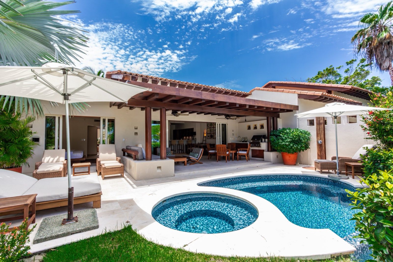 Las Palmas sits at the heart of Punta Mita’s fifteen-hundred-acre gated peninsula, nestled between the Four Seasons and St. Regis resorts. The community embodies Punta Mita’s open-air lifestyle, with single-level villas set along the fairways of the championship Pacífico Golf Course. Whether your days begin with a sunrise round of golf, a surf session at La Lancha, or a leisurely breakfast on the terrace before heading to the beach club, Villa Cazadores delivers an authentic and unforgettable Punta Mita retreat with its plunge pool, jacuzzi, Viking grill, marble interiors, outdoor shower, and championship golf views.