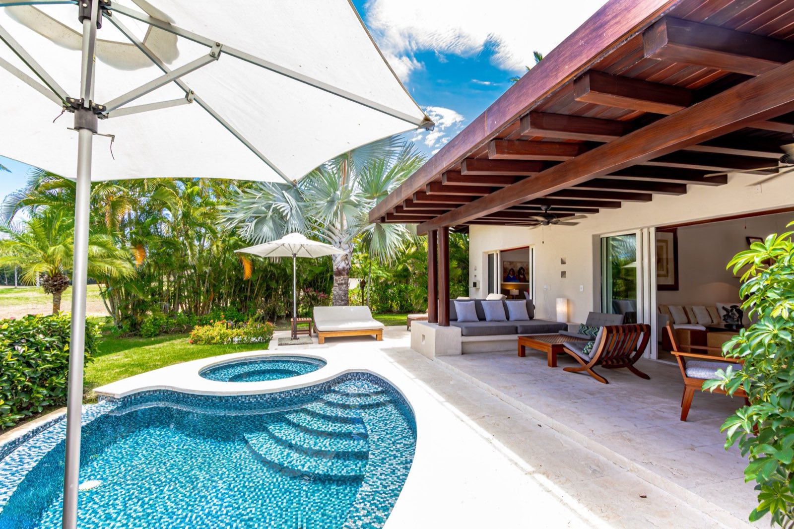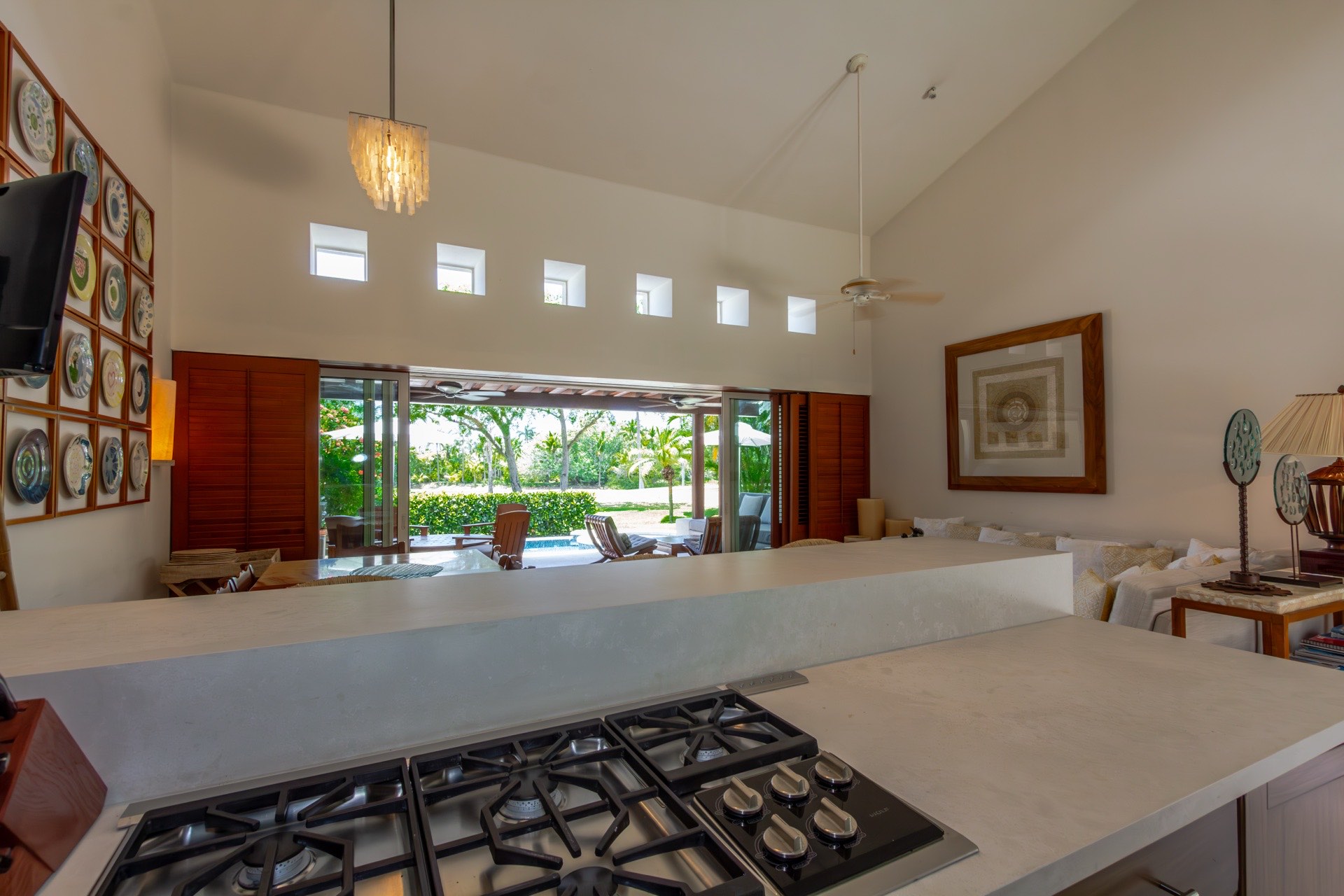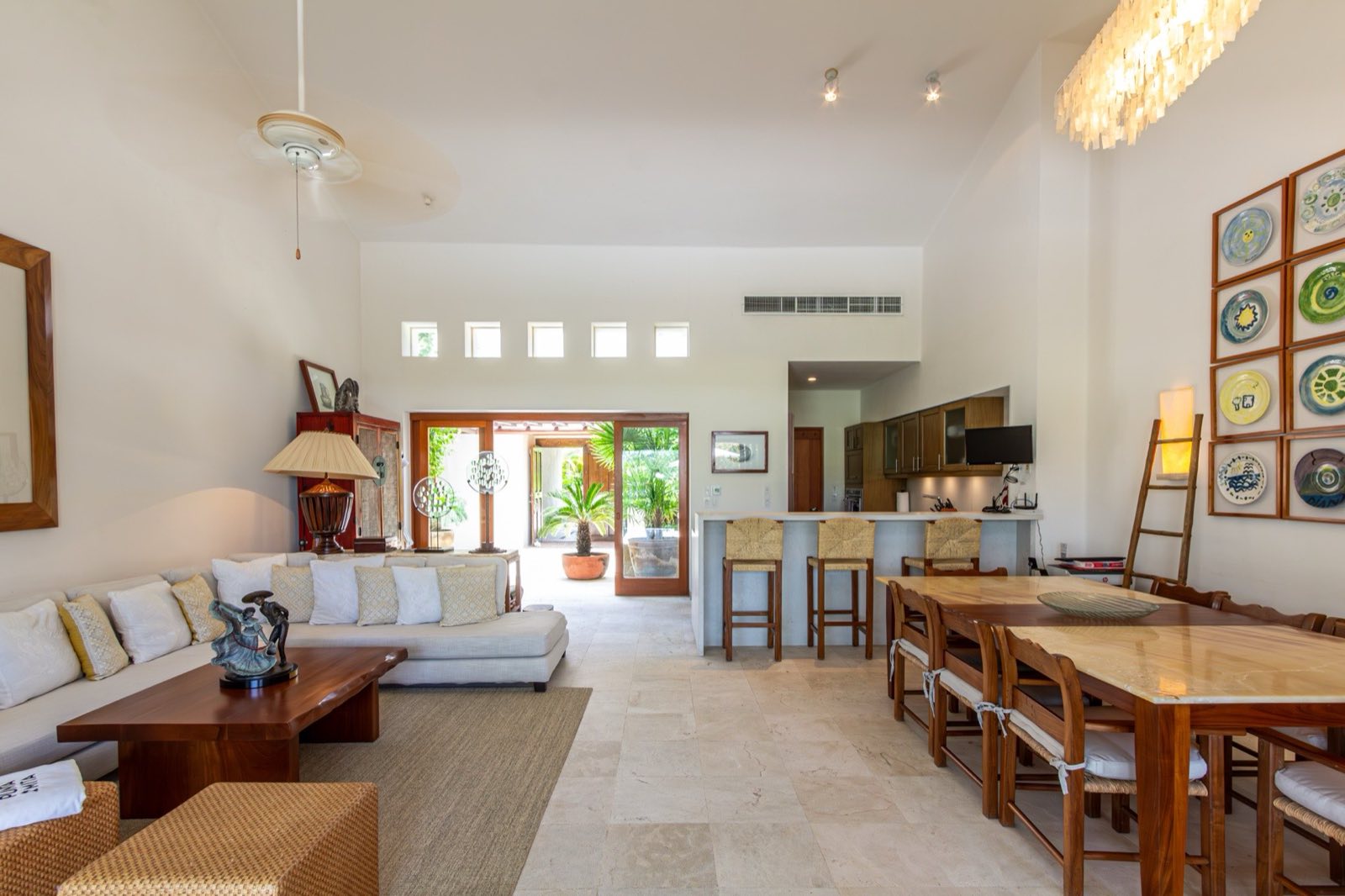 Villa Cazadores is a beautifully designed single-level three-bedroom villa set within the prestigious Las Palmas community at Punta Mita, also known as Las Palmas Villa 13. This residence is the ideal choice for families or groups seeking comfort, privacy, and resort-style services within the gated Punta Mita community. The spacious living and dining area opens onto a large, partially covered terrace with outdoor dining, a Viking BBQ grill, a private plunge pool, and a jacuzzi, all set against the backdrop of the Jack Nicklaus Signature Pacífico Golf Course with stunning views including the famous Tail of the Whale island green.