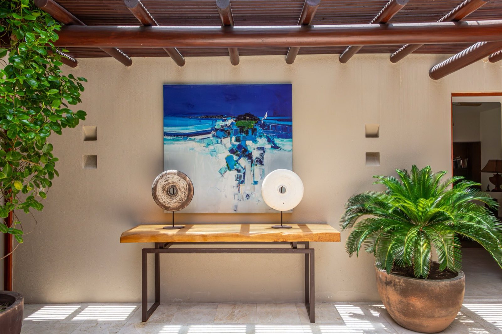 Every stay at Villa Cazadores includes daily housekeeping, breakfast preparation with groceries at your own cost, a private six-passenger golf cart for exploring the resort, and dedicated concierge service. The residence comes with a Premier Golf Membership granting access to four exclusive beach clubs — Pacífico, Kupuri, El Surf Club, and Sufi Ocean Club — along with two world-class Jack Nicklaus golf courses, the Tennis and Fitness Centers, and scenic trails winding through the resort. The Pacífico Beach Club is just a five-minute walk from the front door, accessible only to members and guests of Punta Mita.