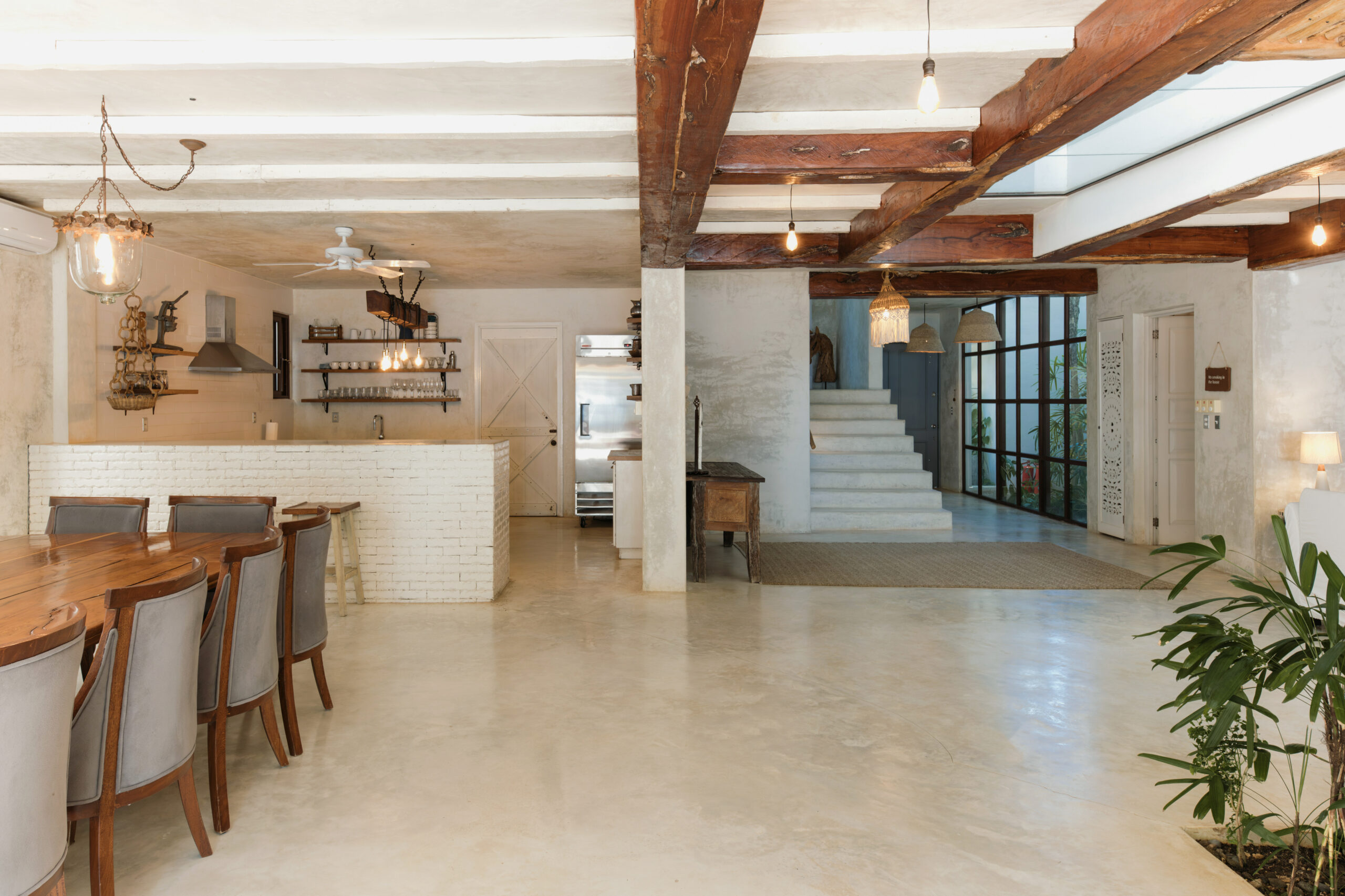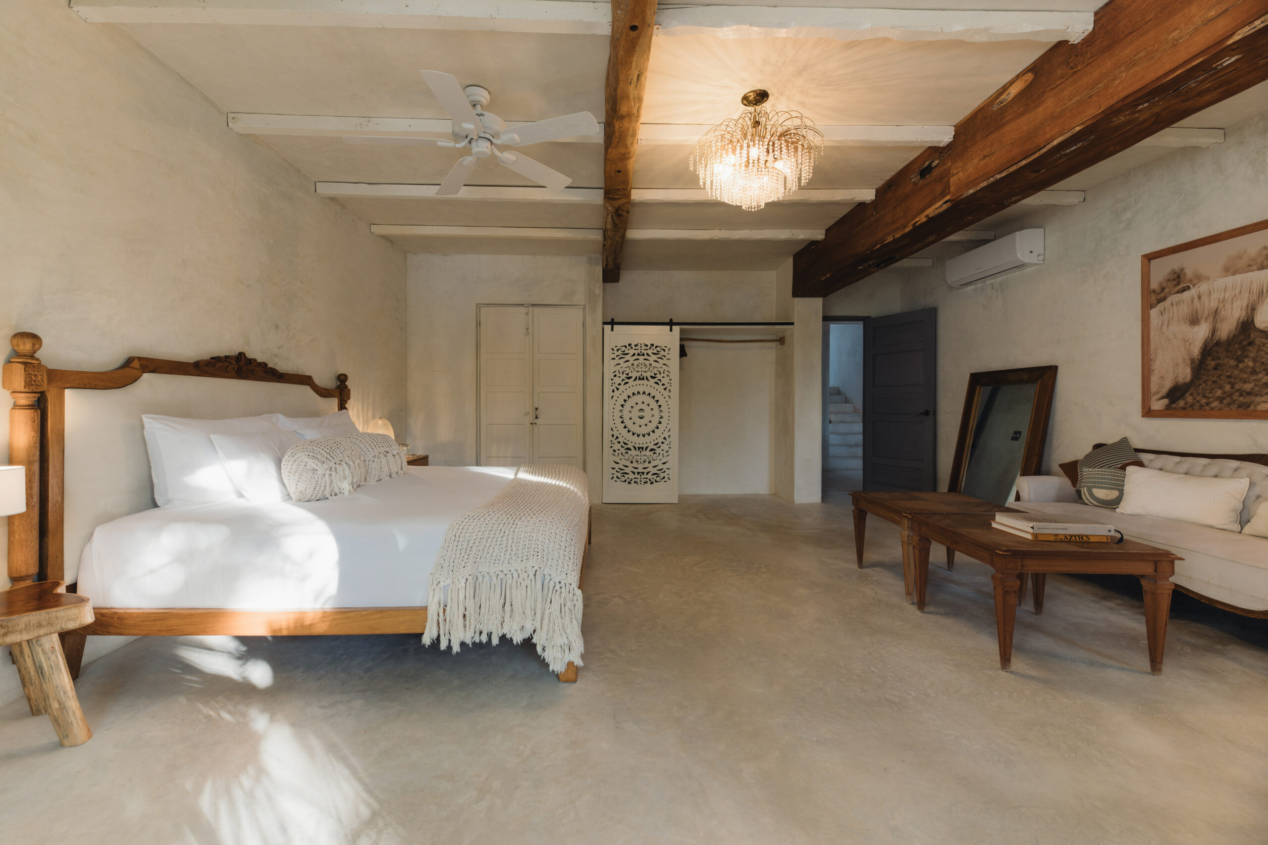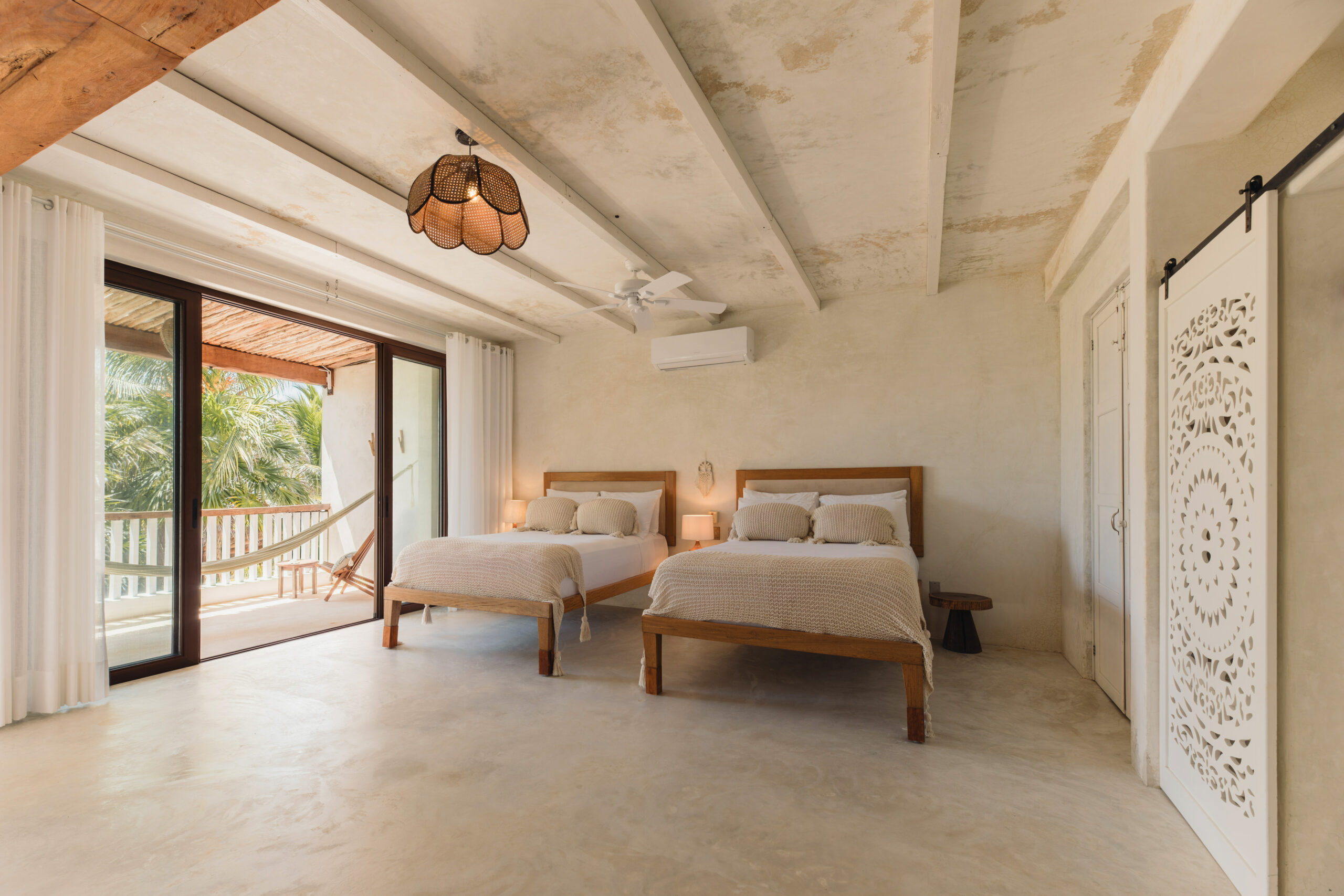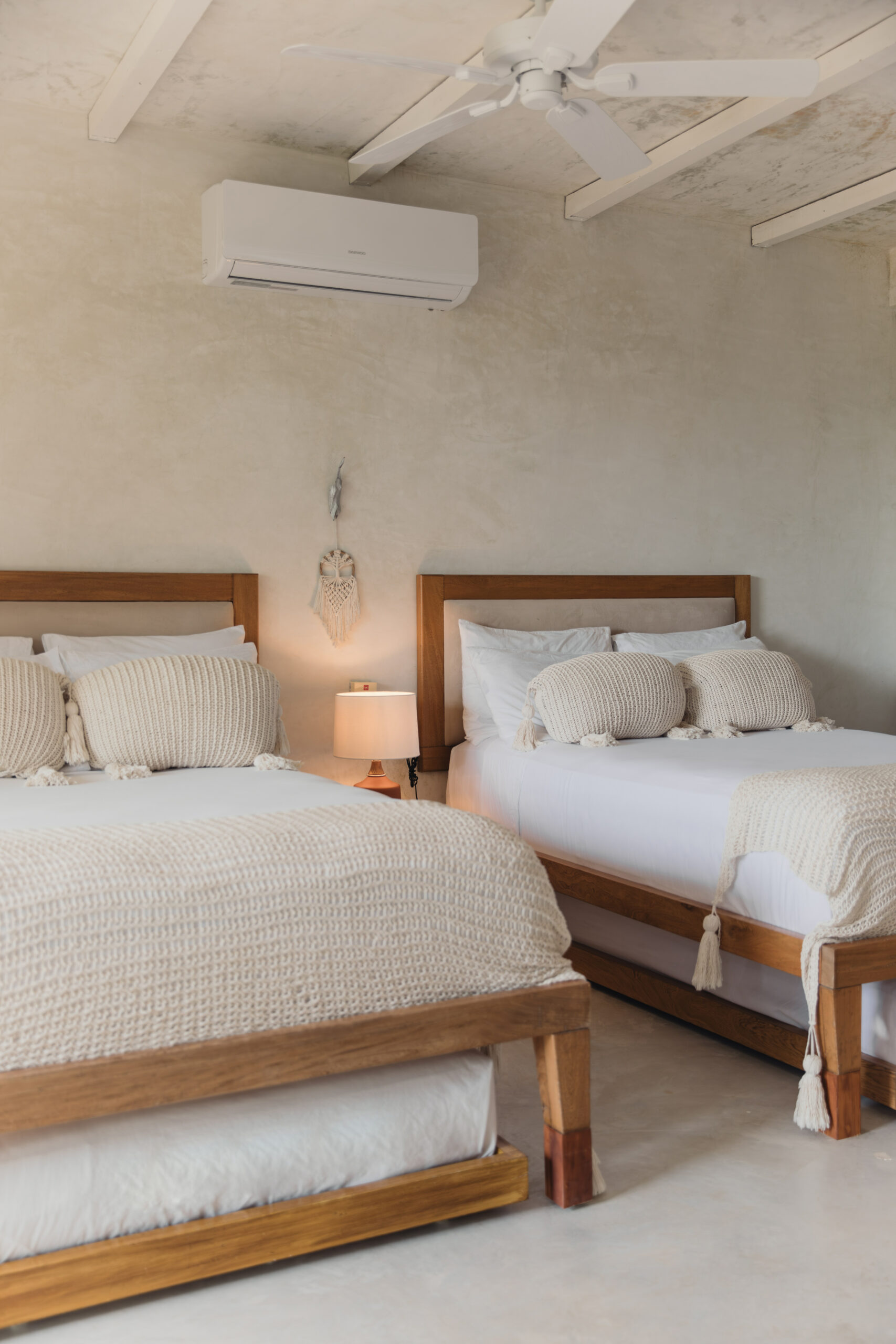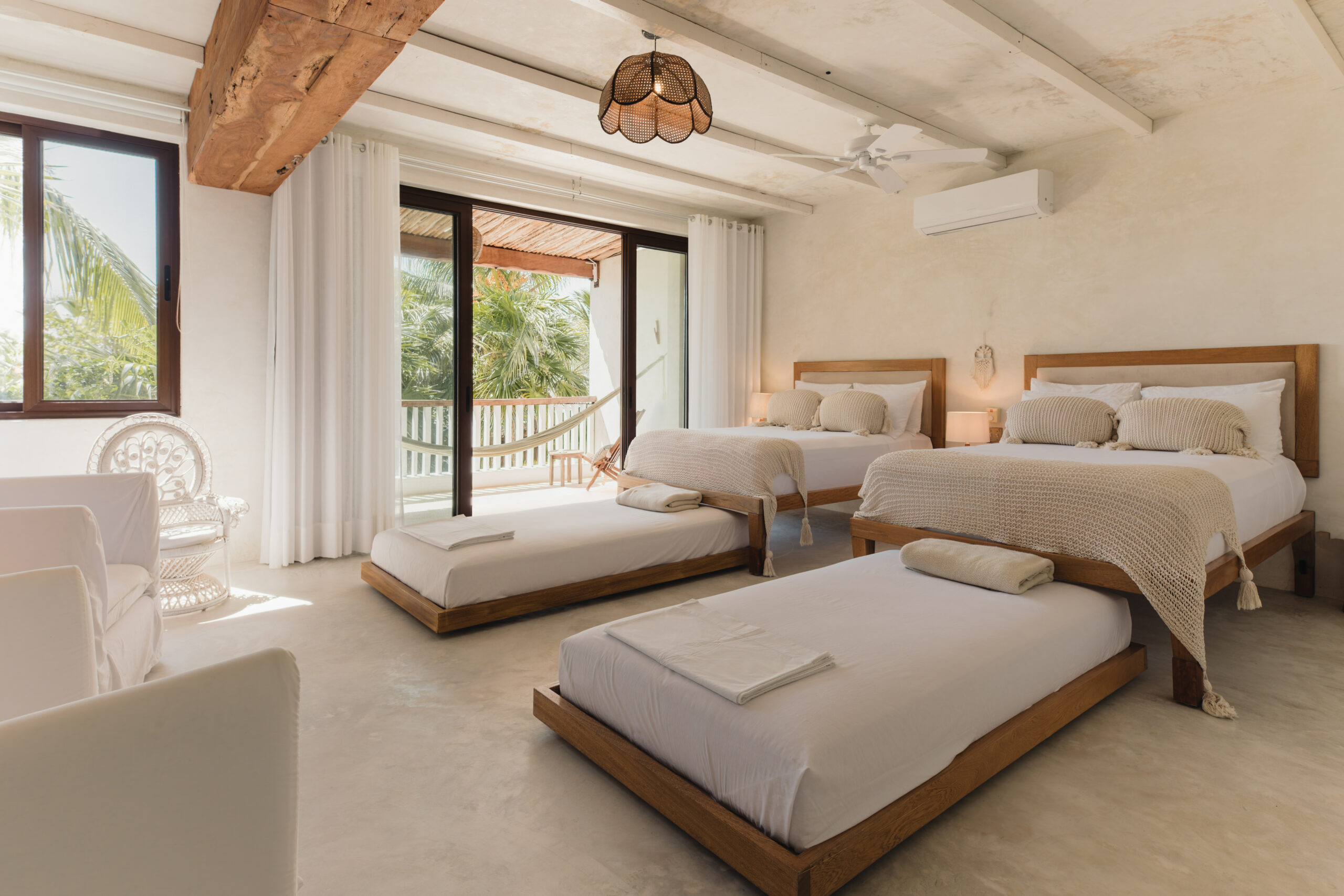 La Semilla — the seed. Five bedrooms, minimal amenities, maximum Tulum authenticity. pool, chef service, no ocean view. What you get is a well-built house, a quiet neighbourhood, and cenotes fifteen minutes away. We biked everywhere, ate at different restaurants every night, came back to a comfortable bed. The simplicity is intentional and it works for the right traveller.