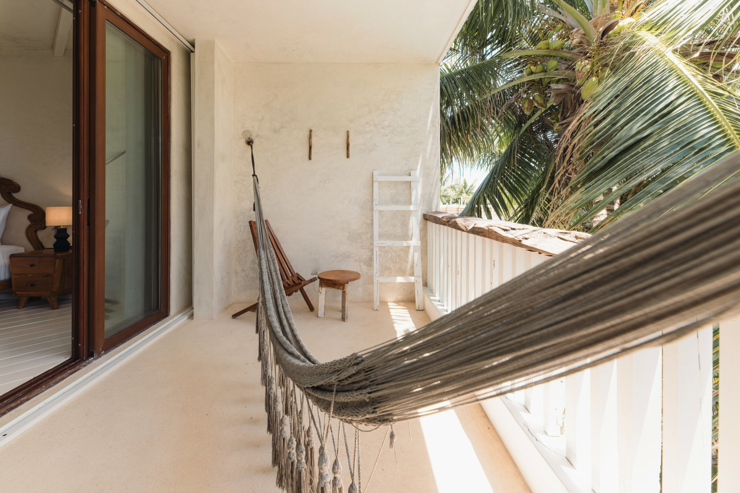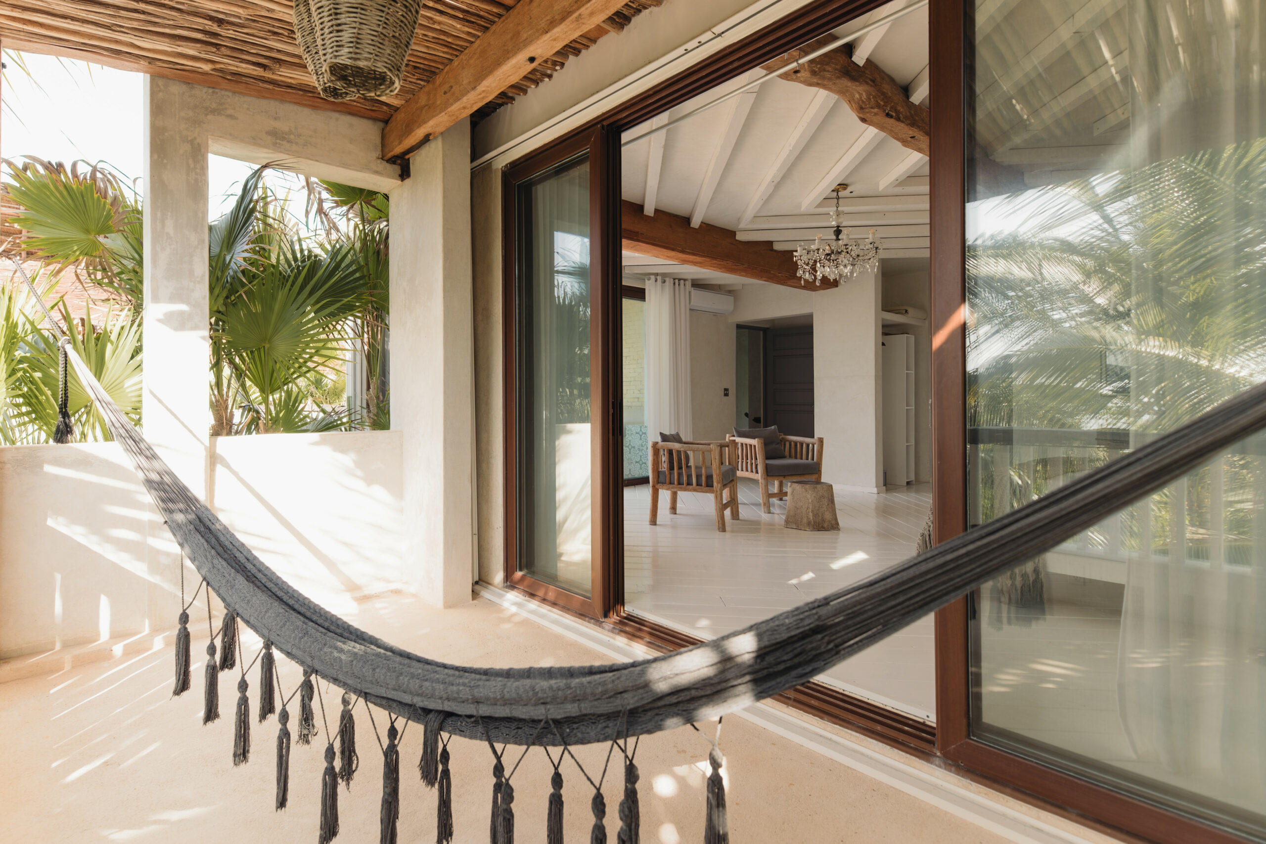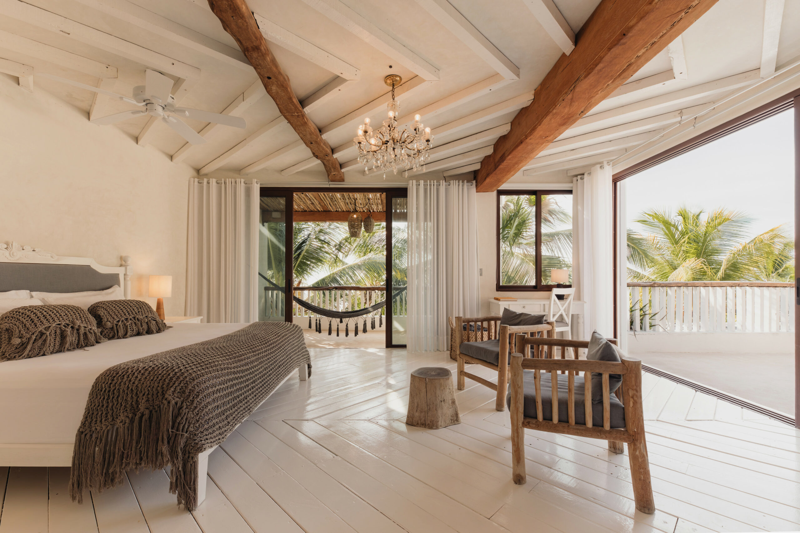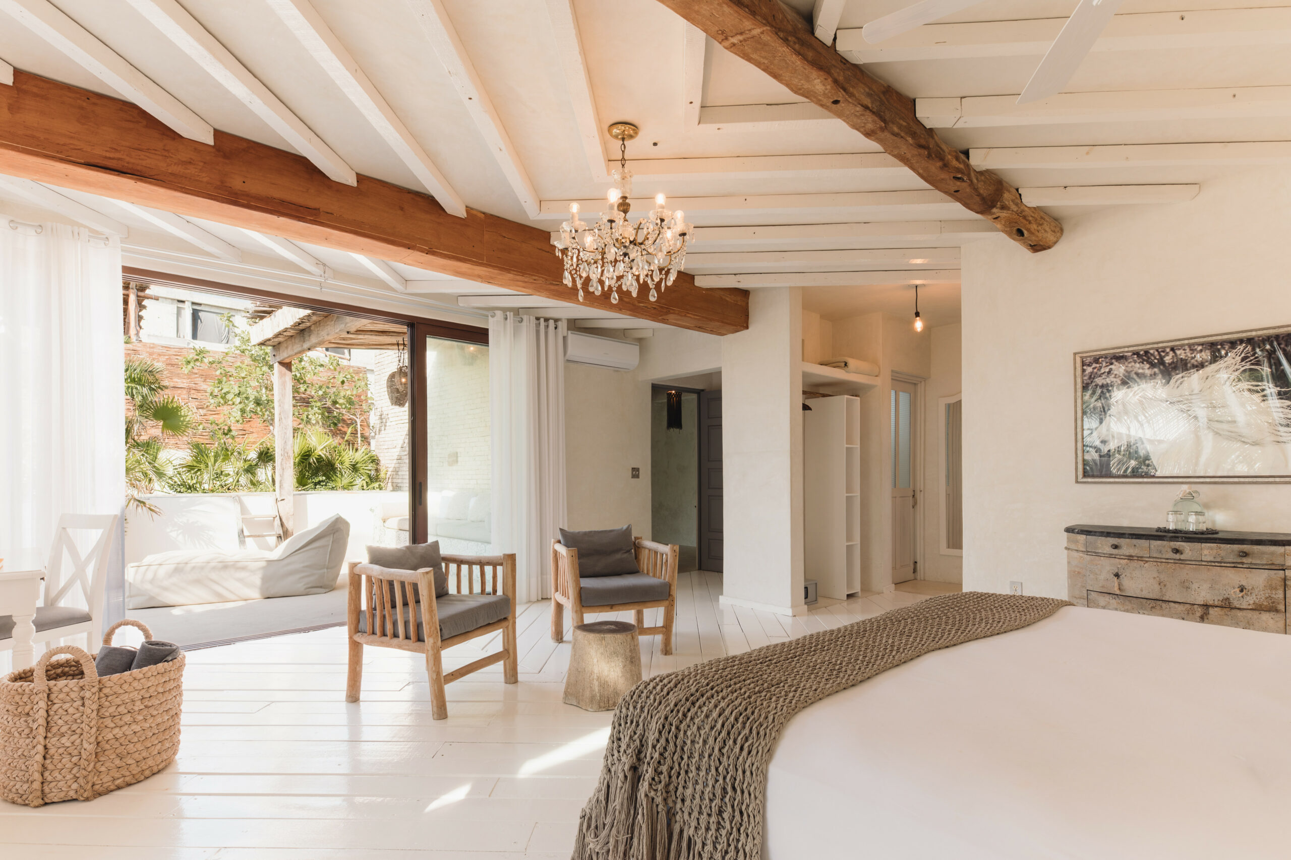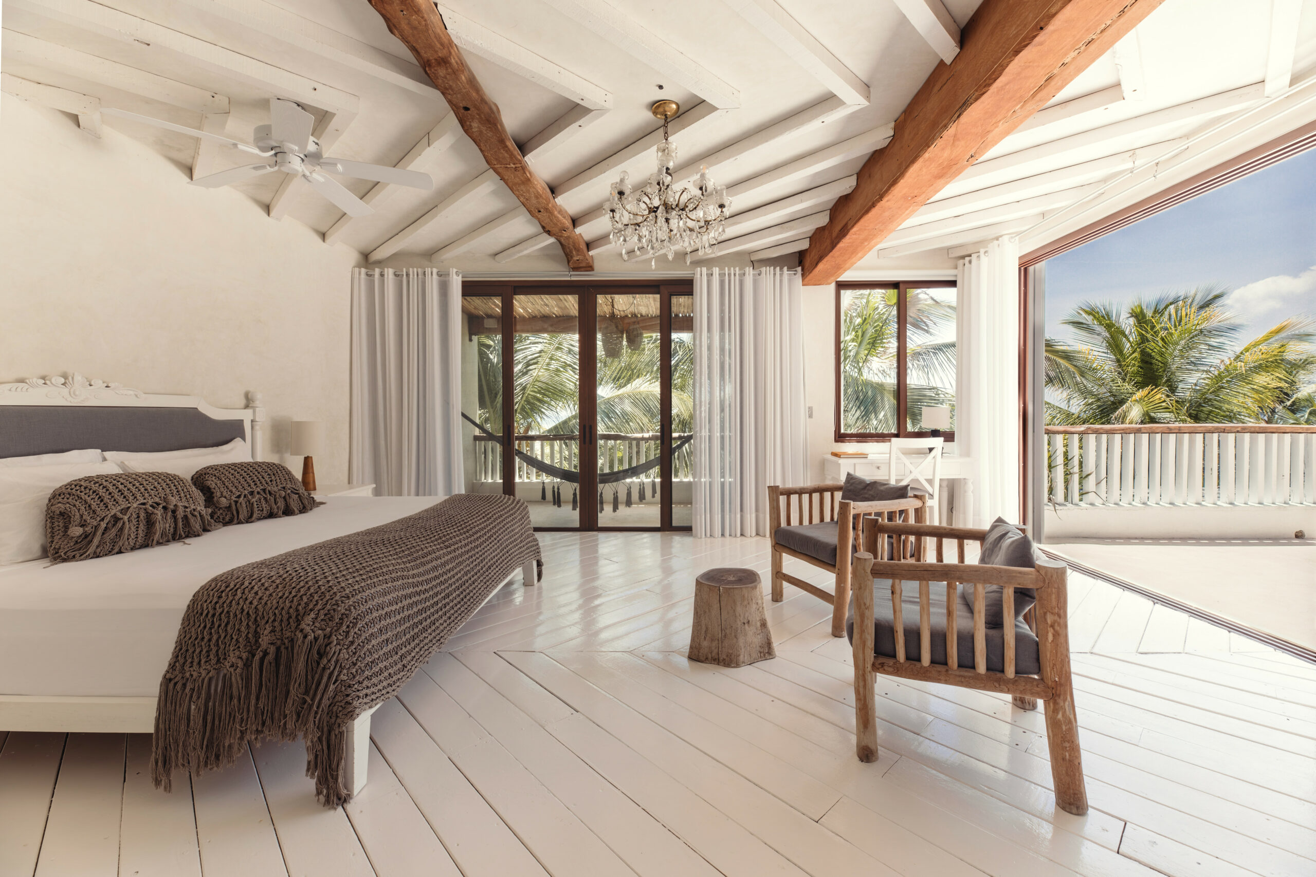 King bed, air conditioning, blackout shades, ceiling fan, ensuite bathroom with bathtub and shower, hairdryer, hammock, partial ocean view, safety box, private terrace, rooftop plunge pool, toiletries, window screen