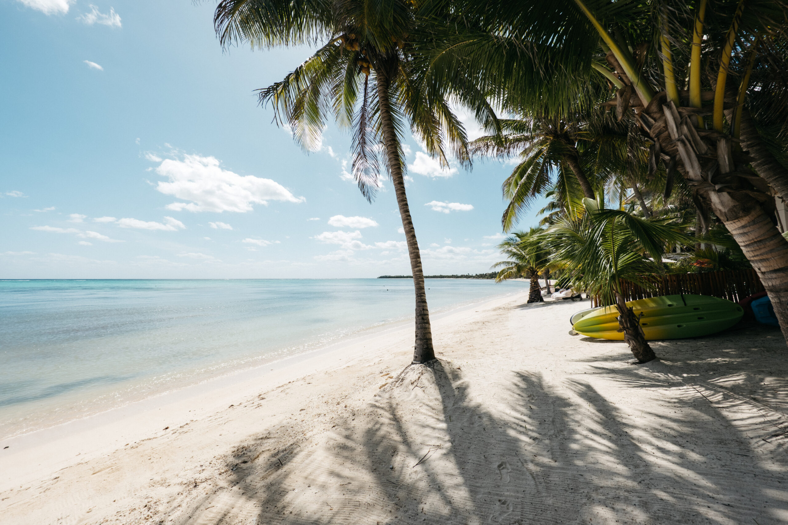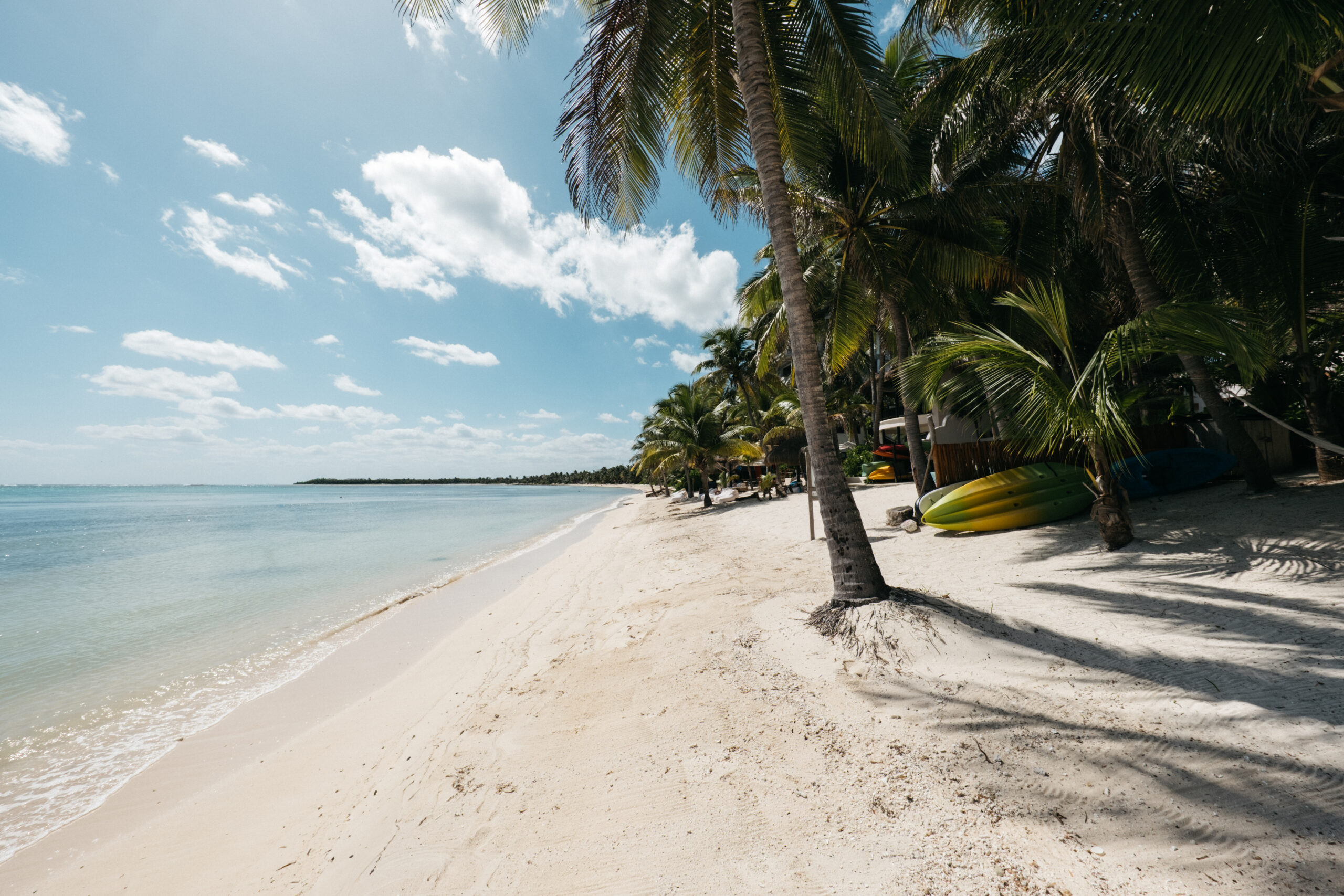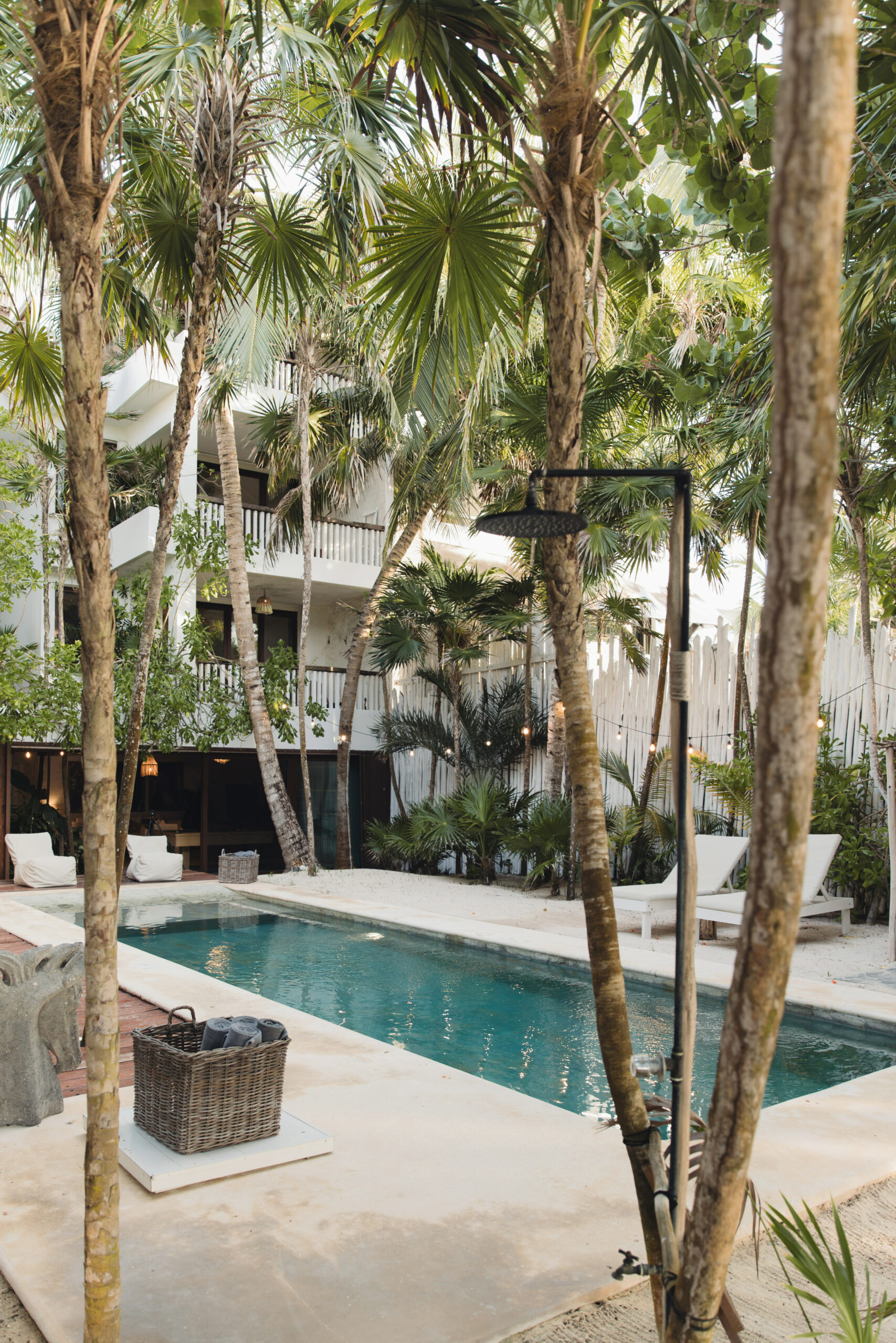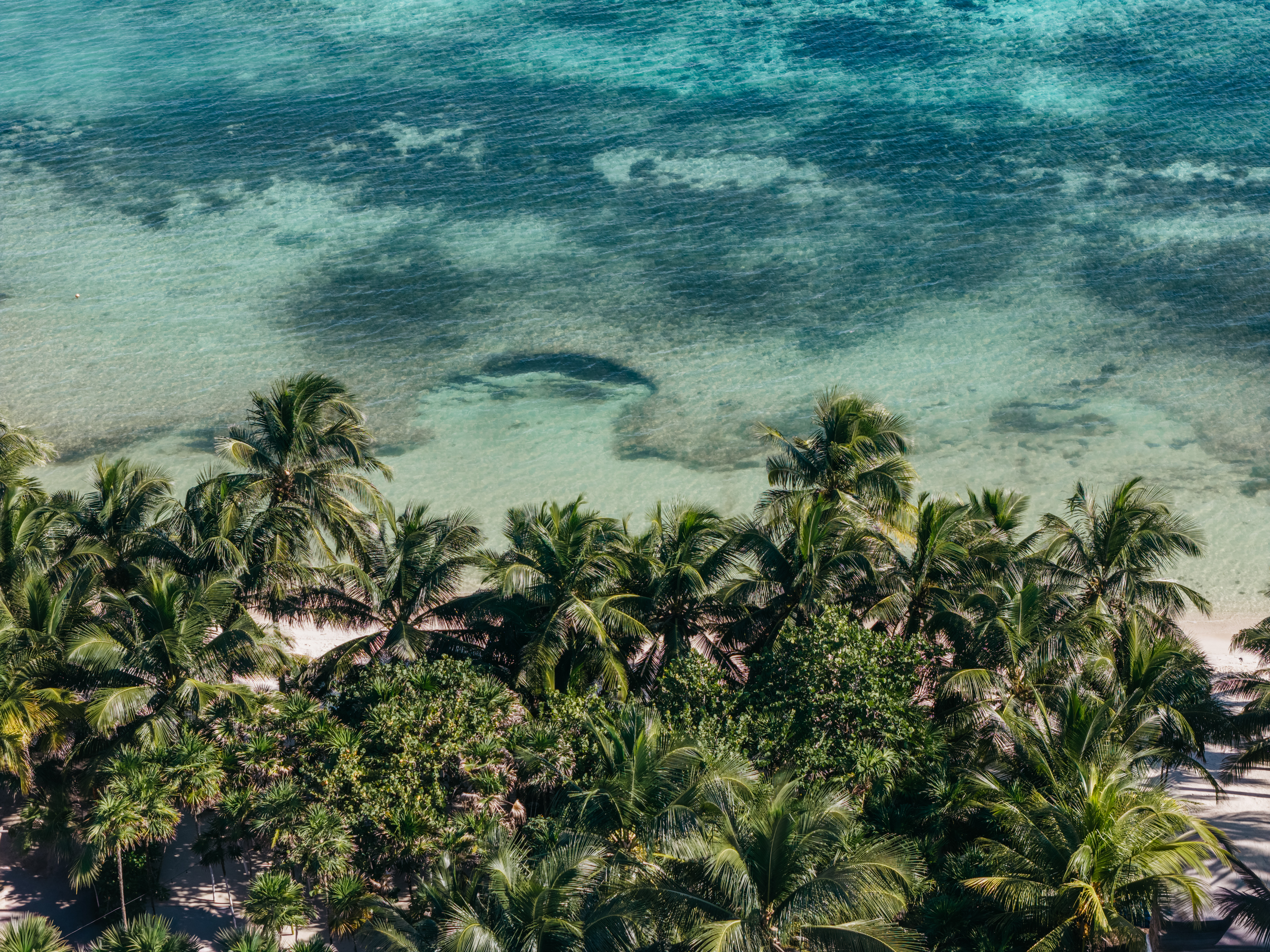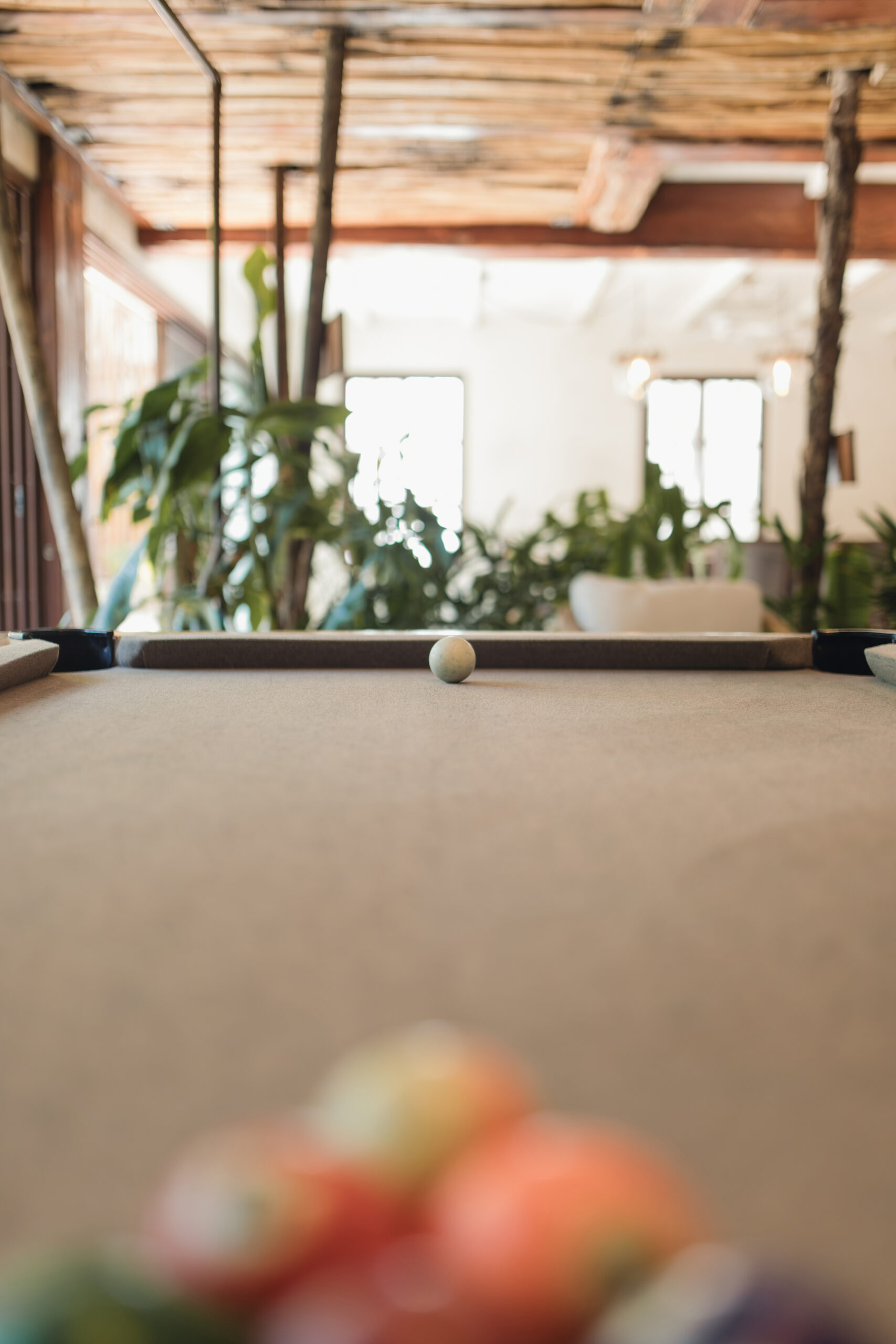 The bocce court, ping pong table, and pool table make Villa La Semilla one of the most activity-rich villas in Soliman Bay — genuinely suited to multi-family trips and group buyouts where different generations need different things. The rooftop plunge pool with its palapa shade and 270-degree views of jungle and ocean is the quiet counterpoint to all of it: a place where the day’s last light and a cold drink are enough. The beach at Soliman Bay has no vendors, no crowds, and no seaweed — just palm shadows and calm Caribbean water.