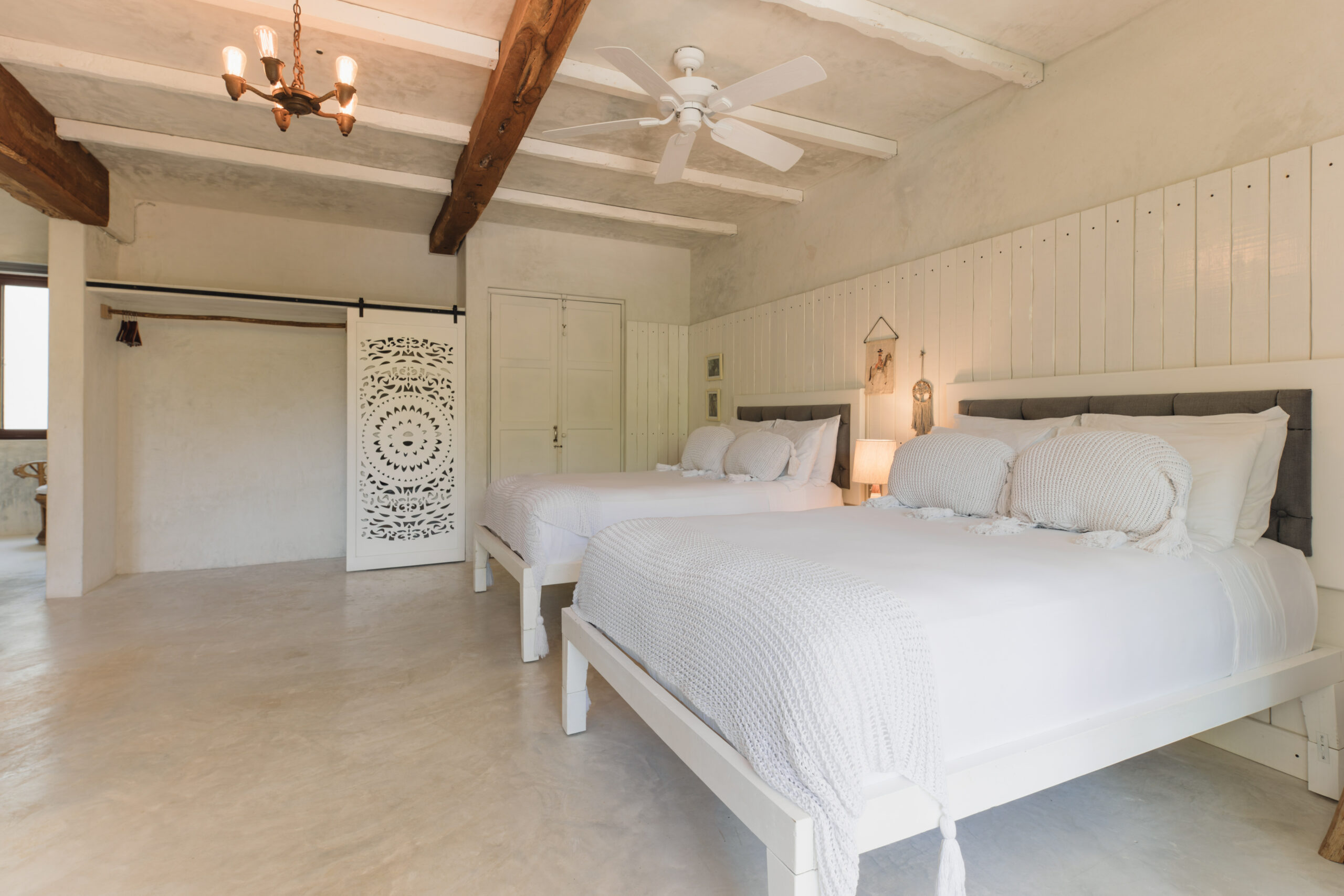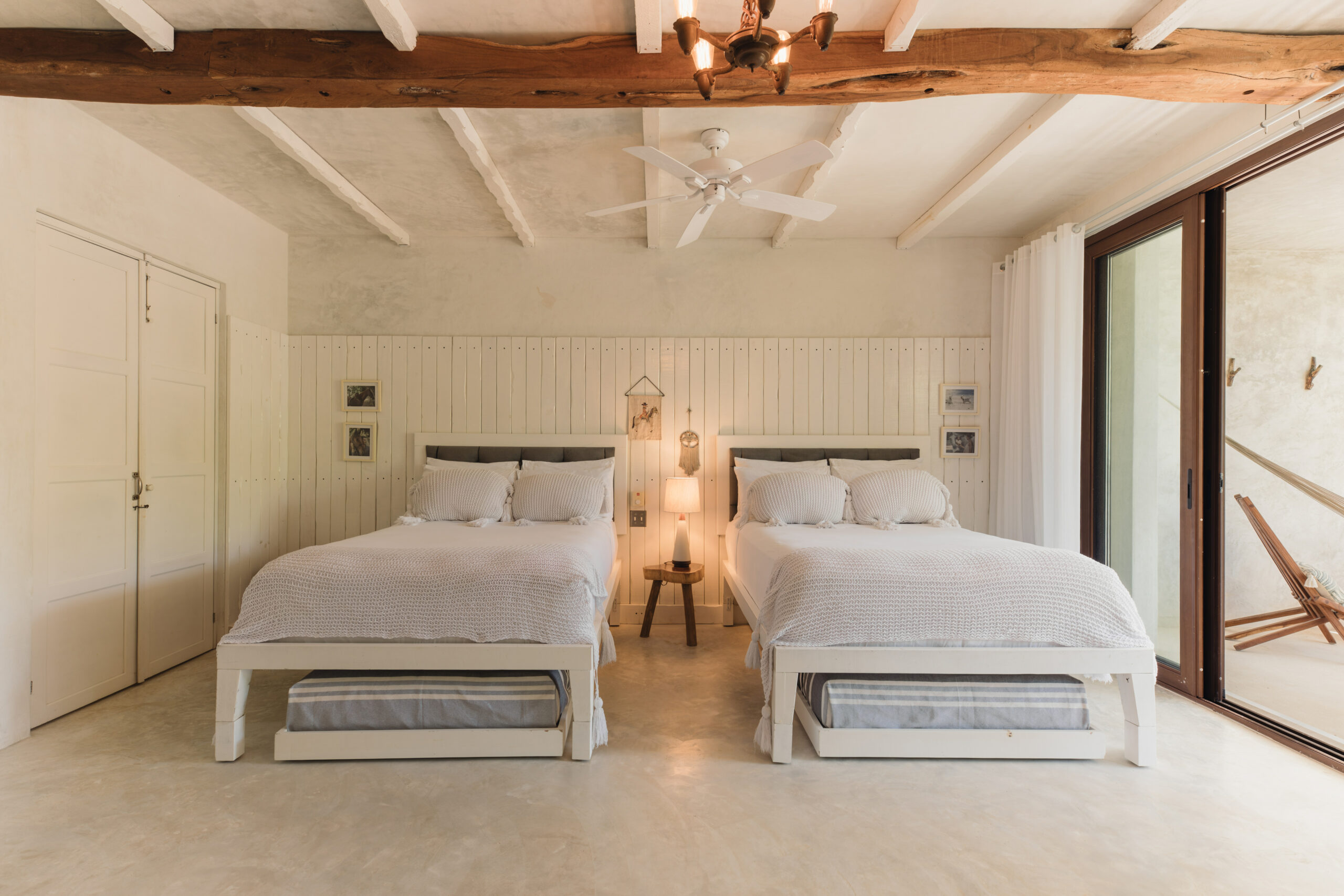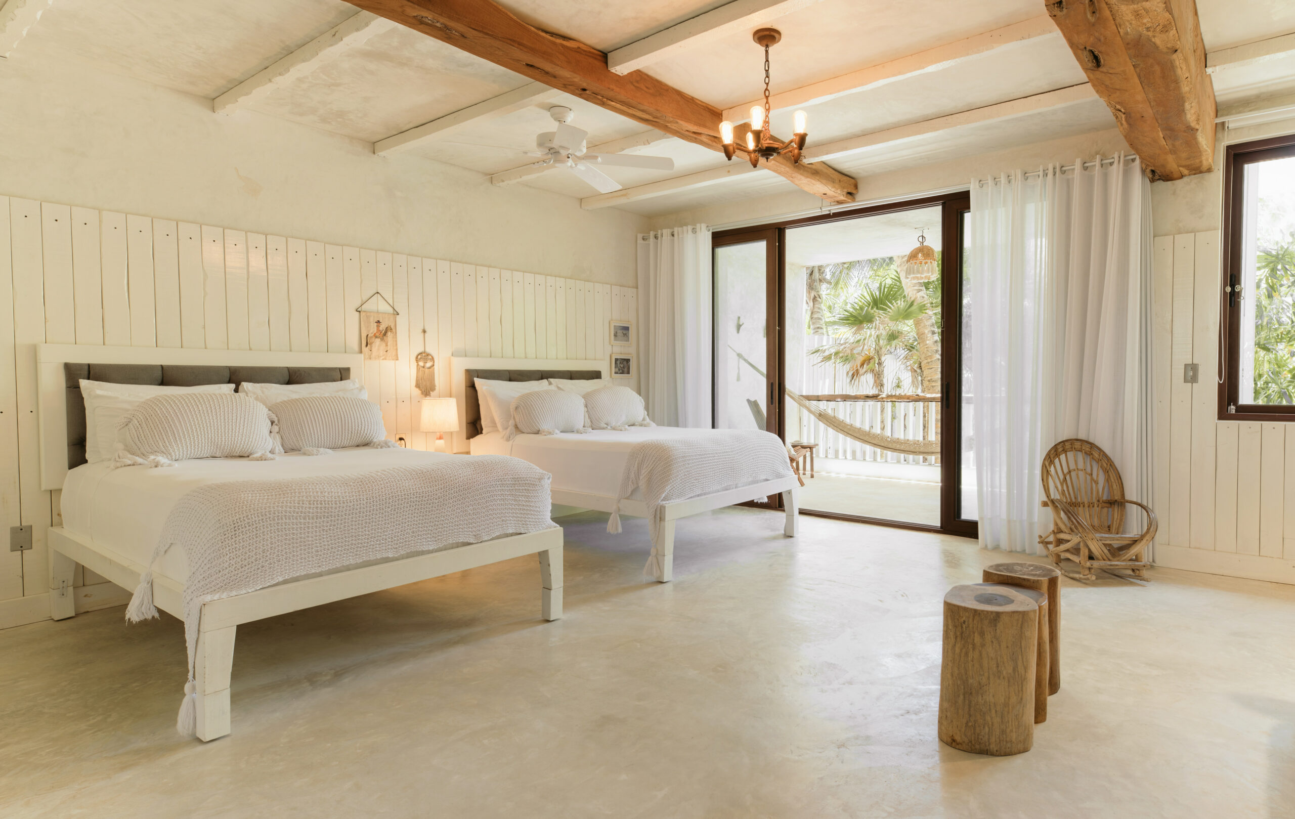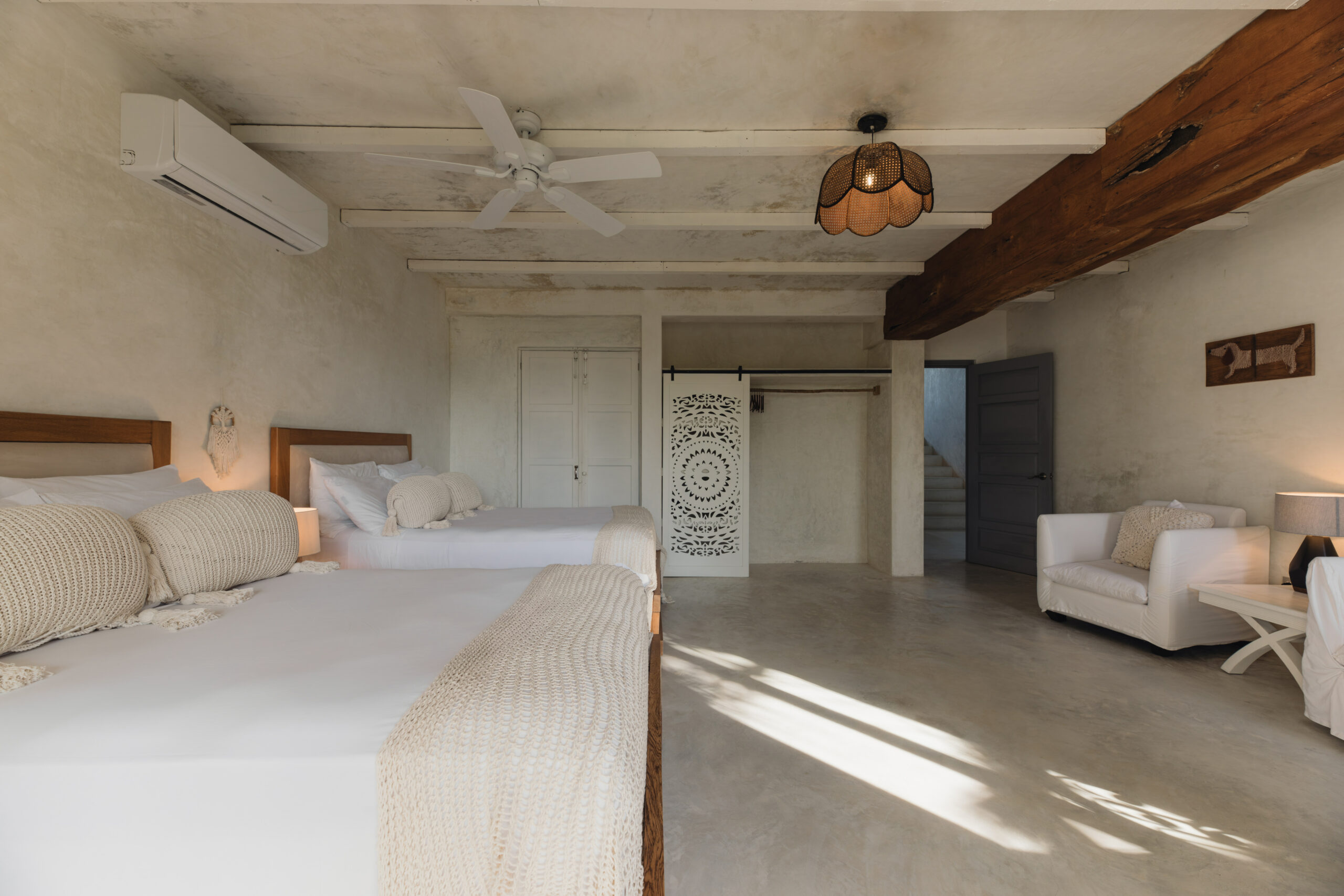 Two double beds and one extra single bed, air conditioning, blackout shades, ceiling fan, ensuite bathroom with bathtub and shower, hairdryer, hammock, ocean views with private terrace, safety box, toiletries, window screen