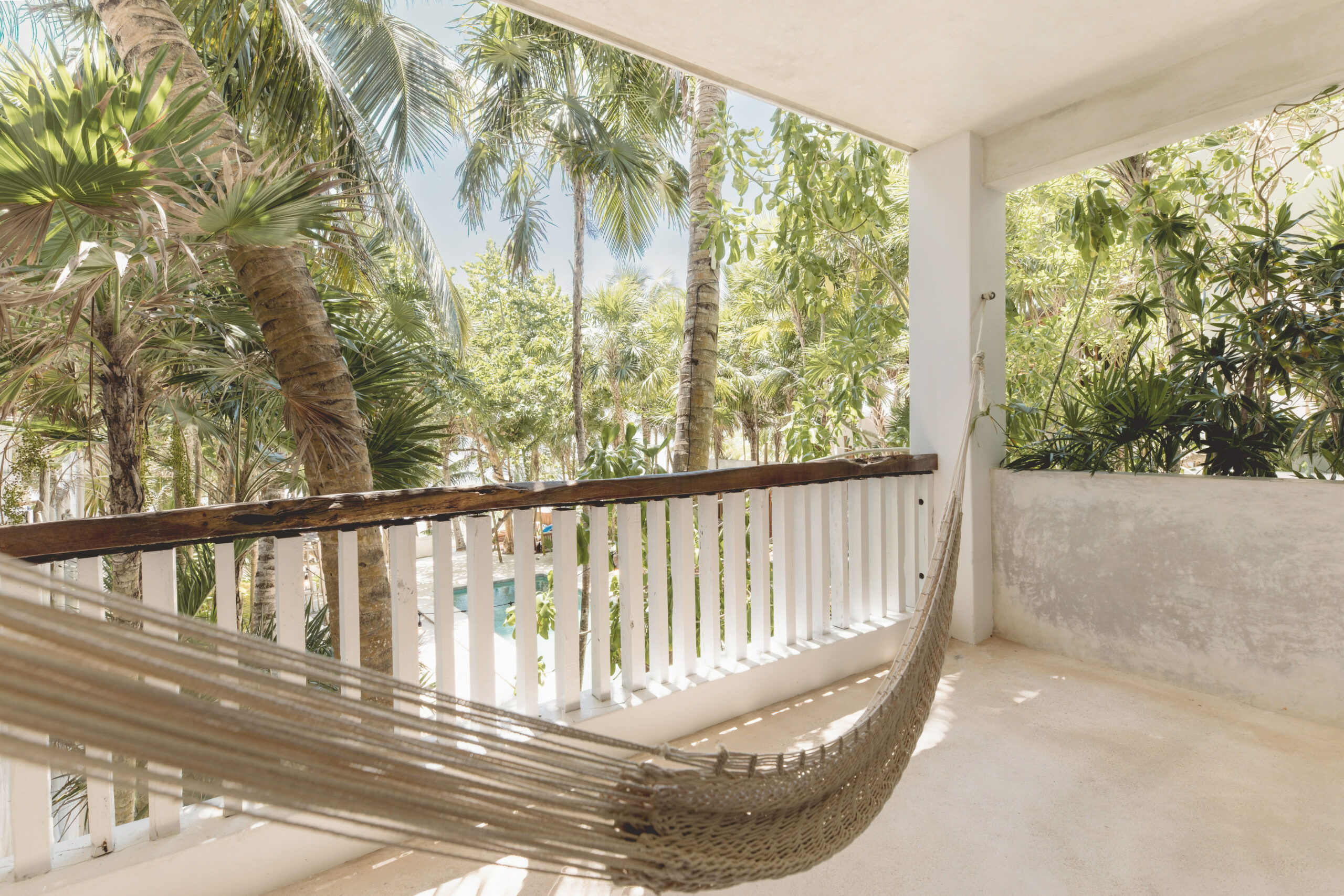 Two double beds and one extra single bed, air conditioning, blackout shades, ceiling fan, ensuite bathroom with shower, hairdryer, hammock, partial ocean view, safety box, terrace, toiletries, window screen