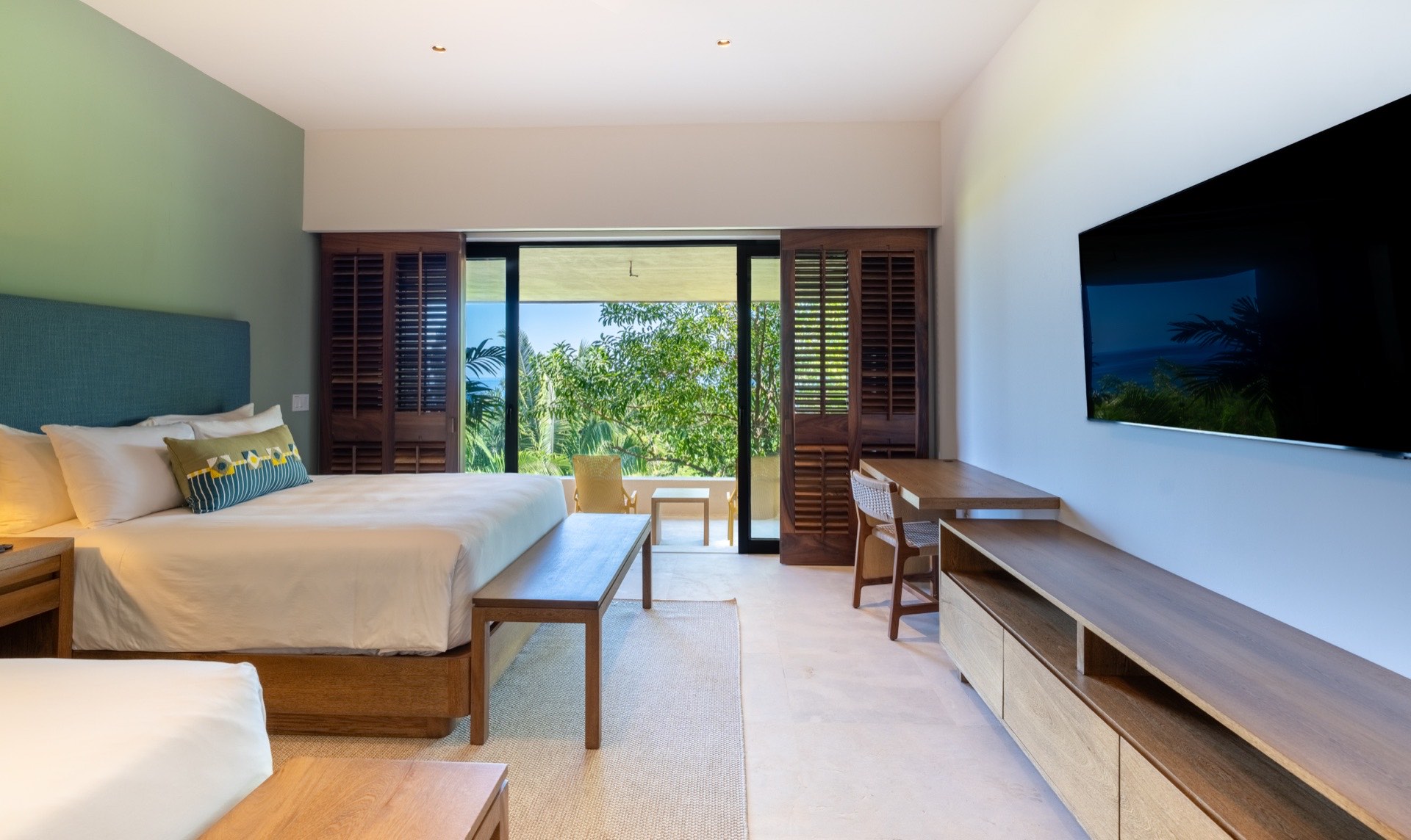 Your stay includes daily housekeeping, breakfast preparation for up to ten guests with groceries at your own cost (additional fees for groups over ten), two six-passenger golf carts for exploring the resort, and dedicated concierge service. The Premier Golf Membership grants access to four exclusive beach clubs — Pacífico, Kupuri, El Surf Club, and Sufi Ocean Club — along with two world-class Jack Nicklaus Signature golf courses, the Tennis and Fitness Centers, and scenic trails throughout the resort. Litibú Beach, one of Punta Mita’s most beautiful stretches of sand, is just a five-minute walk from the front door.